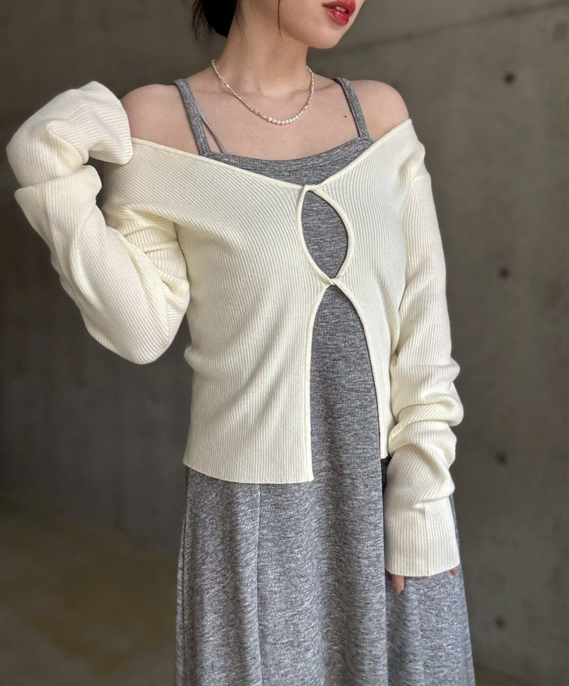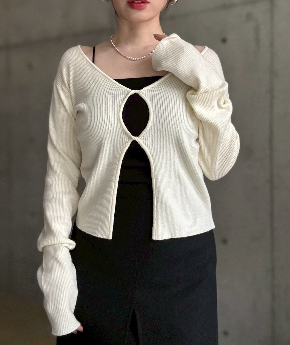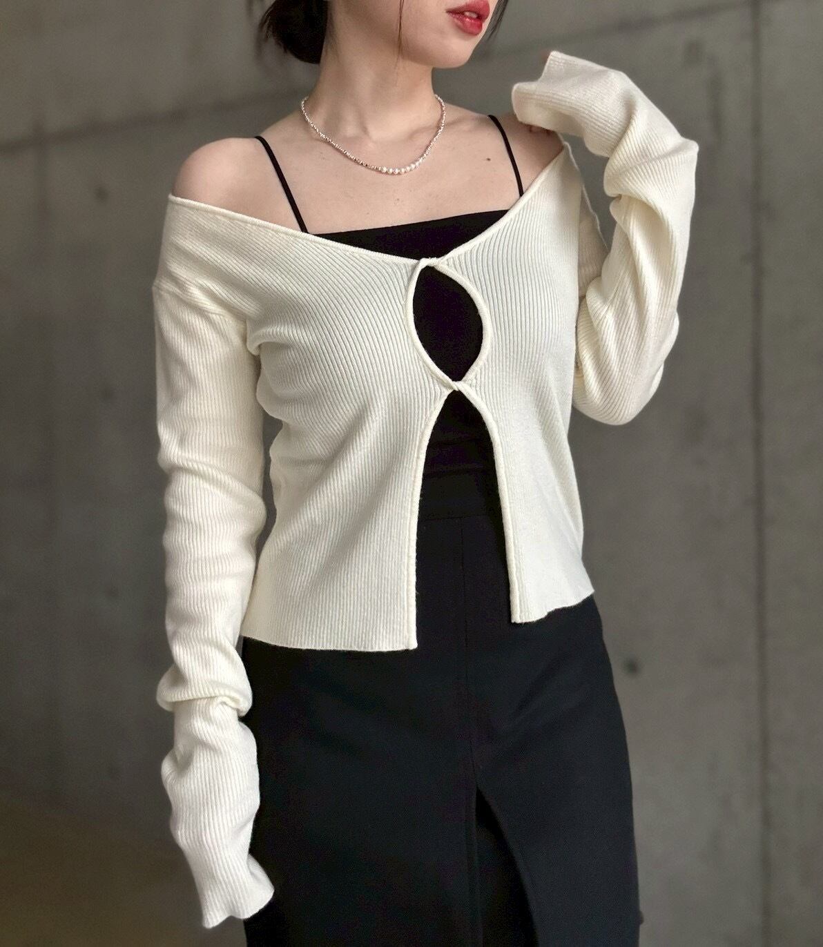 フロントのねじりホールデザインがポイントのマルチwayニット✨