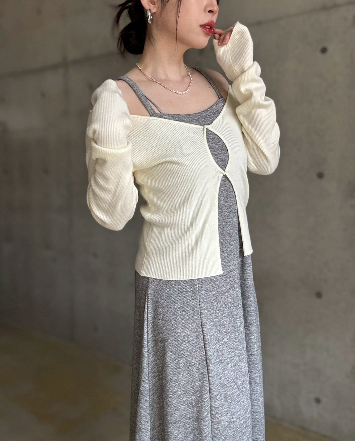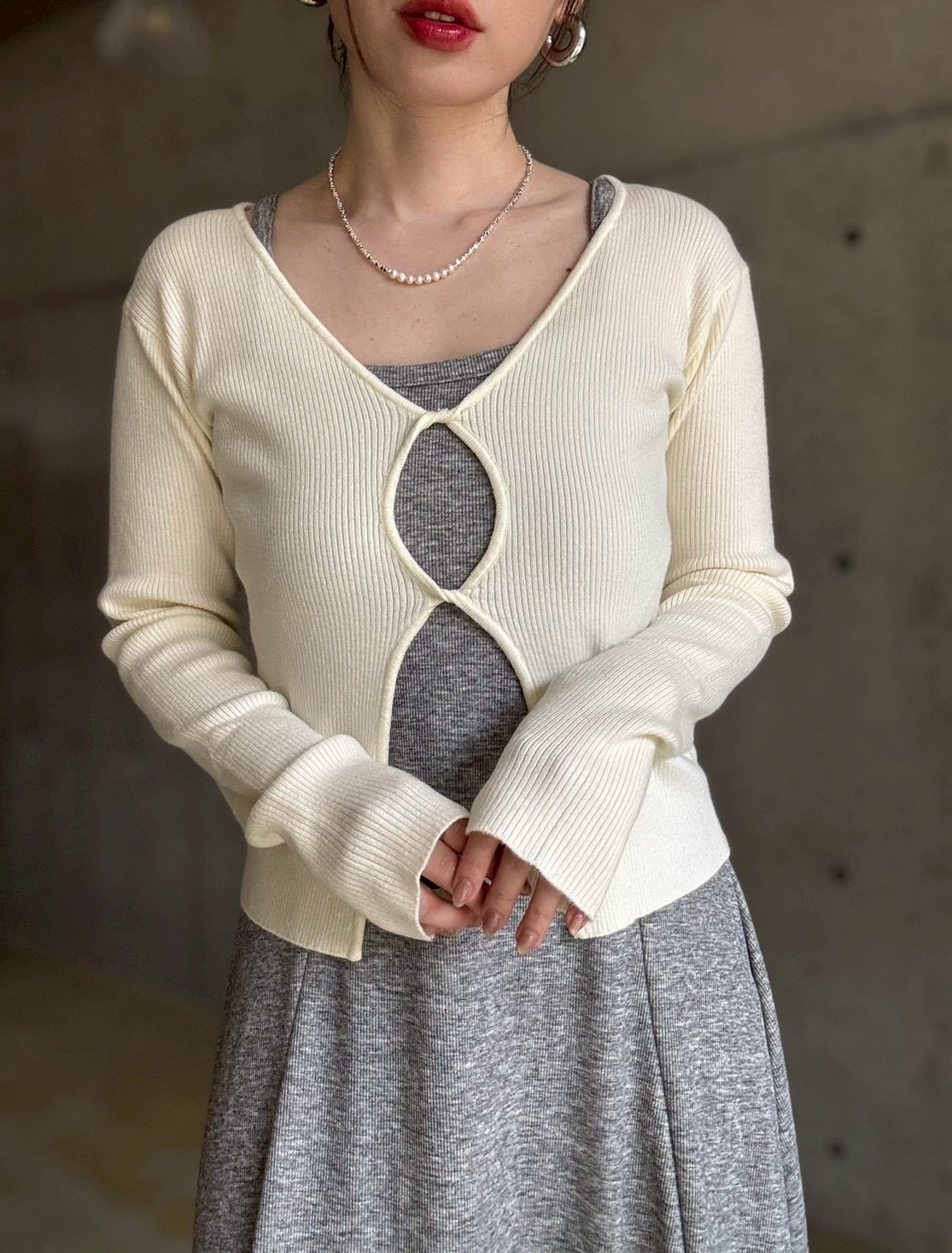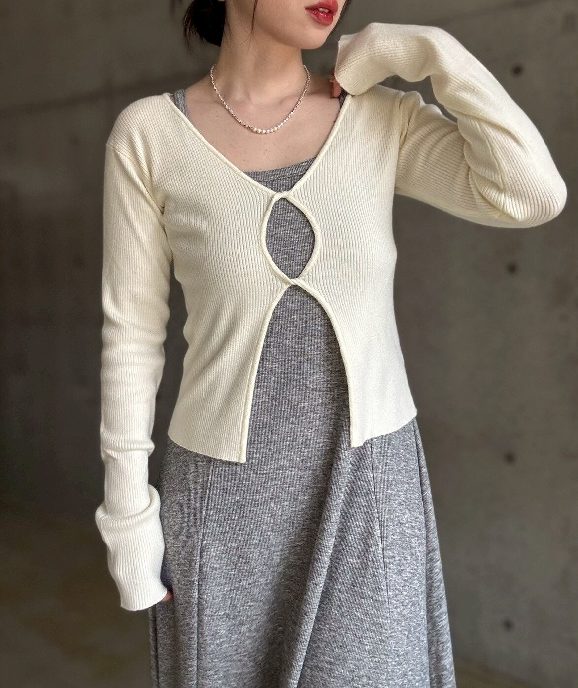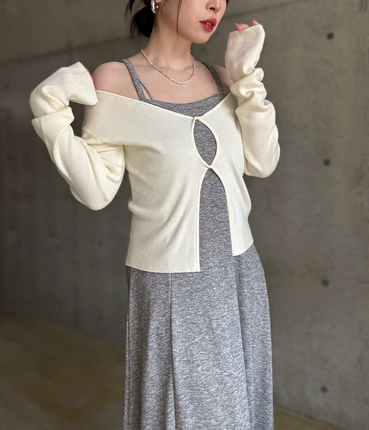 フロントのねじりホールデザインがポイントのマルチwayニット✨