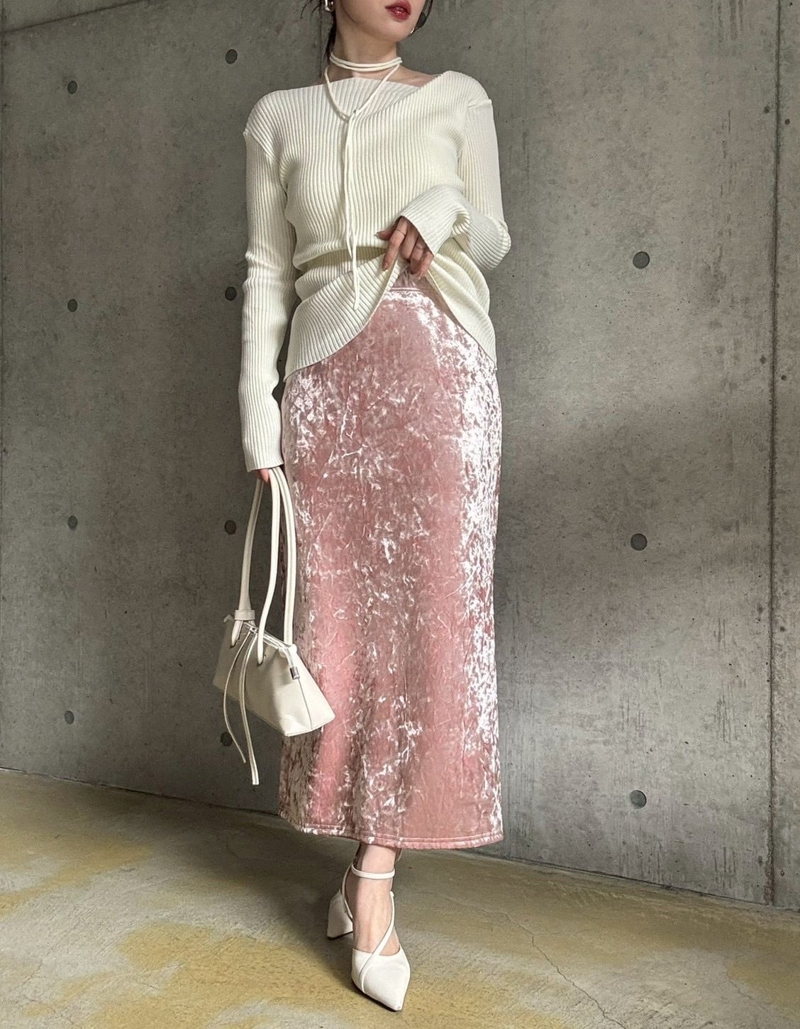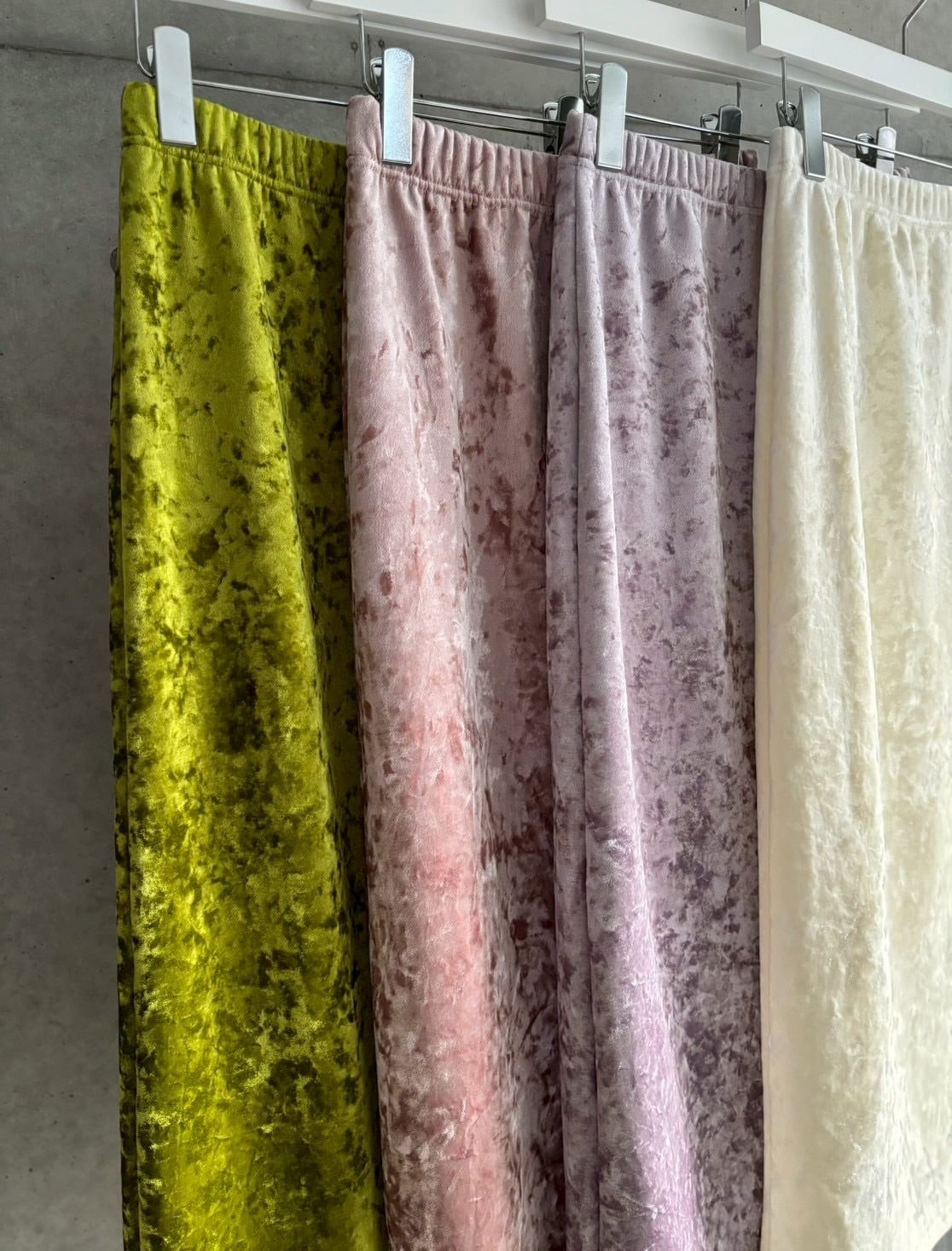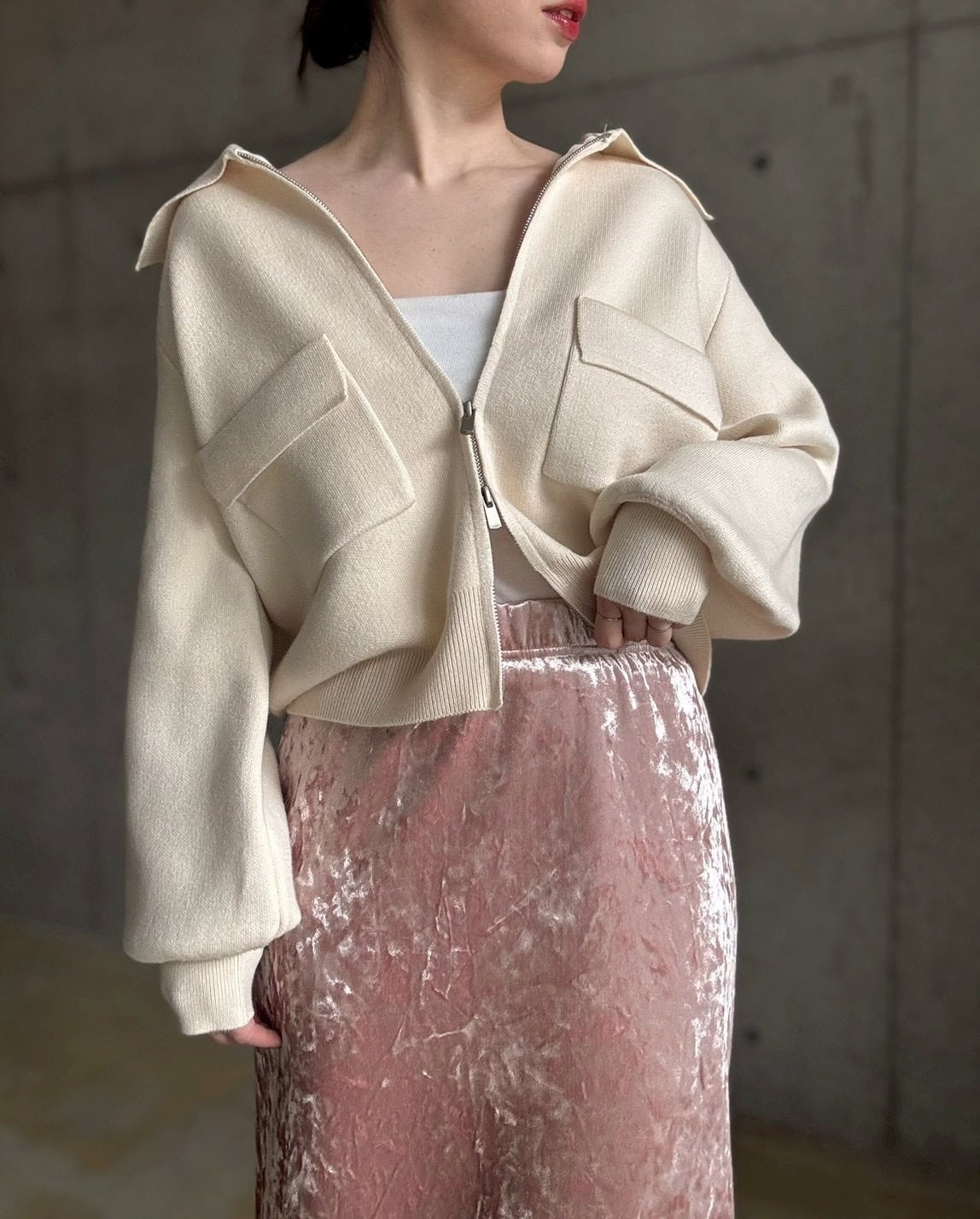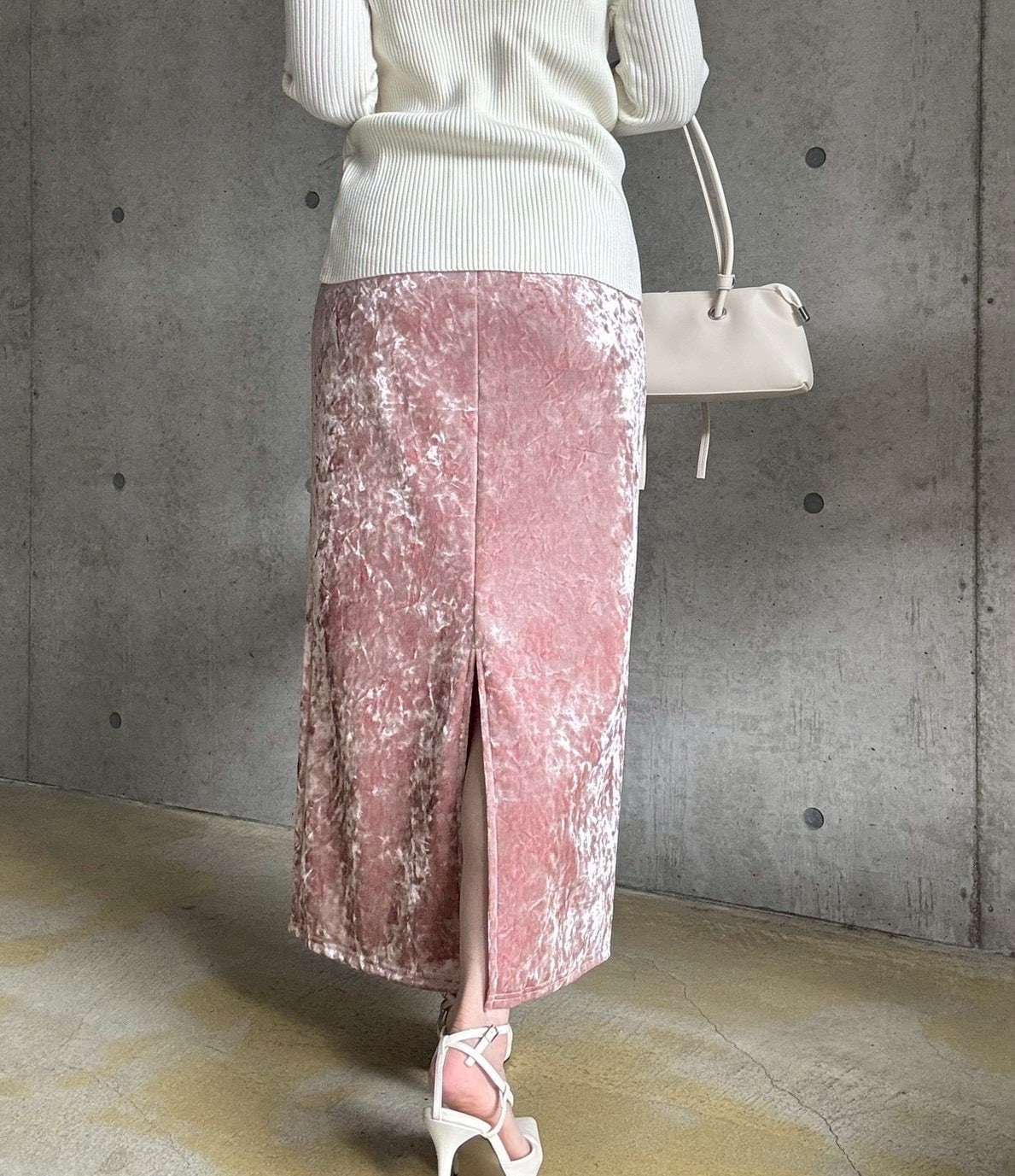 クラッシュベロアの生地感がスタイリングのアクセントに♪
