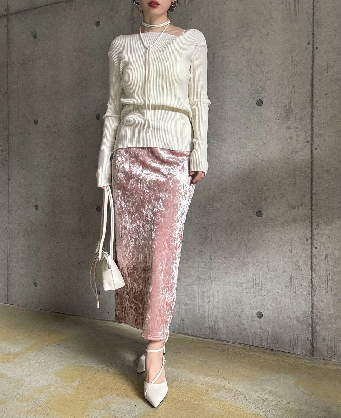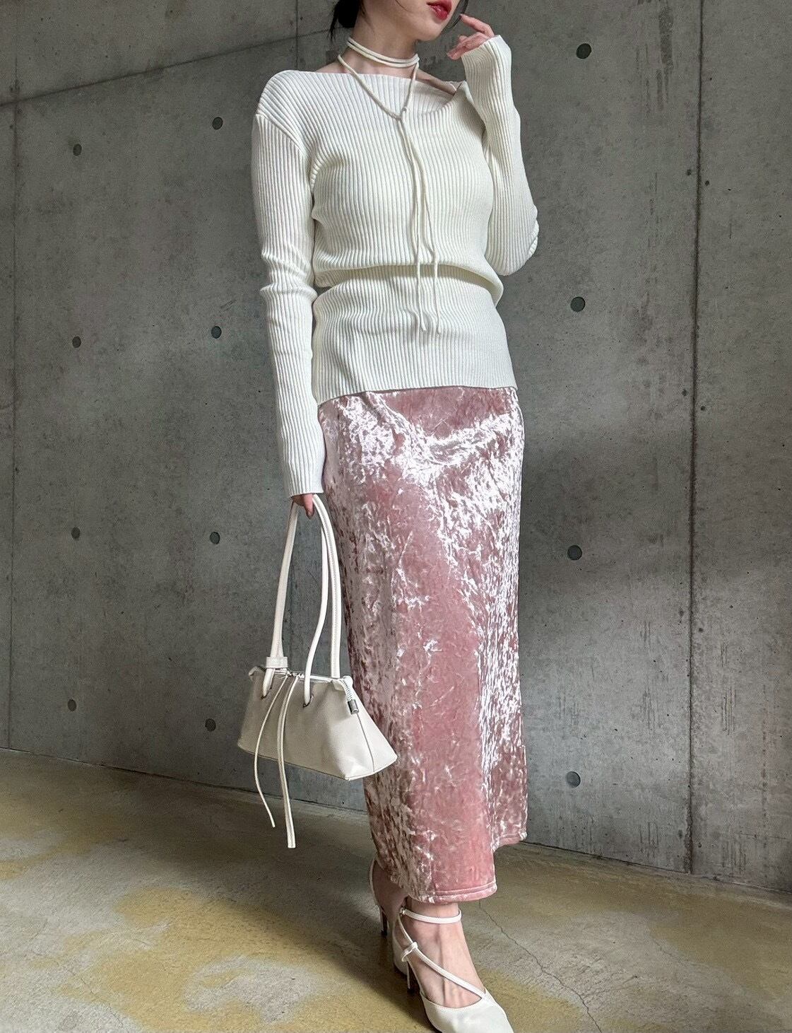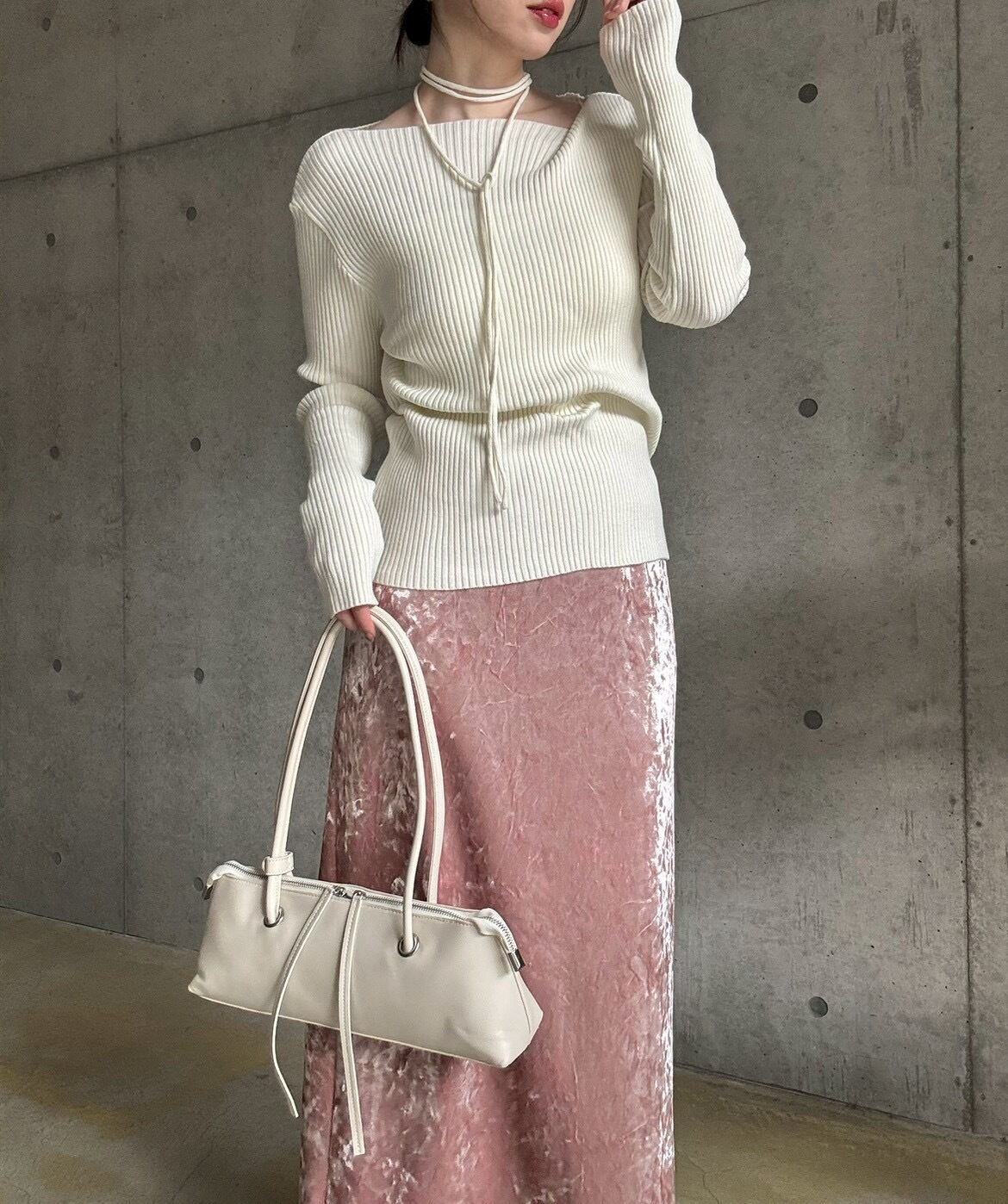 ☑️ チョーカー付きデザインリブニット(アイボリー)