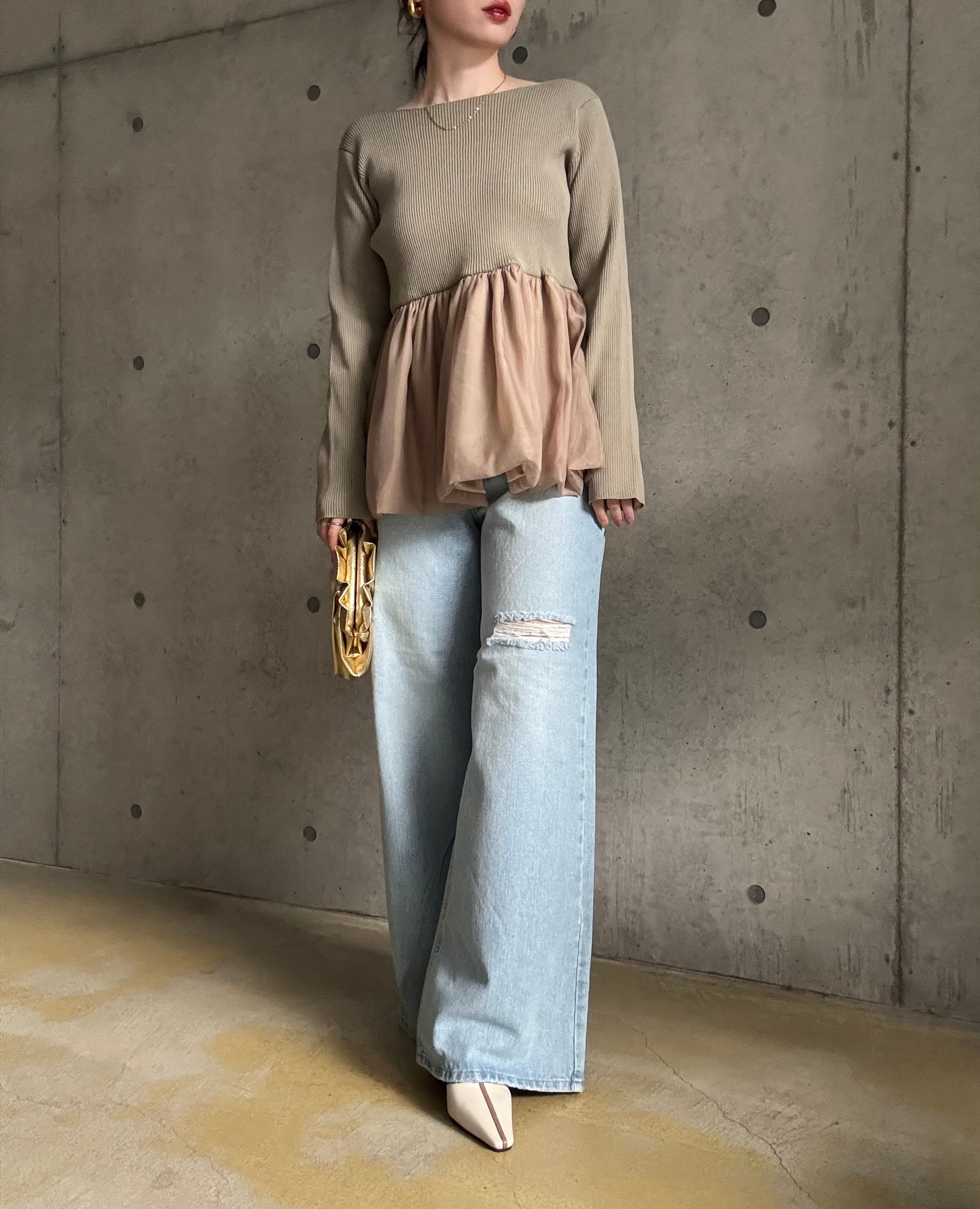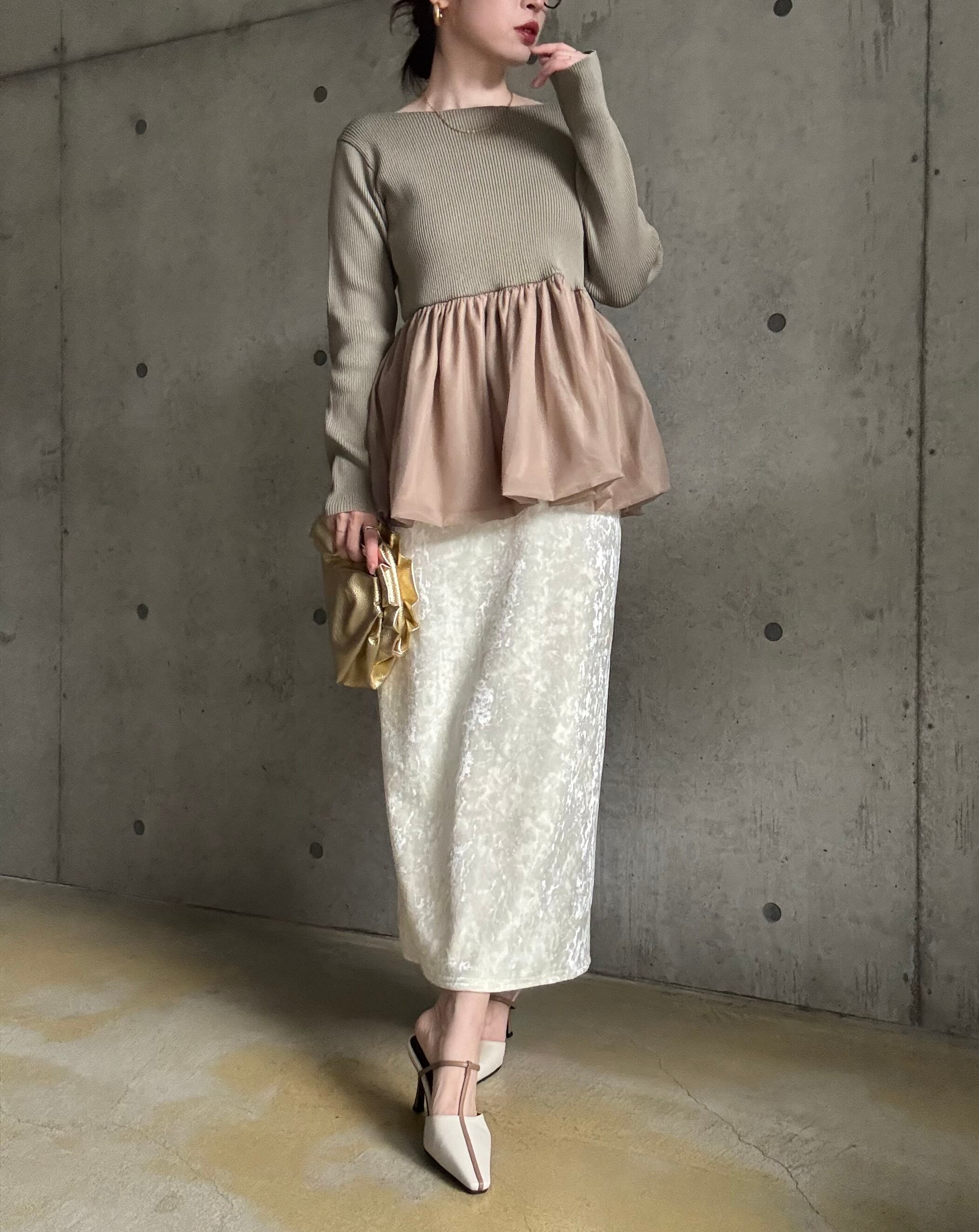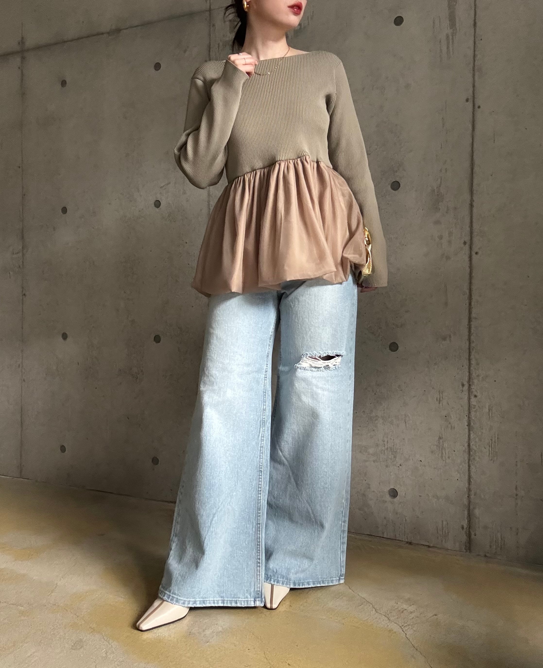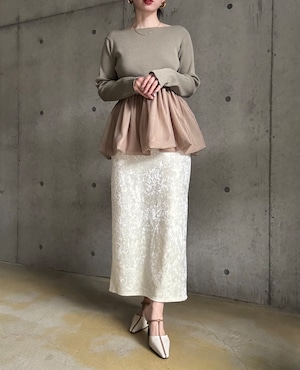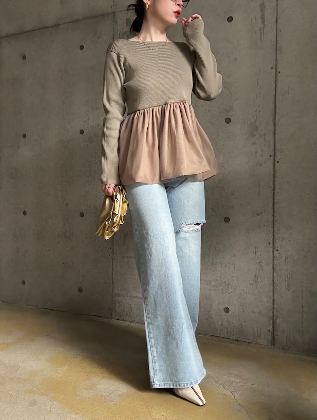 ☑️ バルーンペプラム切替ニットプルオーバー(ベージュ)