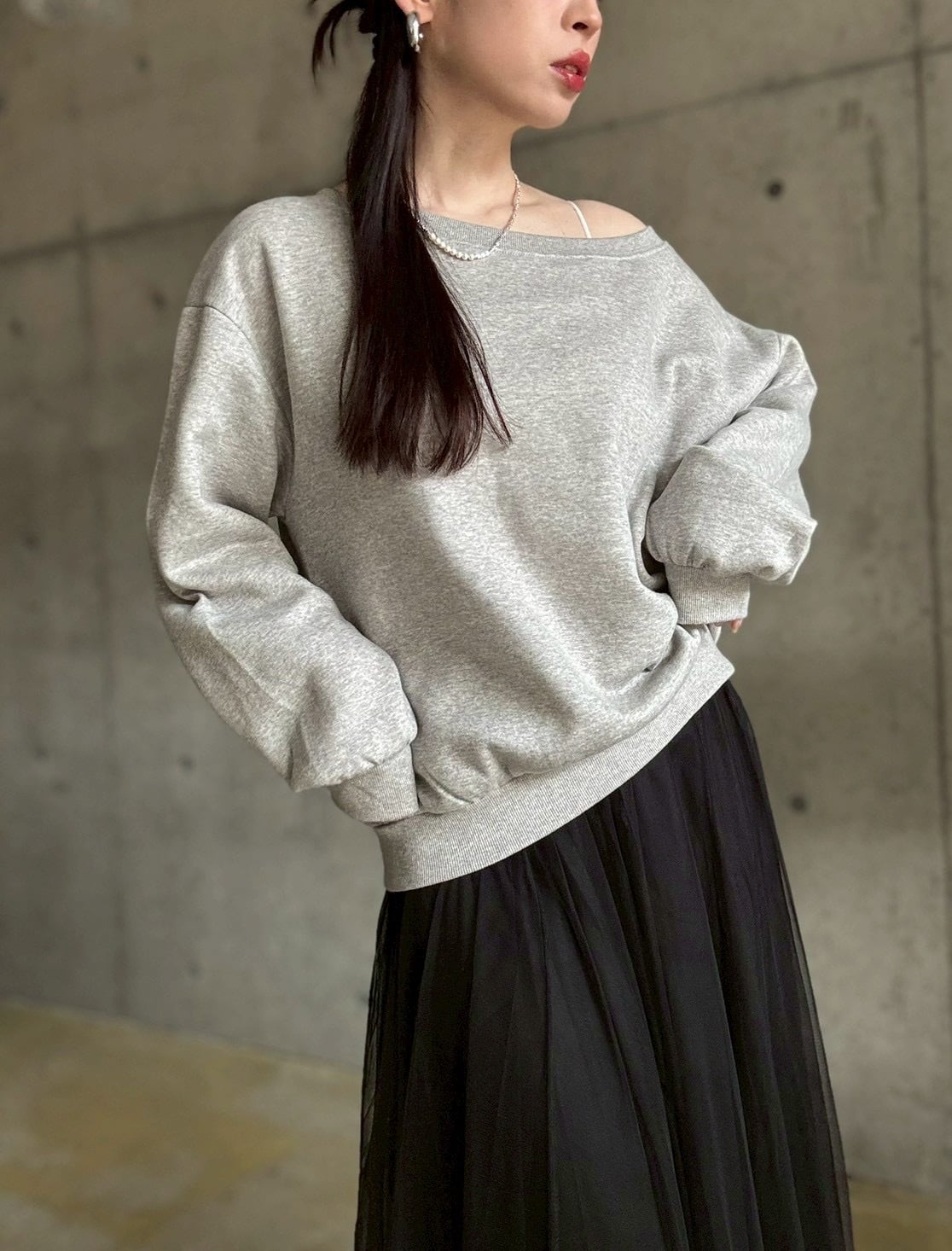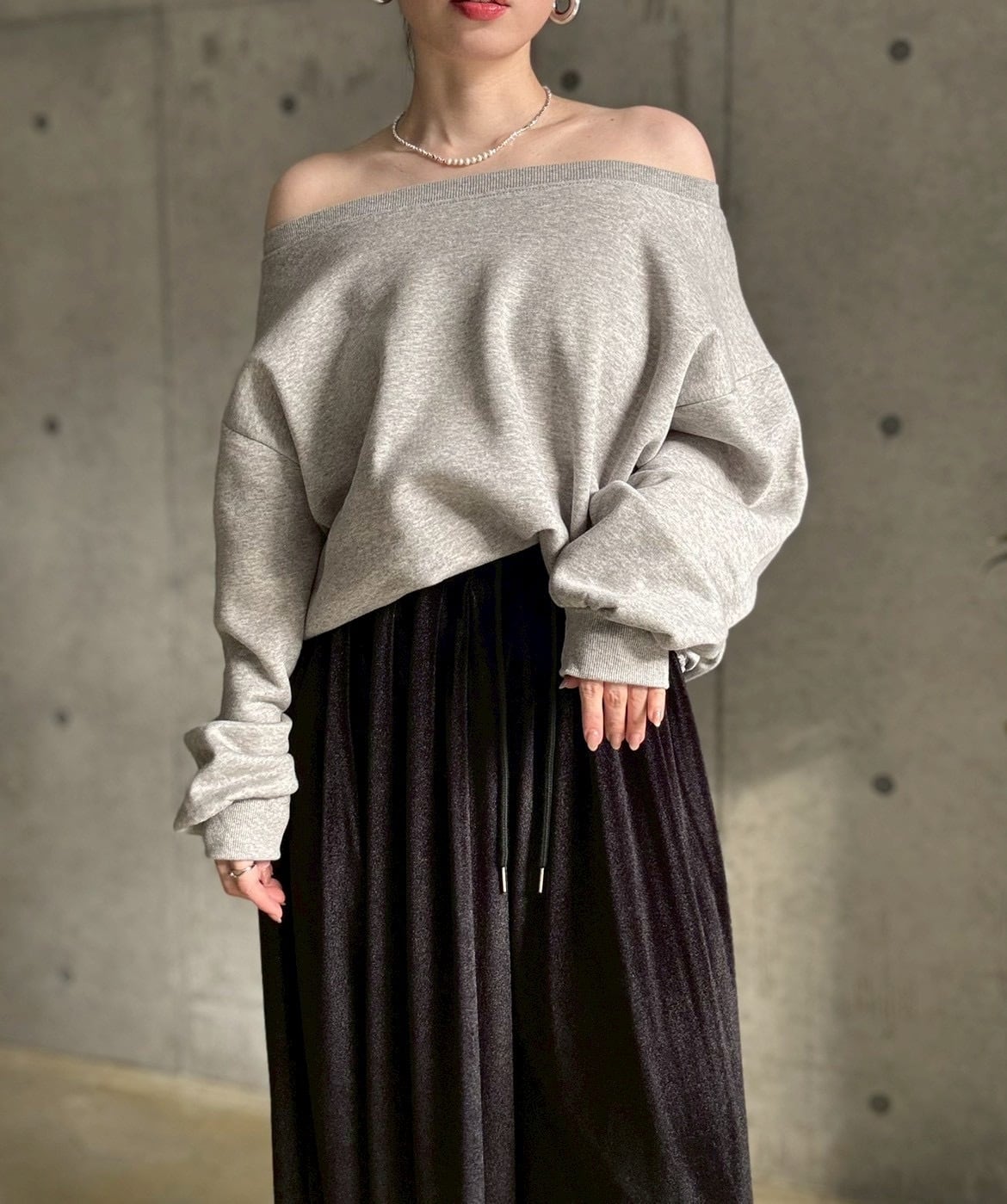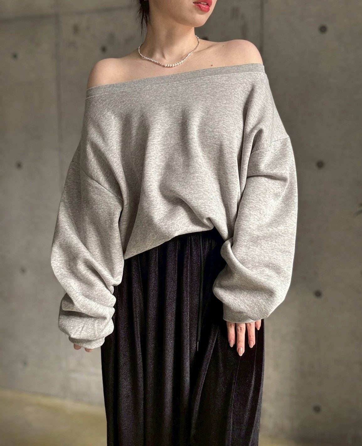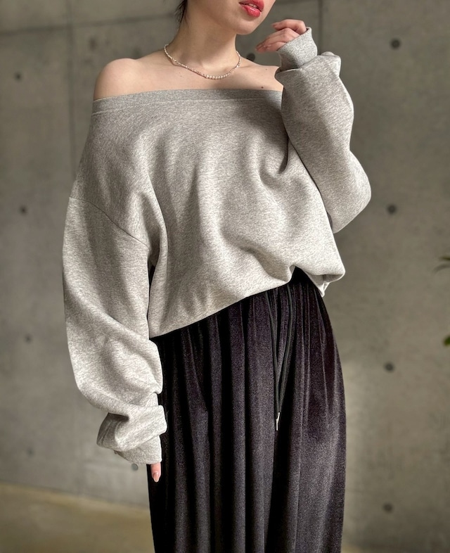 【即納】 裏微起毛ゆったりオフショルスウェットプルオーバー【グレー】