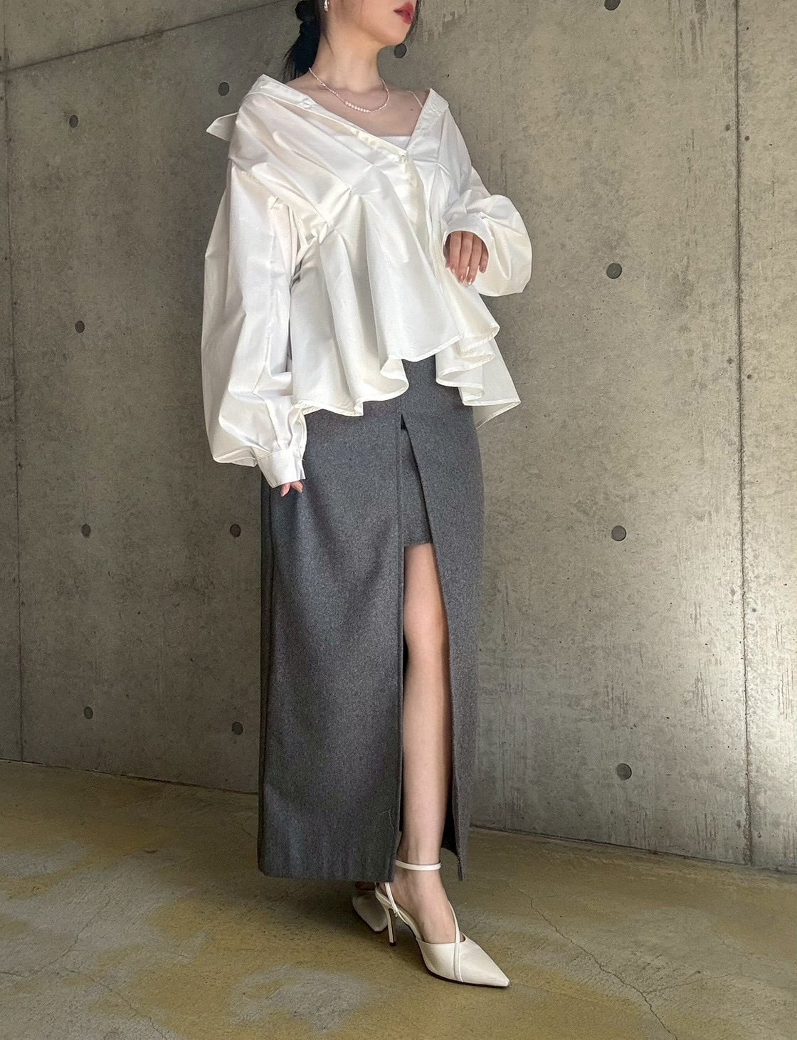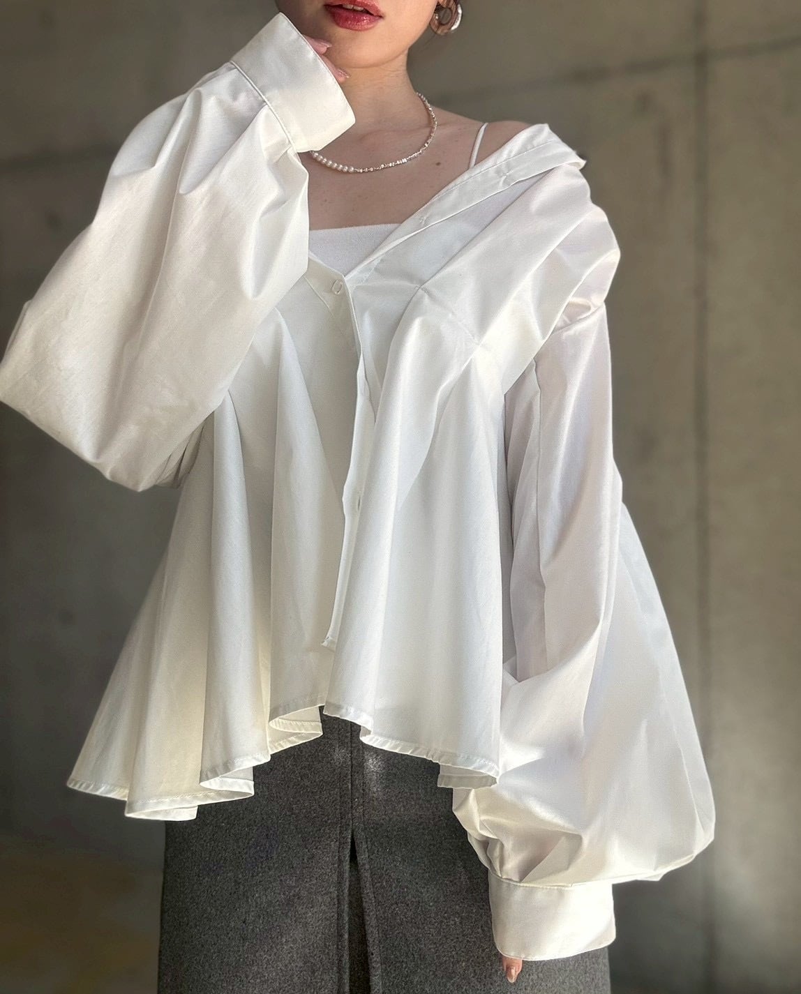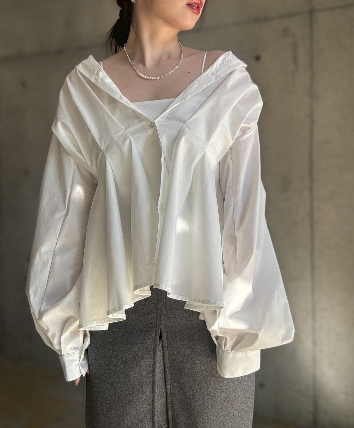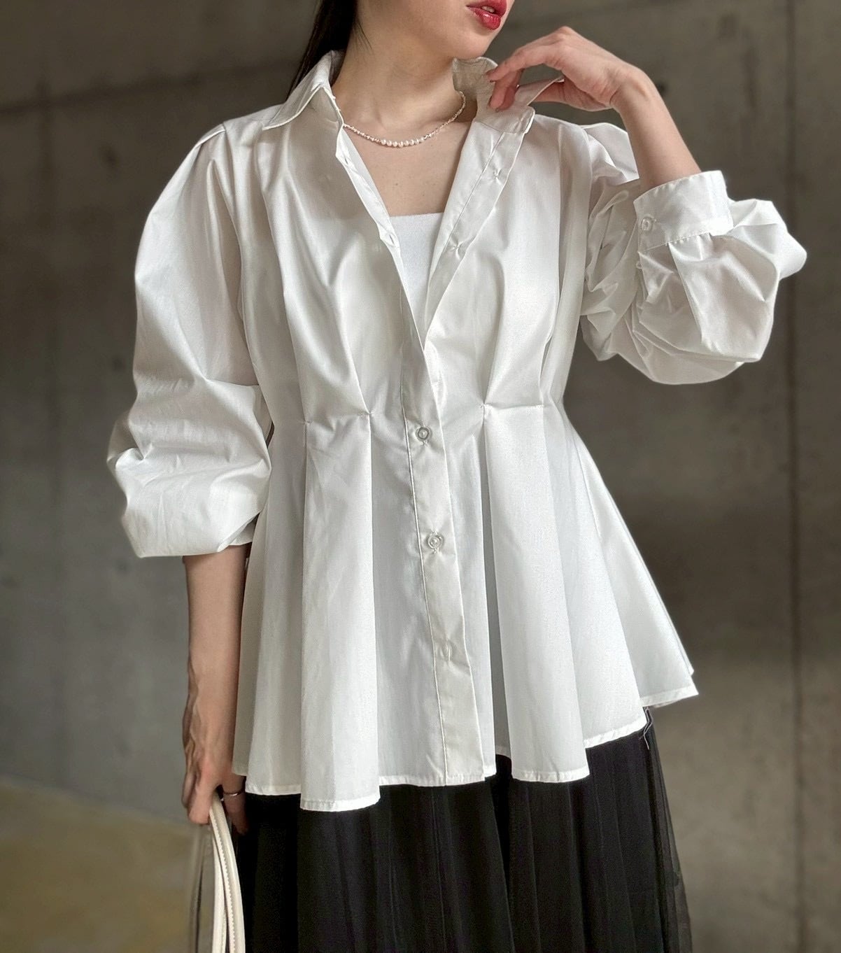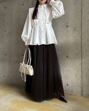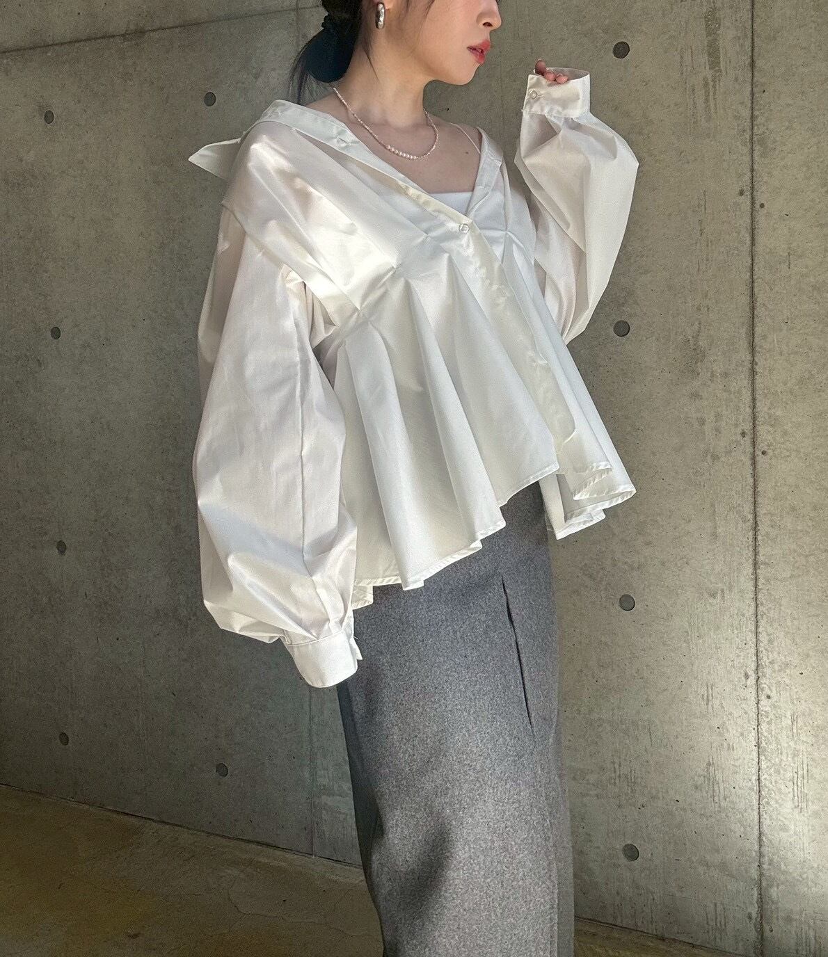 【即納】ウエストタックペプラム立体デザインシャツ【ホワイト】