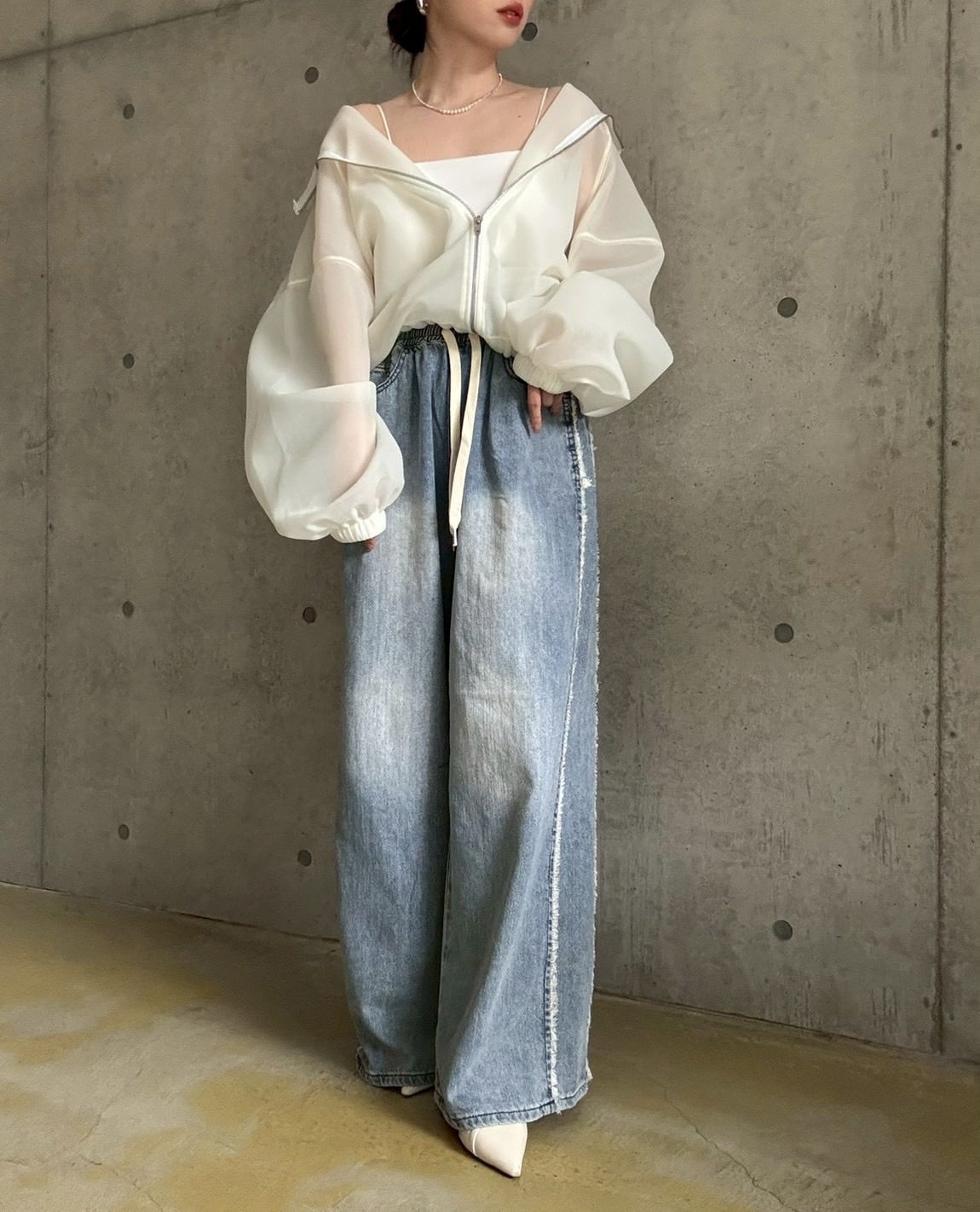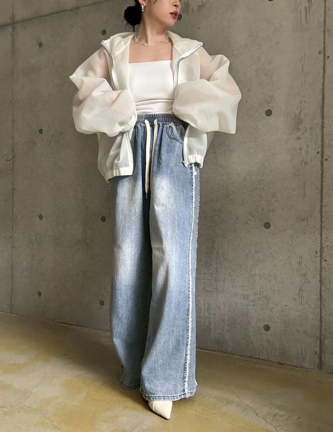 ボリューム感のある袖と、裾を絞れるたっぷりとしたシルエットは、コントラストのある女性らしい華奢見せを叶えてくれます✨