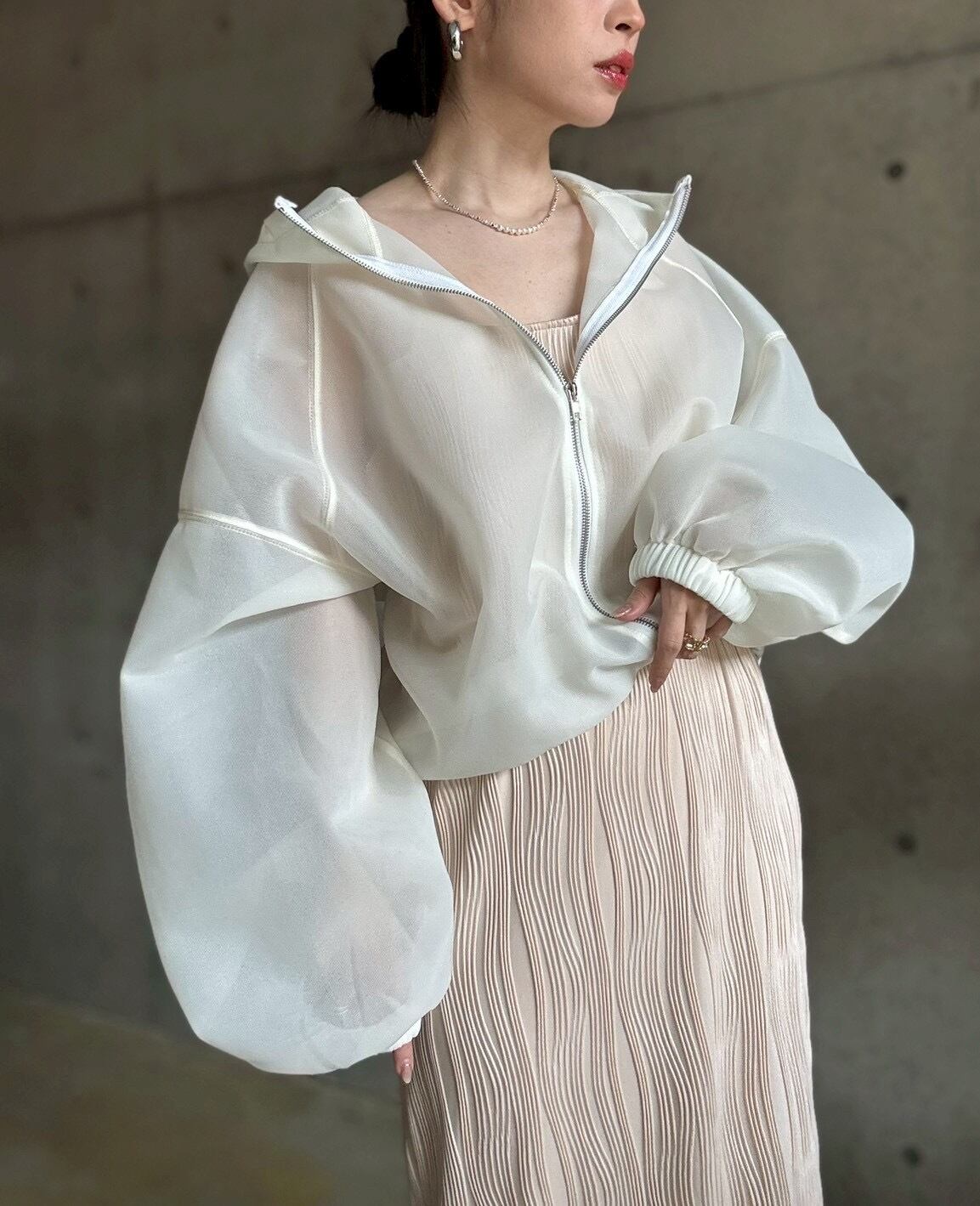 上品な透け感とたっぷりとした抜け感のあるシルエットで、