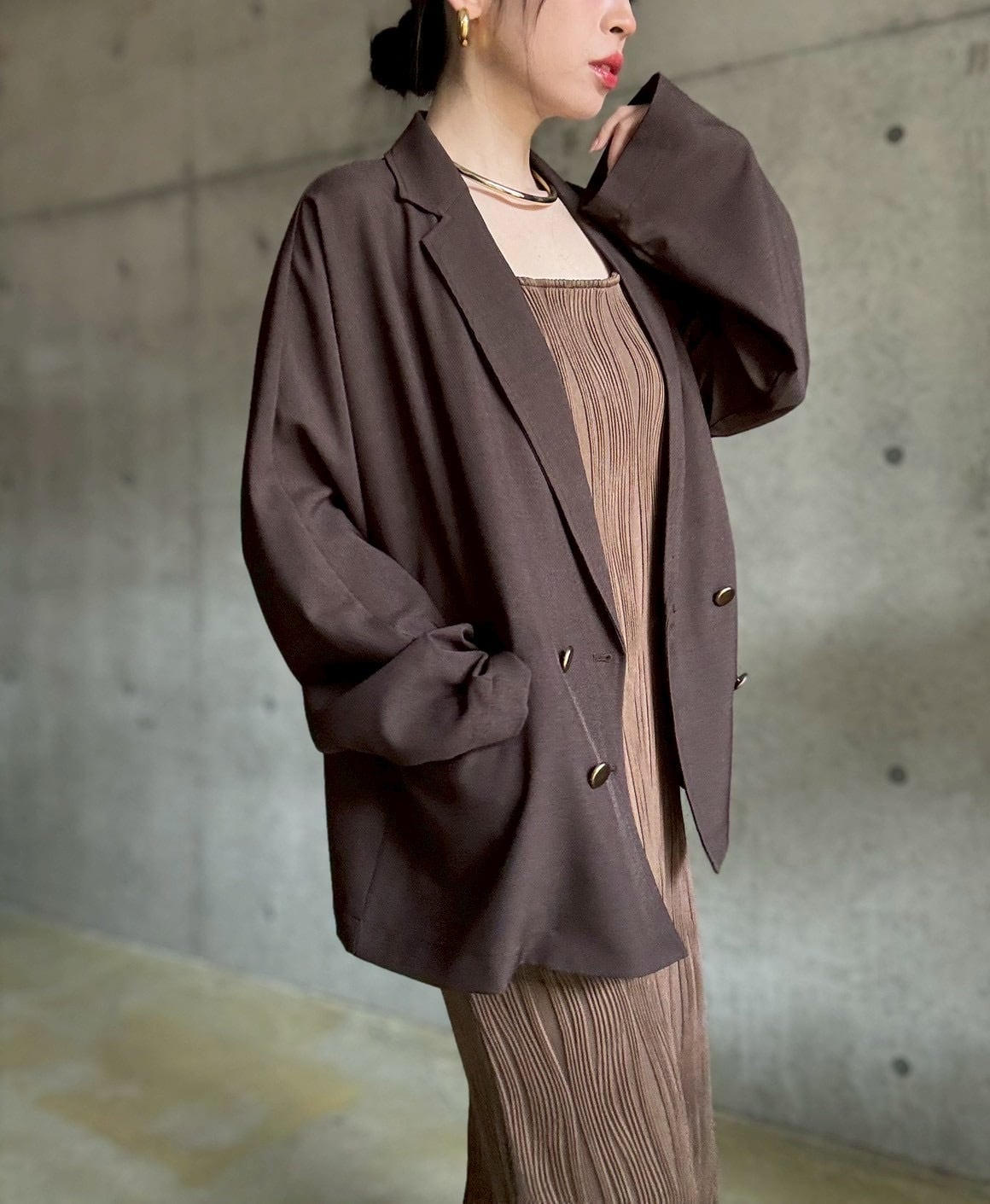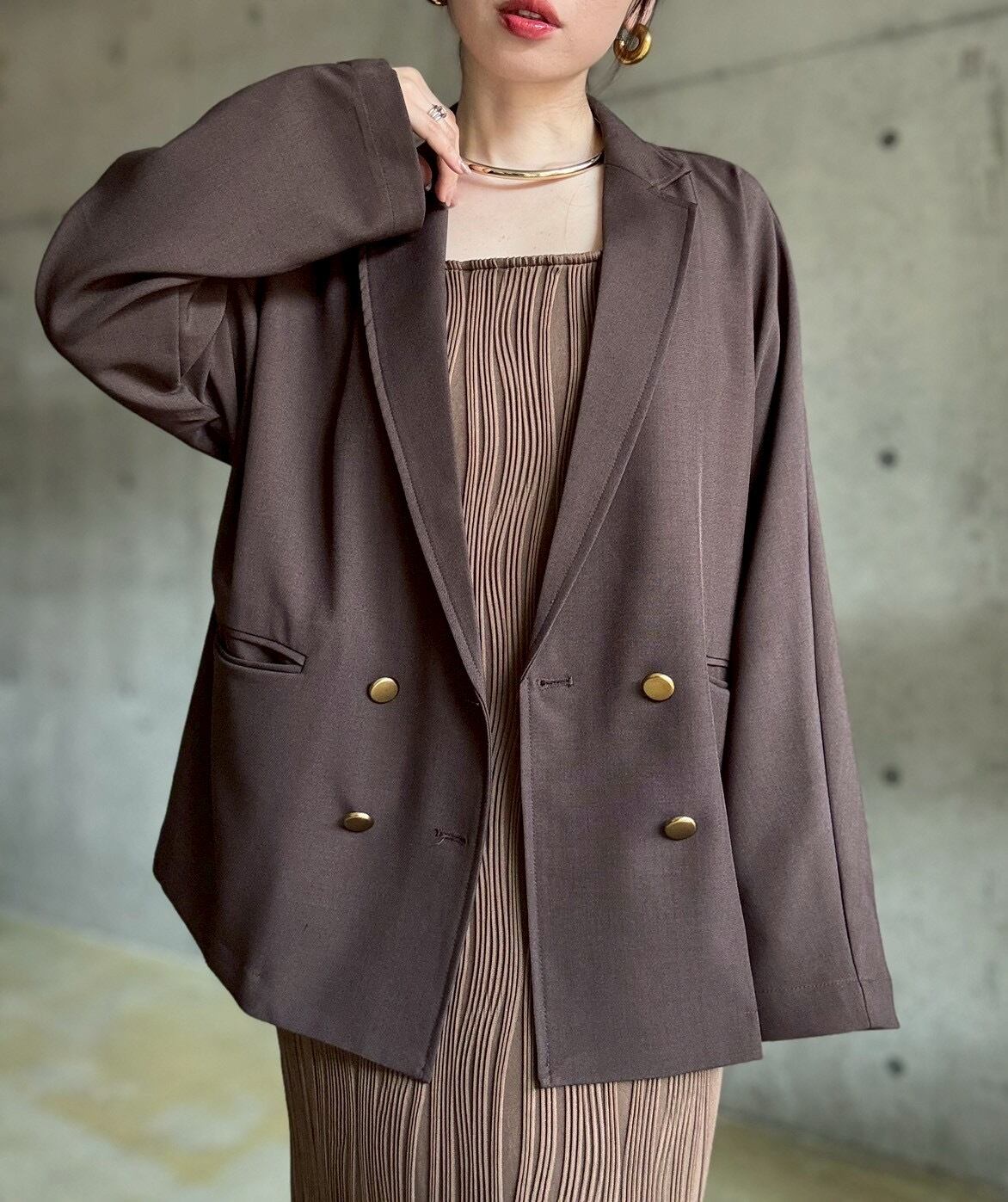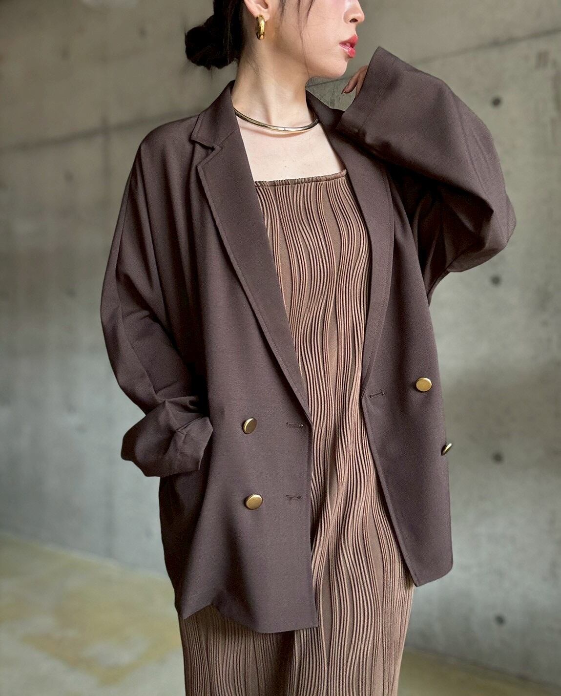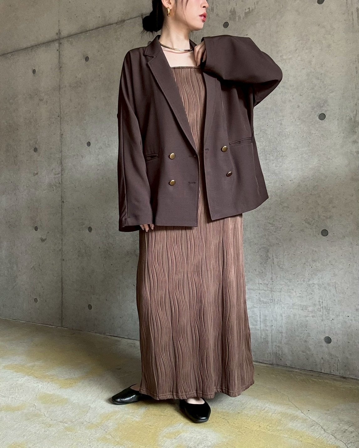 【3/3 21:00〜】 ジャケット+キャミワンピースset【ブラウン】