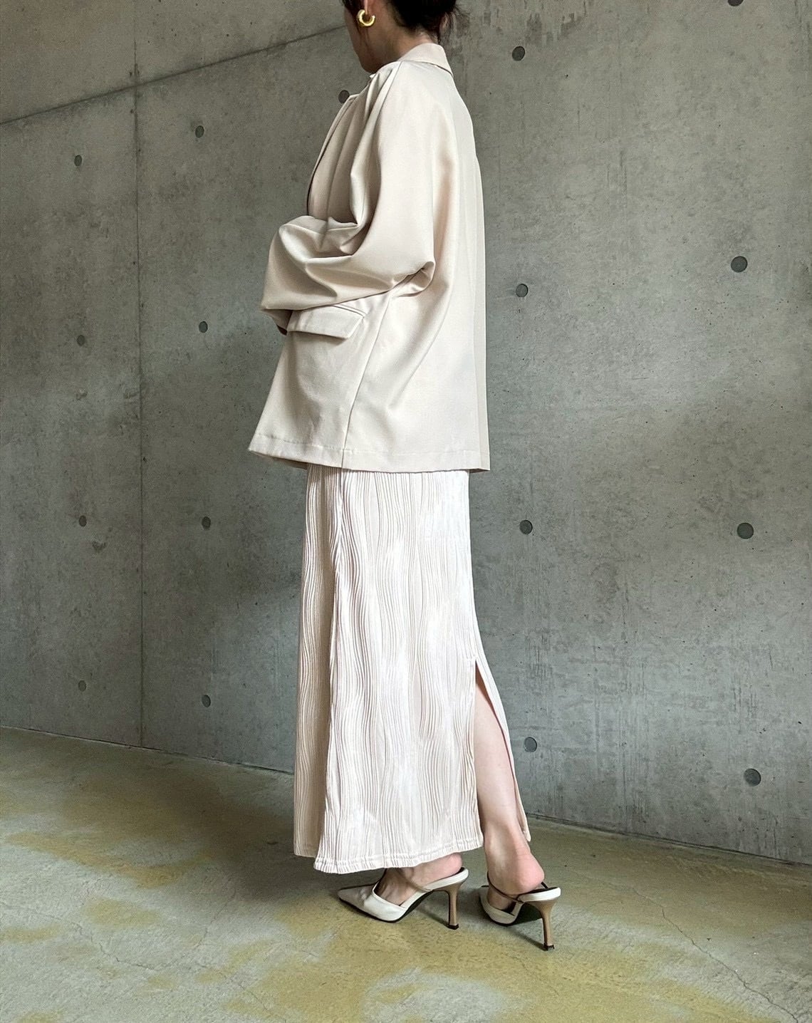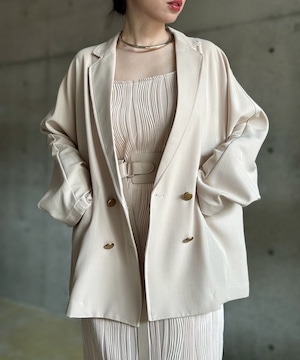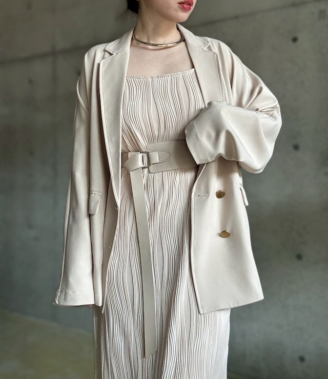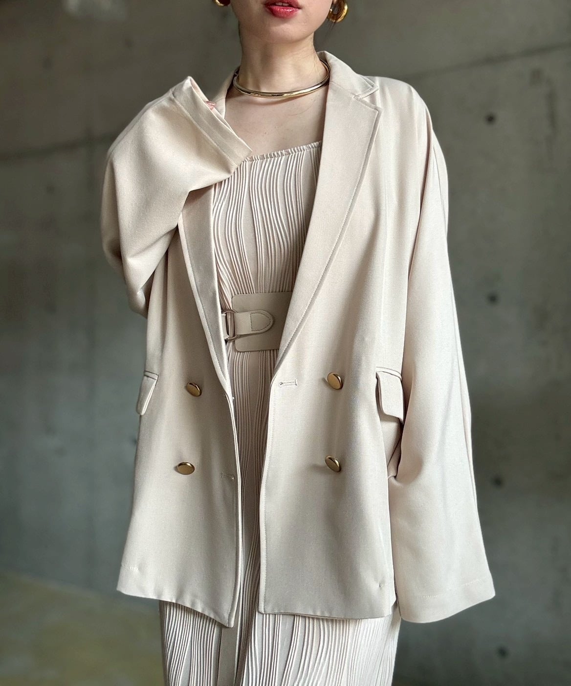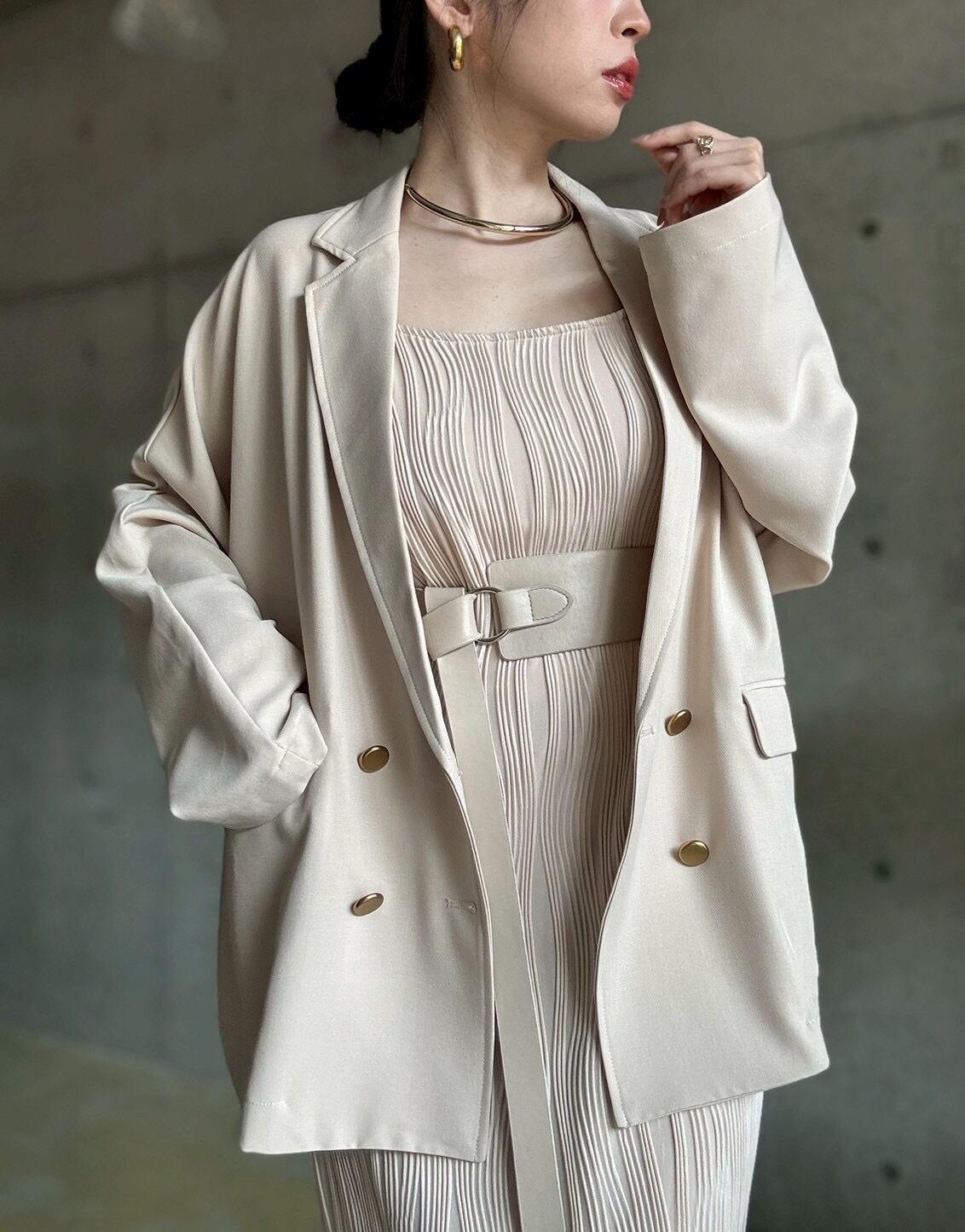 上品な落ち感とマットなゴールドボタンがポイントのジャケット&ジャガードウェーブ柄が高級感たっぷりなキャミワンピースをセットに♪