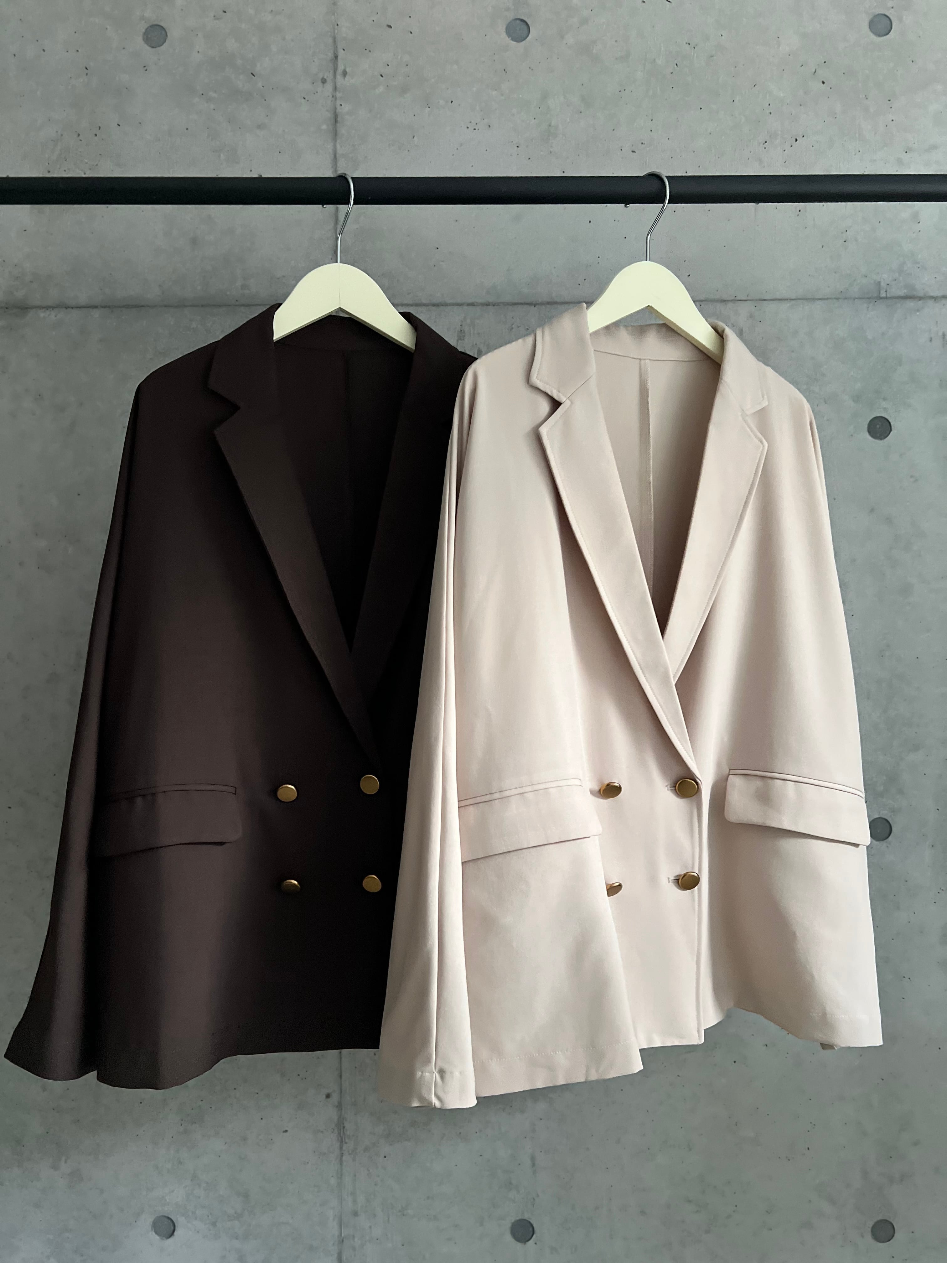 着痩せ効果のある、さらっとした落ち感のある生地を使用したジャケットは、カジュアルにもキレイめにも使い勝手バツグン!