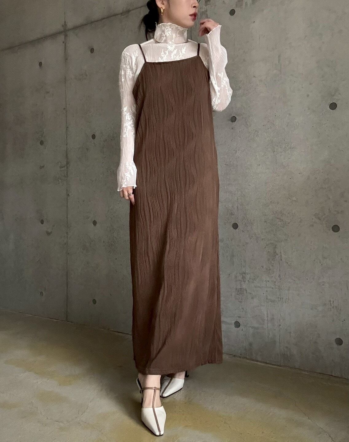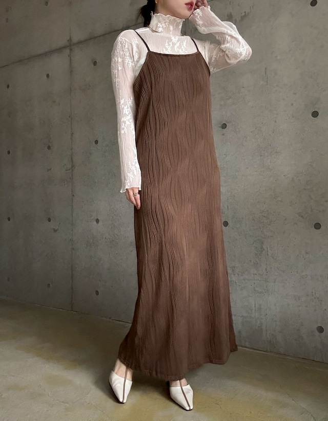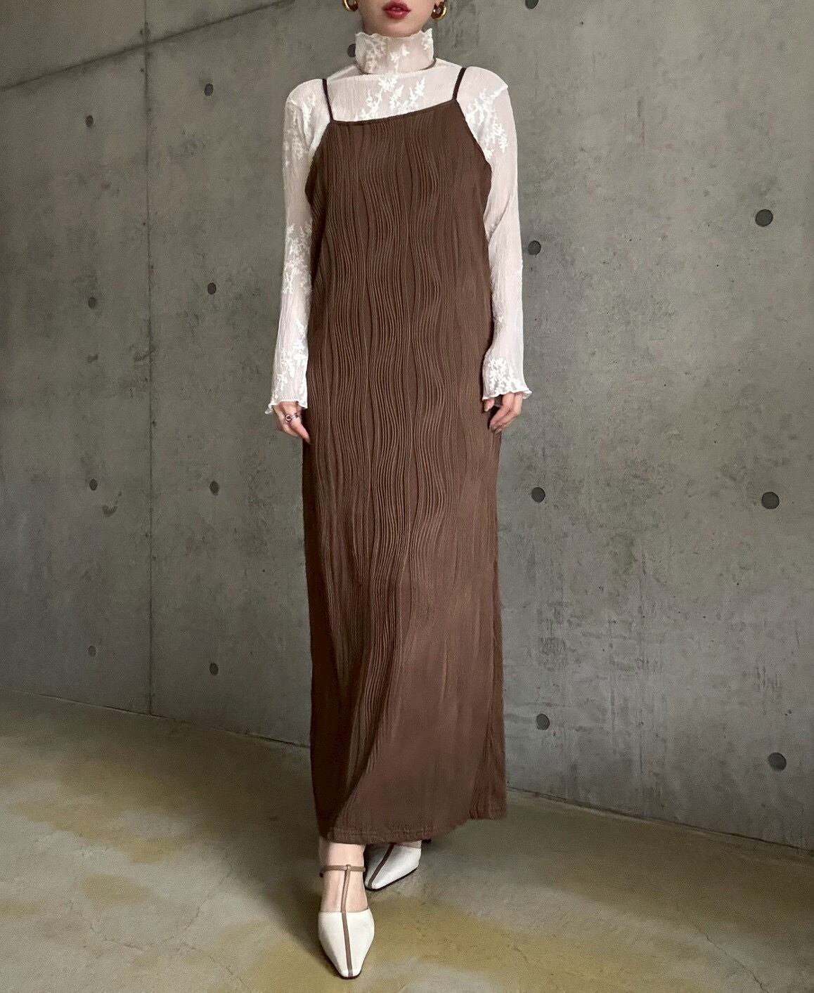 【3/3 21:00〜】 【単品】ウェーブジャガードIラインキャミワンピース【ブラウン】