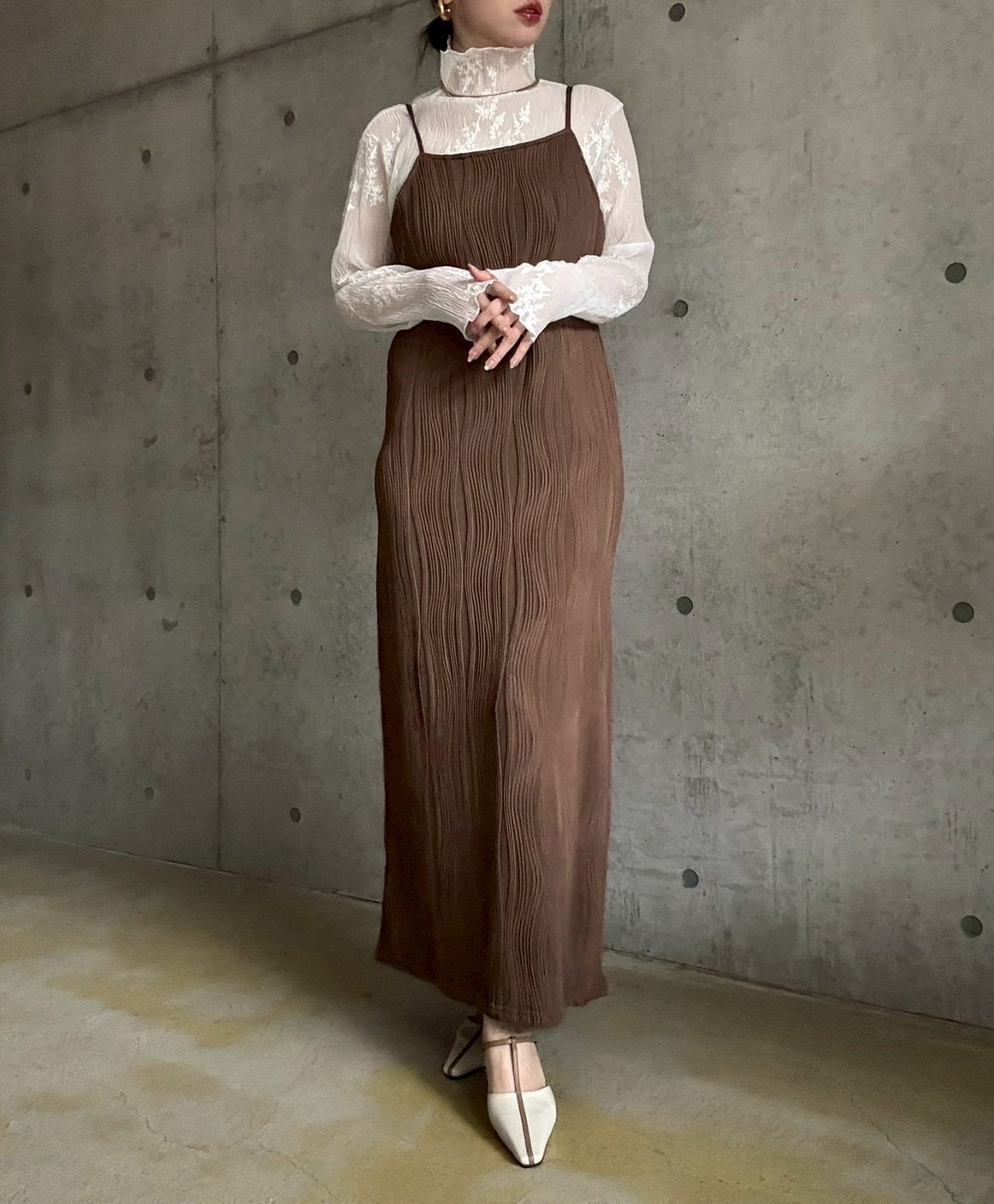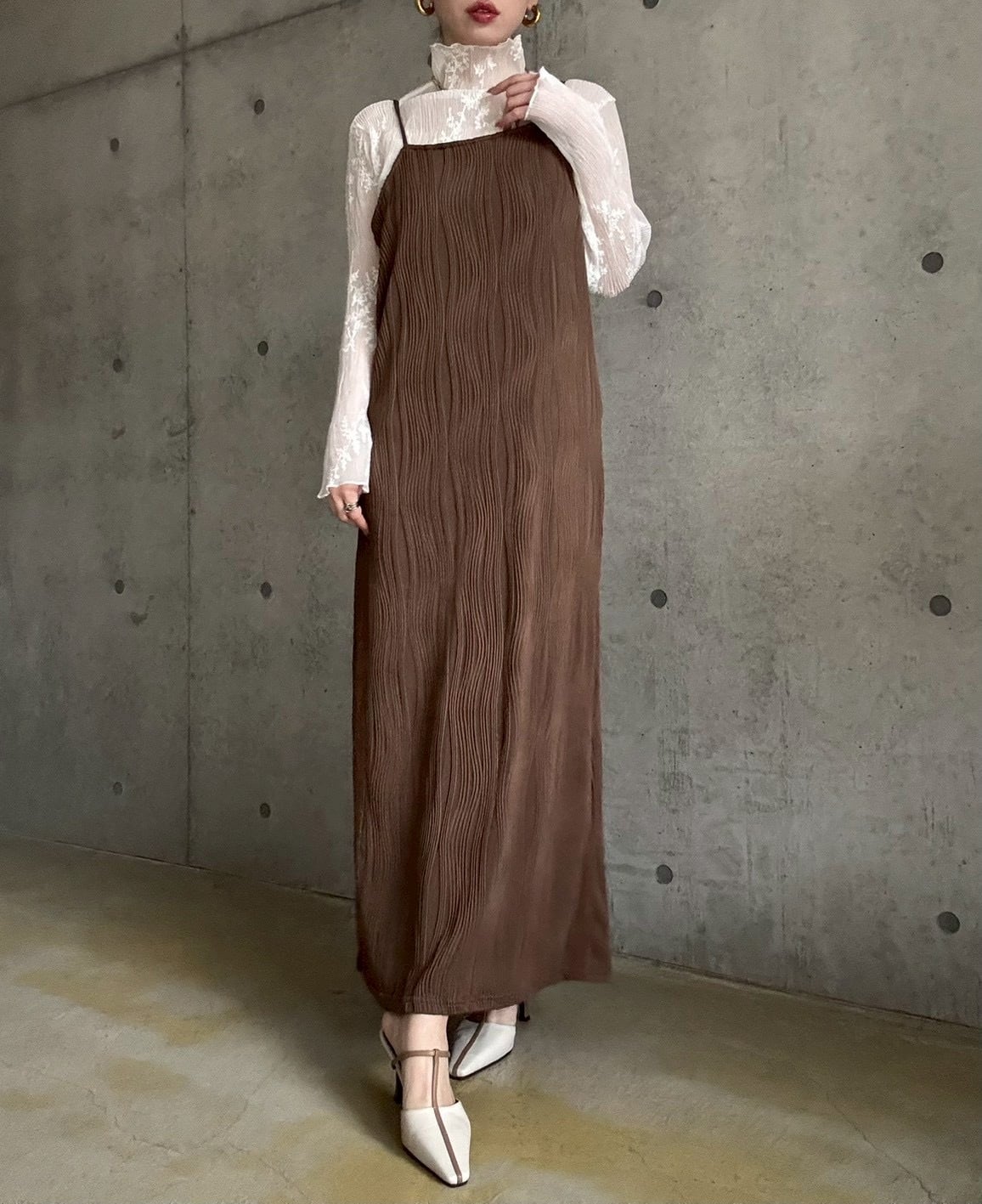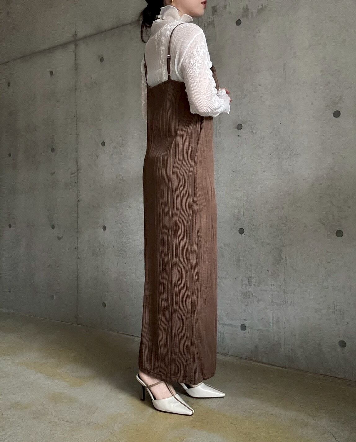 【3/3 21:00〜】 【単品】ウェーブジャガードIラインキャミワンピース【ブラウン】