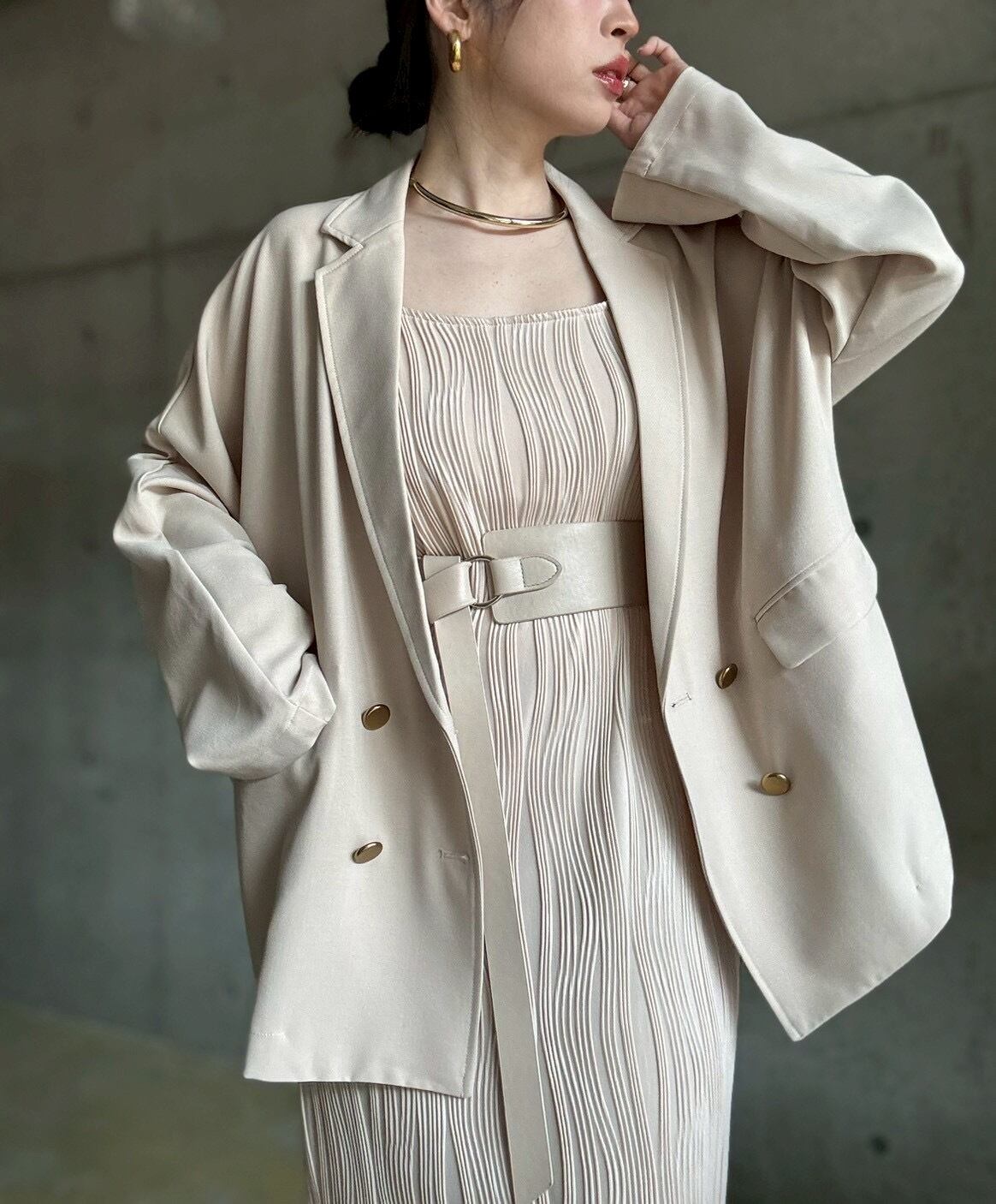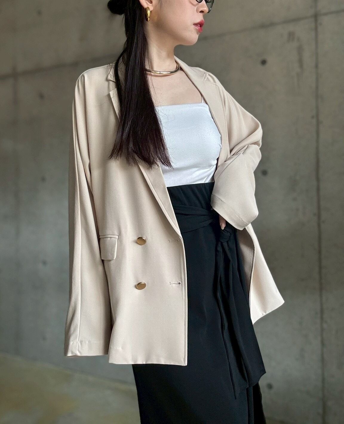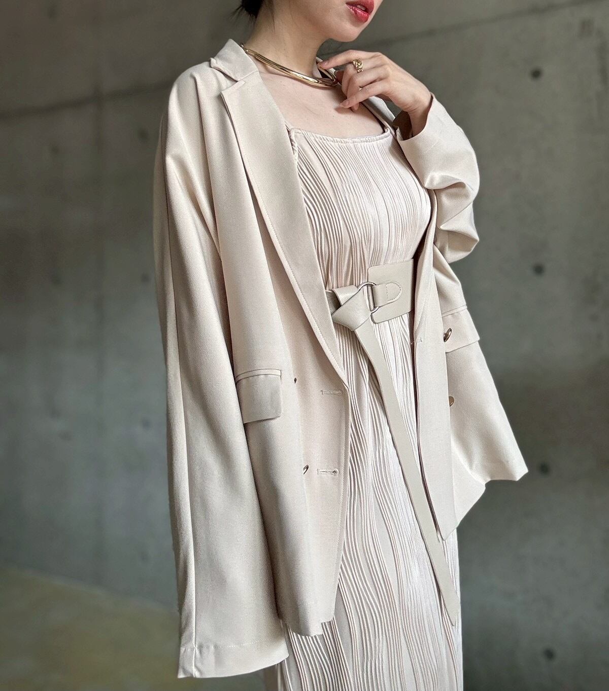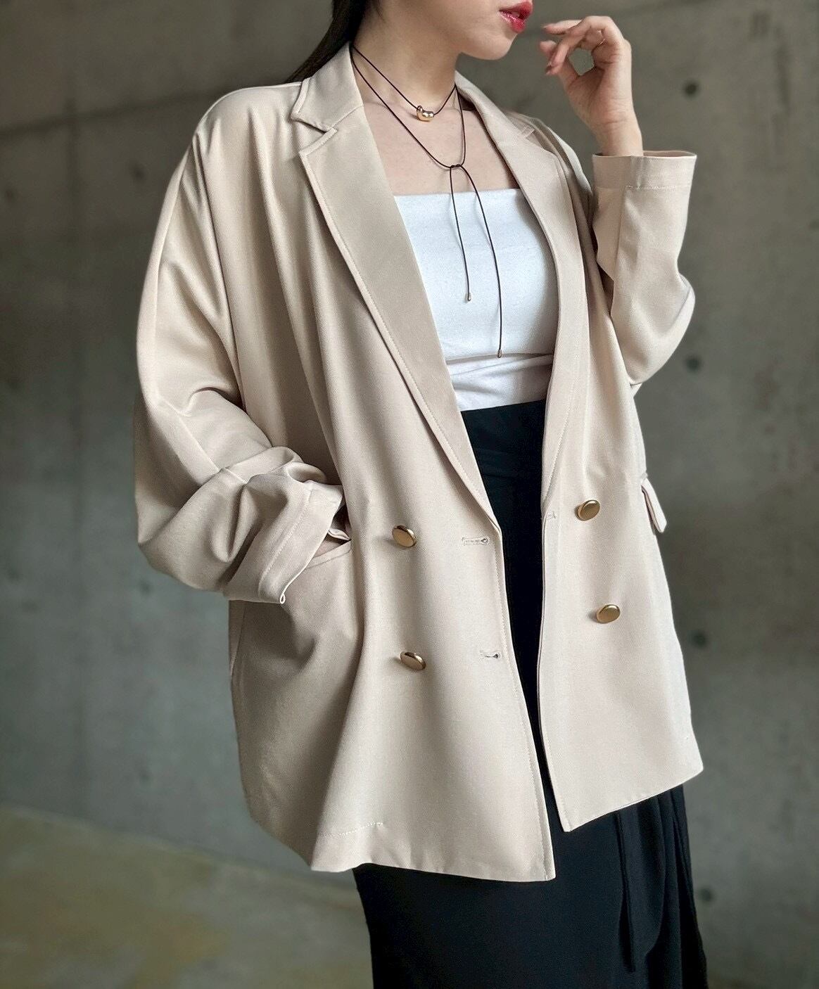 サラッと上品な落ち感のある生地が美しい、オンオフに使えるキレイめジャケット✨