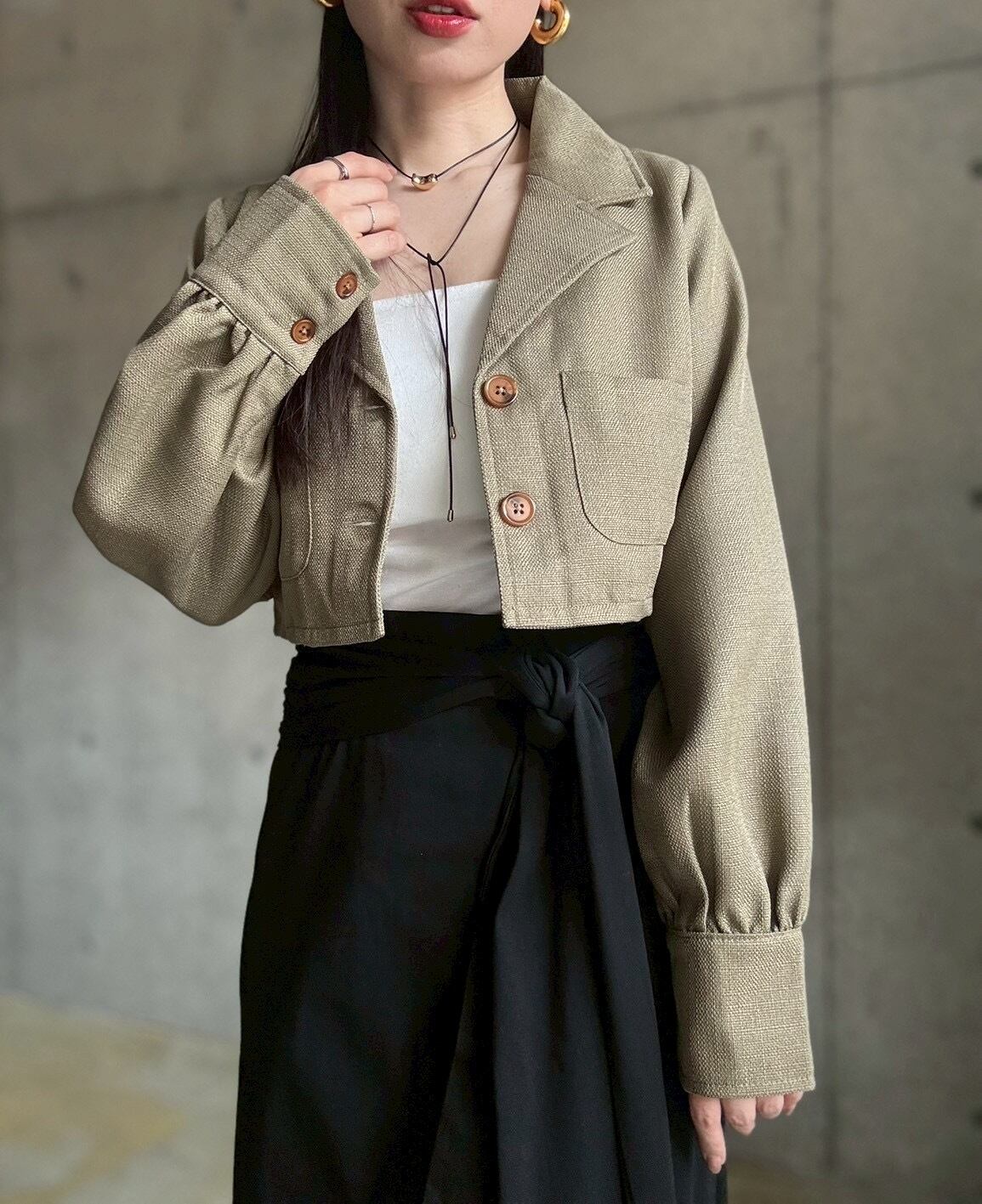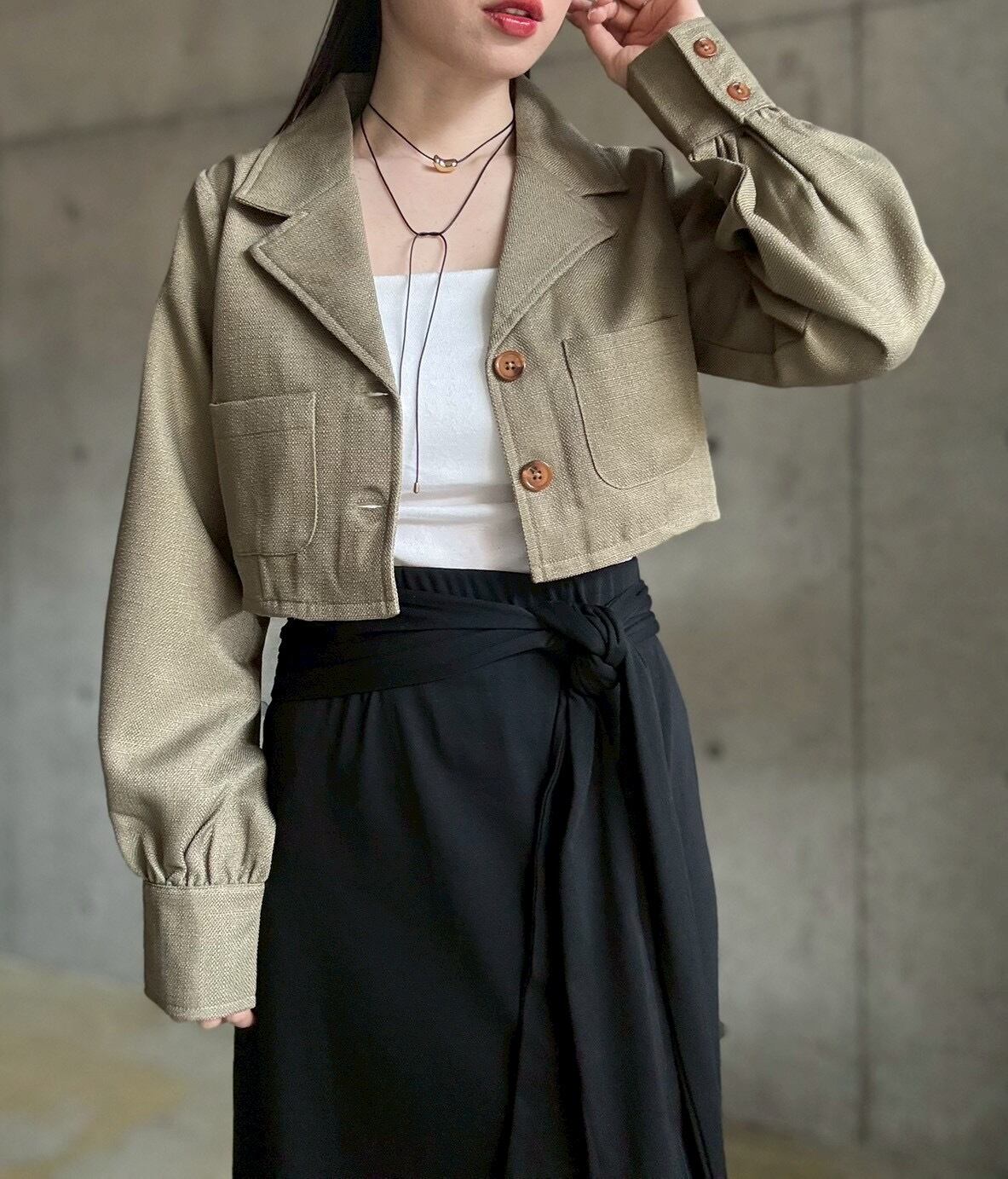 ショート丈でスッキリ♪スタイルアップが叶うショートテーラードジャケット✨