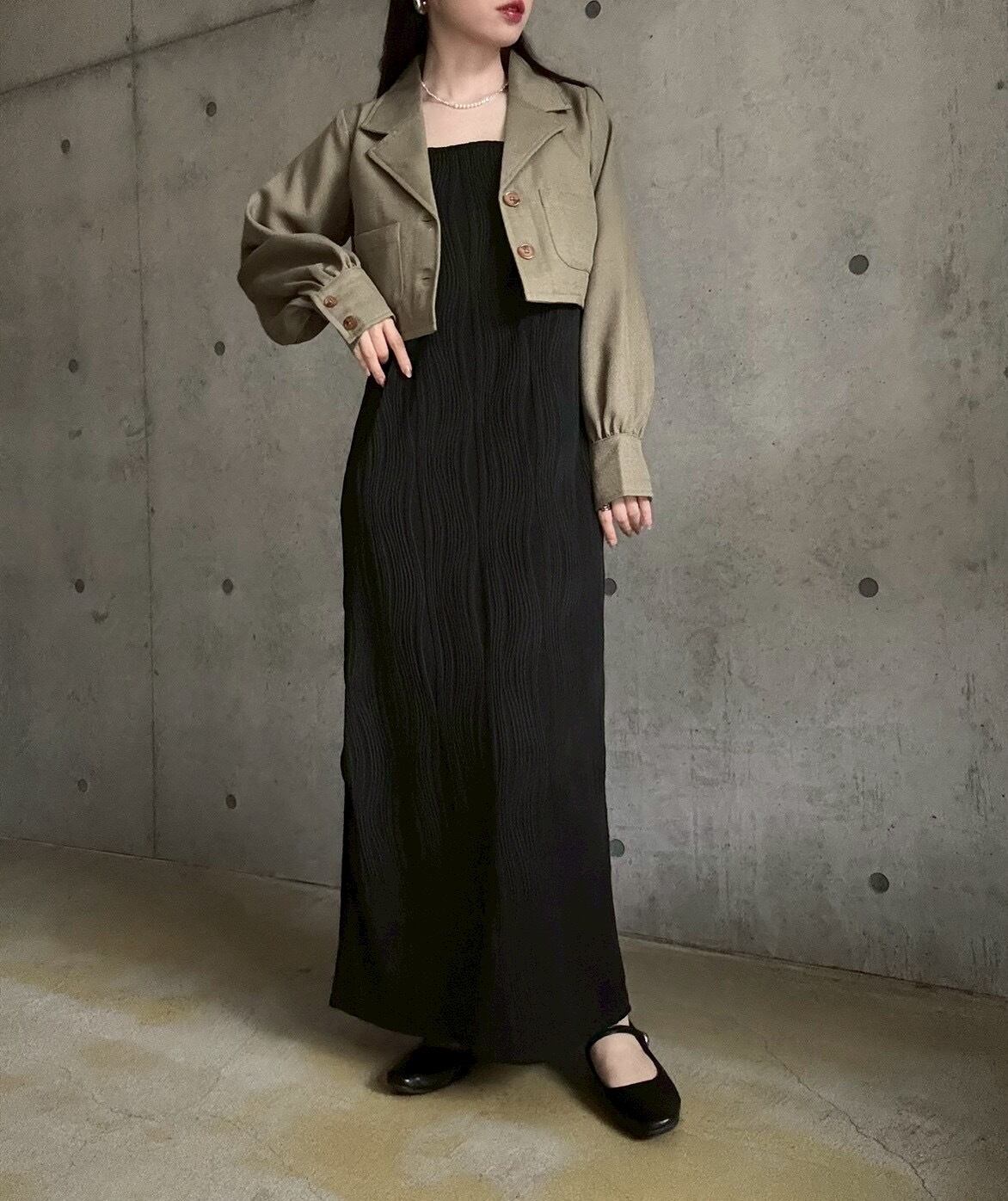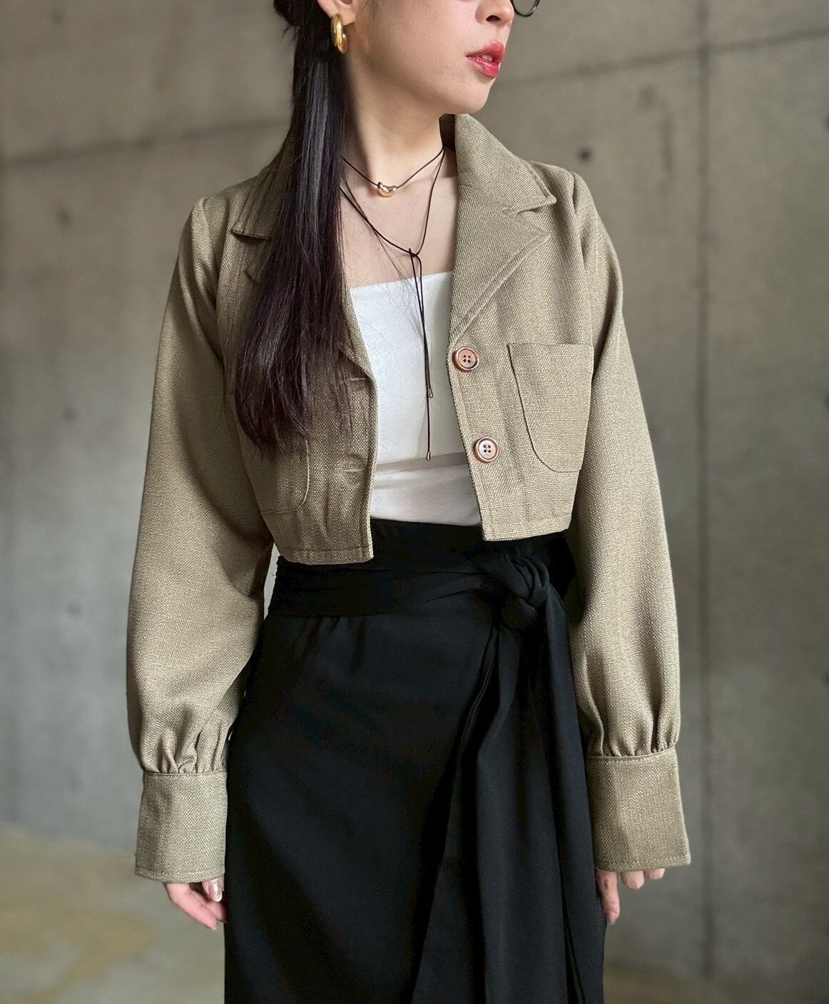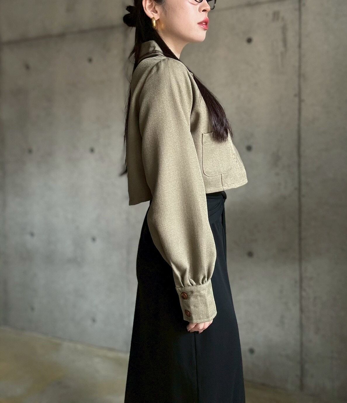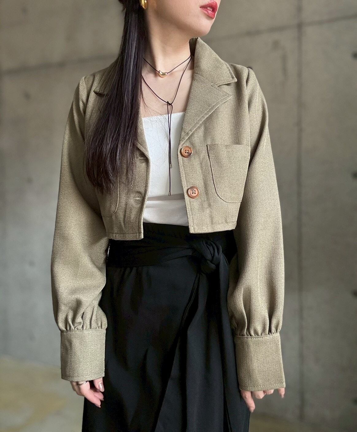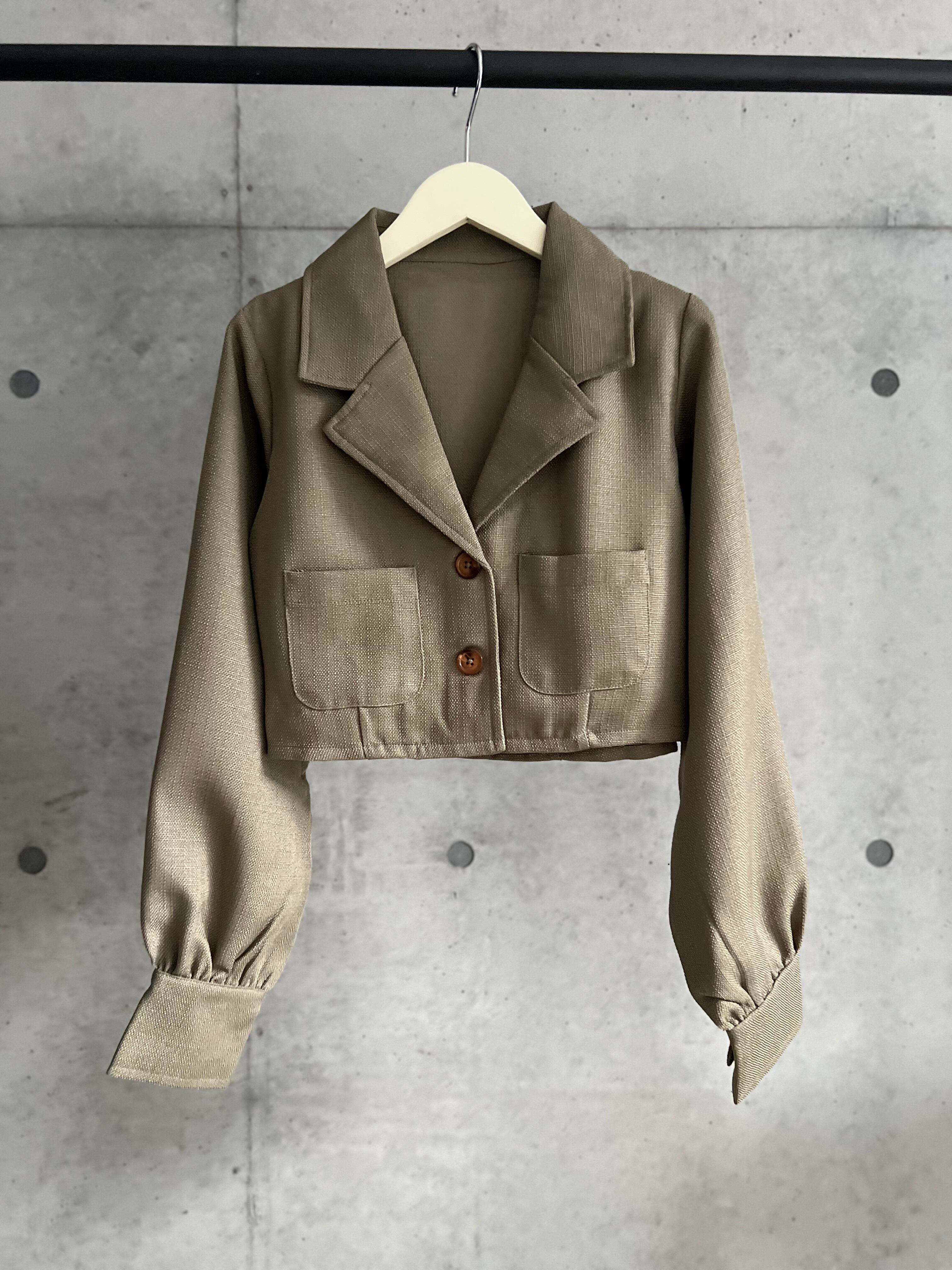 【3/14 21:00〜】 ショート丈テーラードジャケット【カーキ】