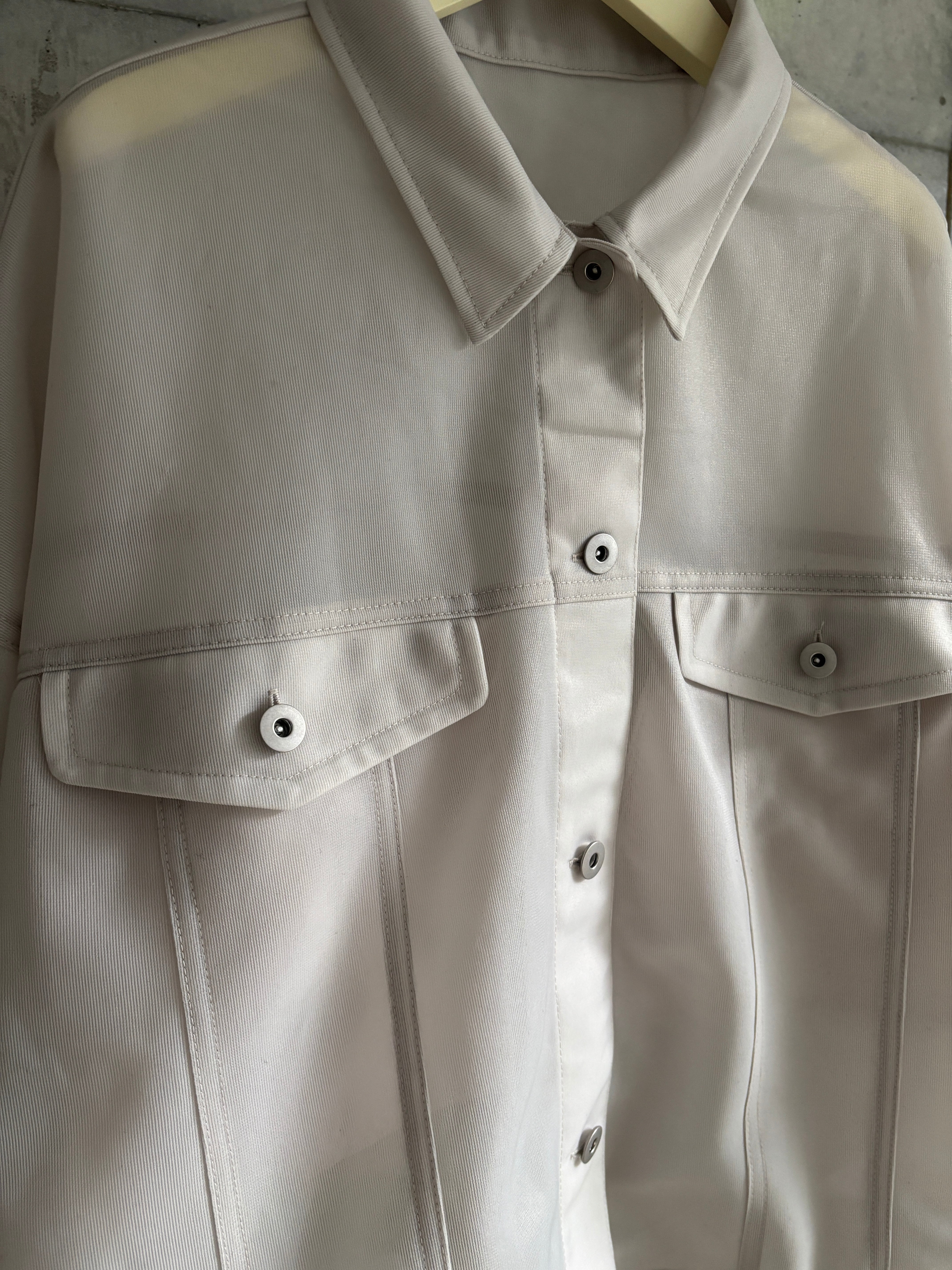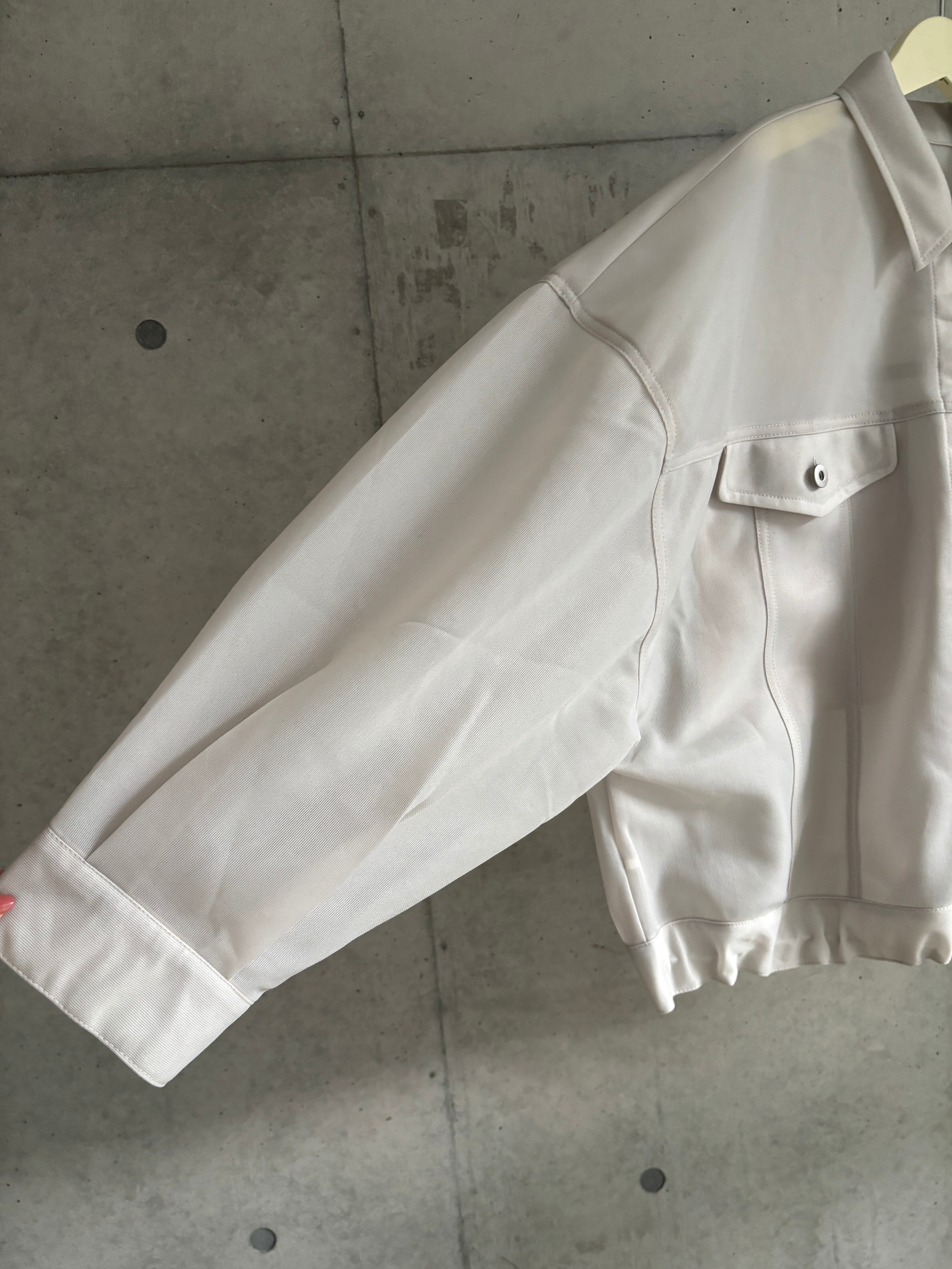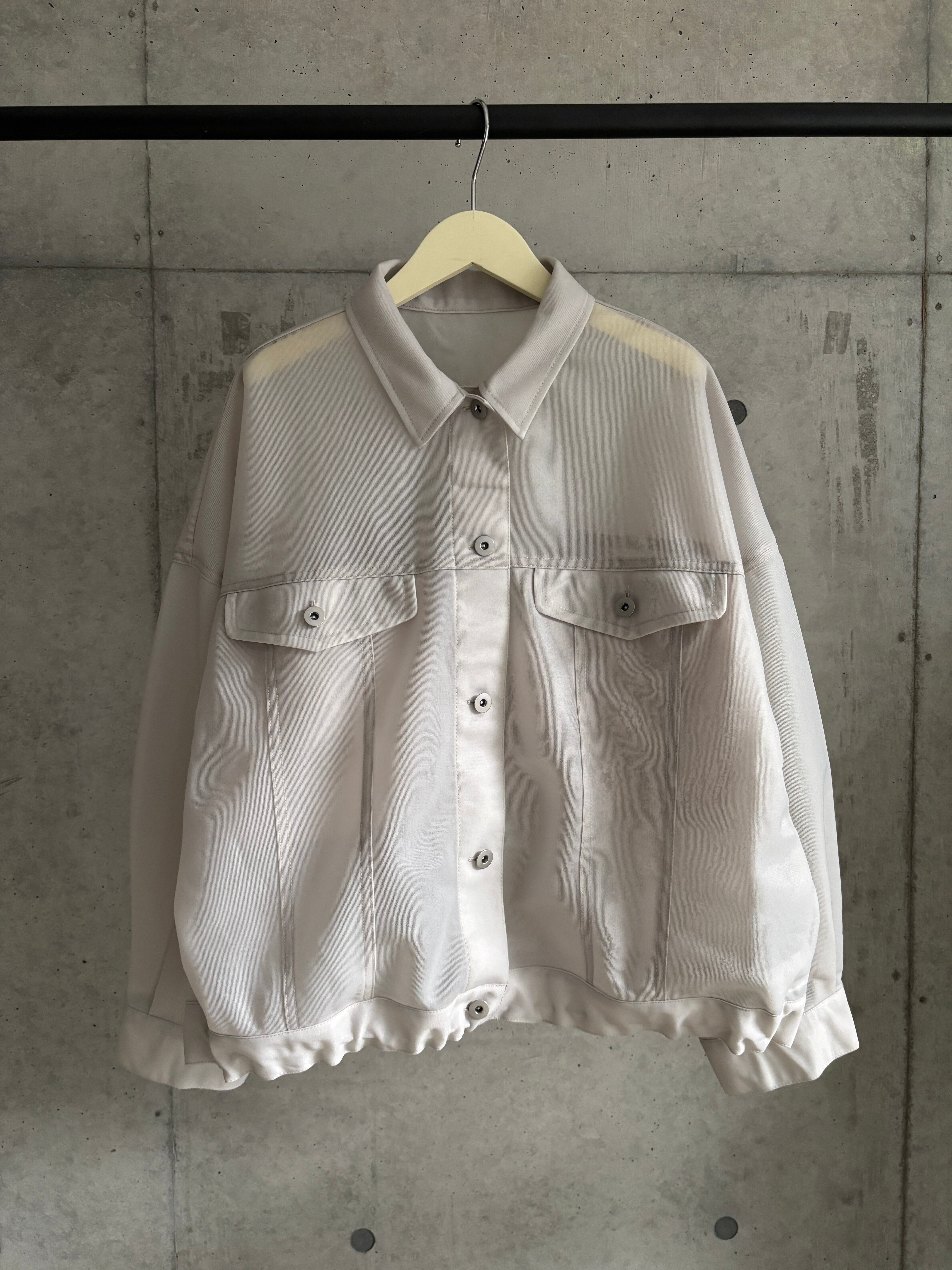 シアー感と絶妙なハリ感を両立させた、ポリエステル100%のシアーダンボール生地がポイントのボリュームジャケット♪