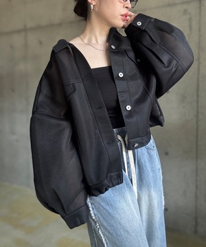 シアー感と絶妙なハリ感を両立させた、ポリエステル100%のシアーダンボール生地がポイントのボリュームジャケット♪