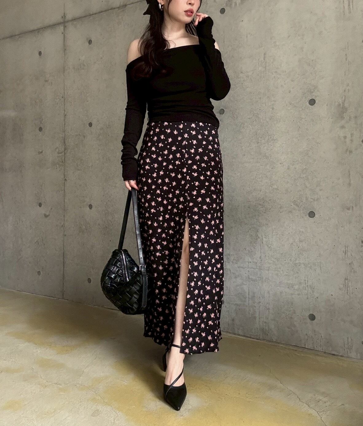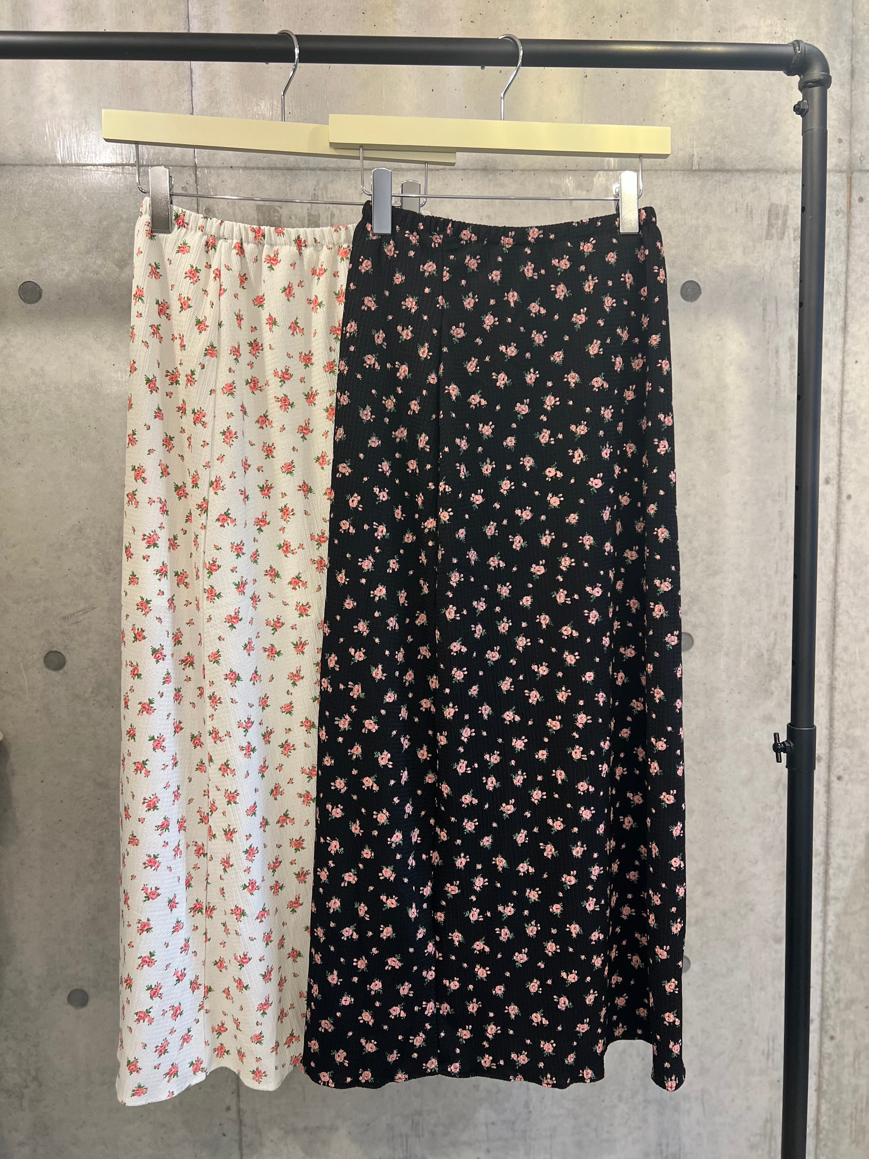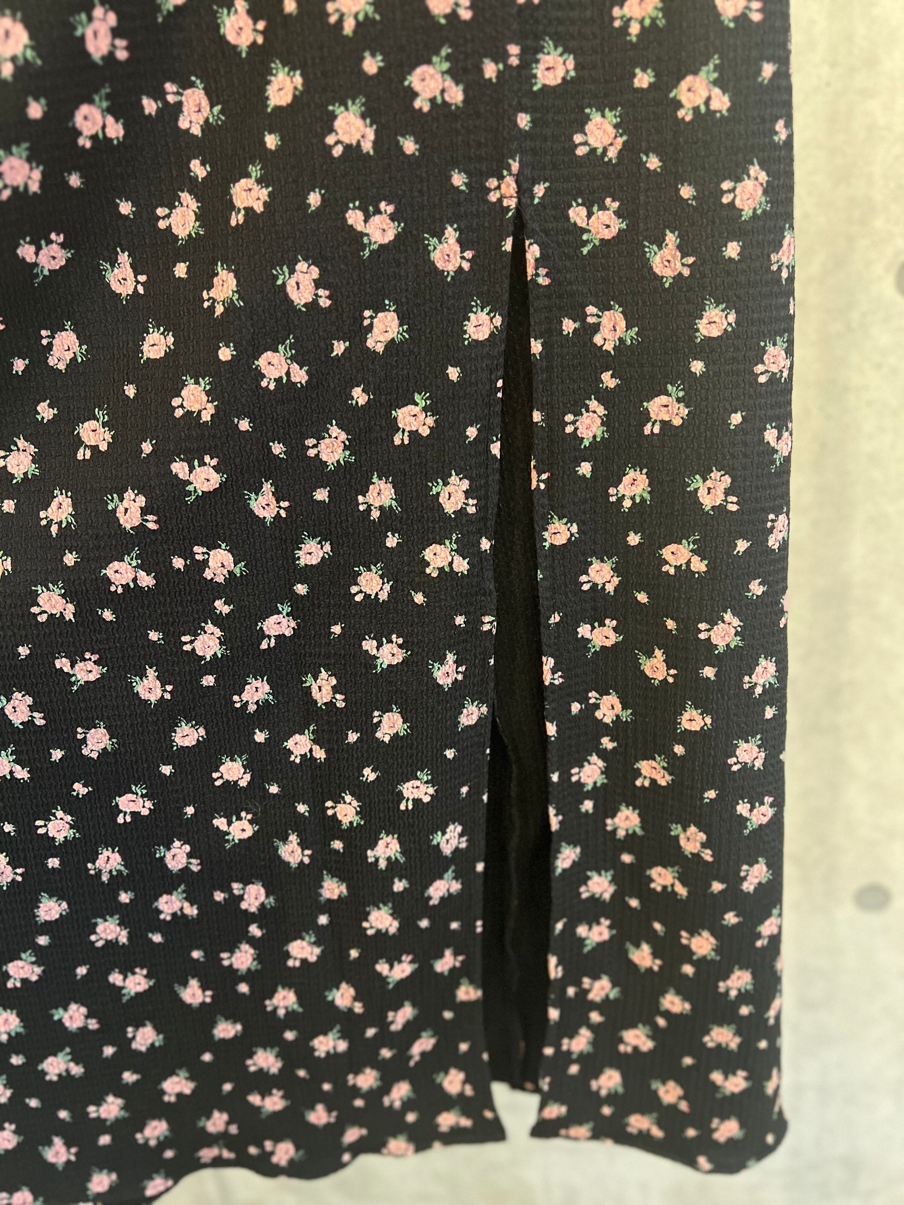 【4/4 21:00〜】小花柄ストレッチロングスカート【ブラック】
