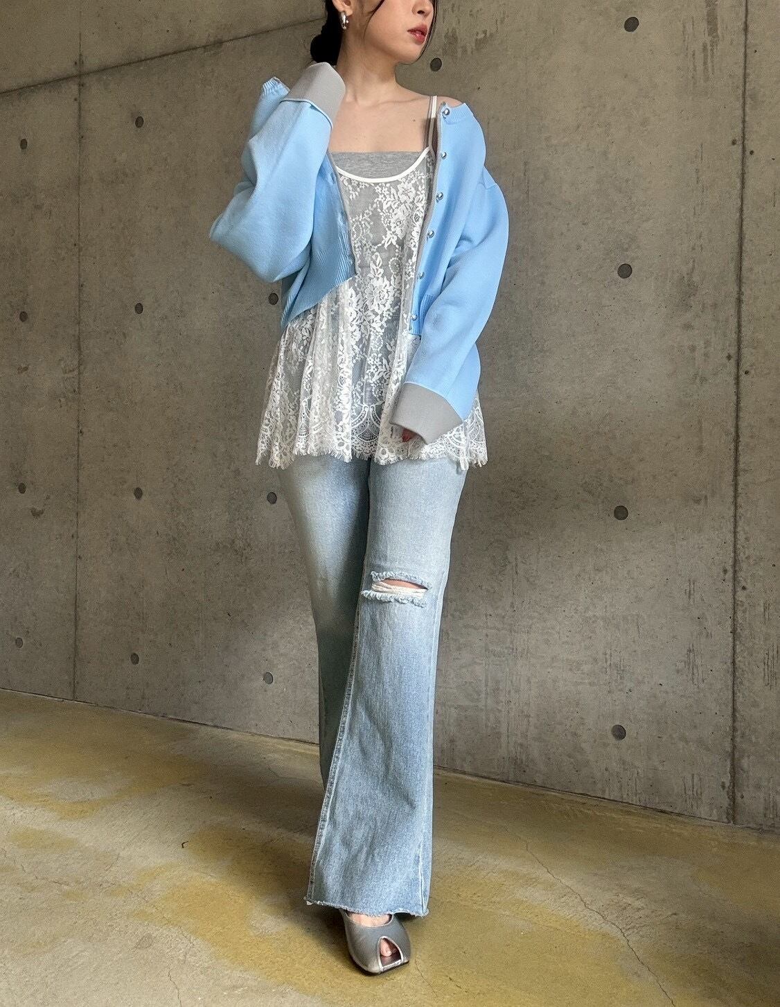 レーストップスやワンピースとのレイヤードはもちろん、