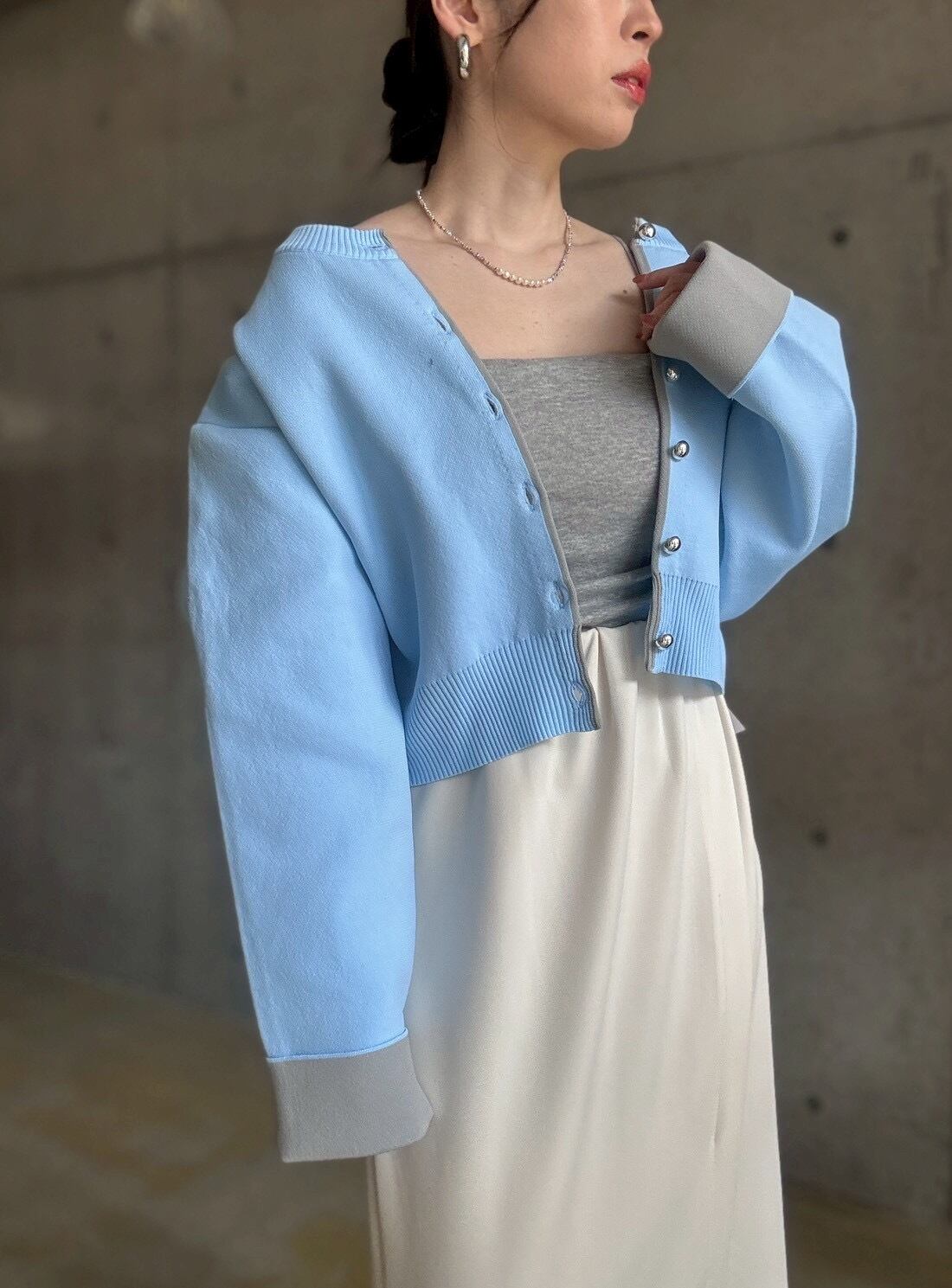 【4/11 21:00〜】シルバーボタン配色スポンジニットカーディガン【ブルー】