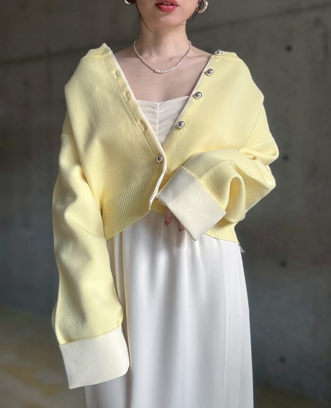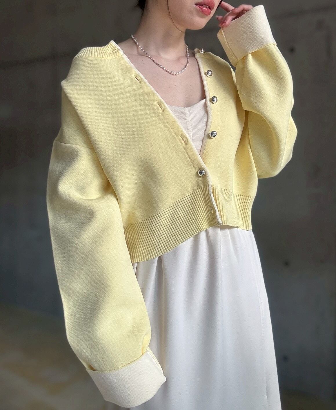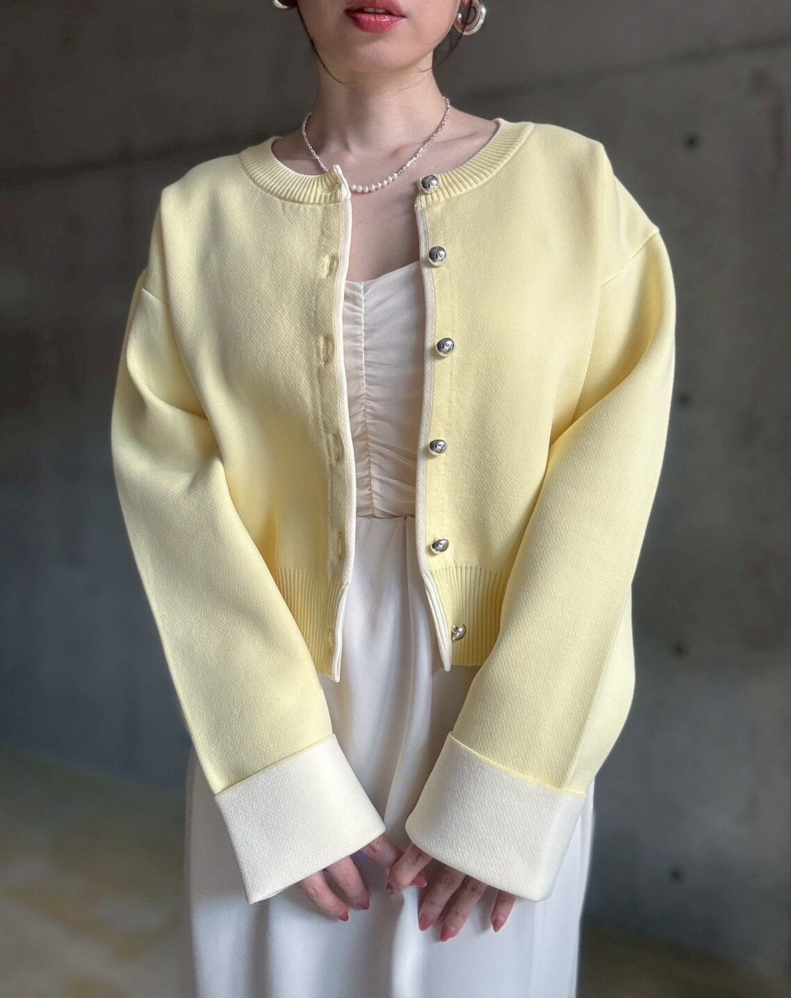 【4/11 21:00〜】シルバーボタン配色スポンジニットカーディガン【イエロー】