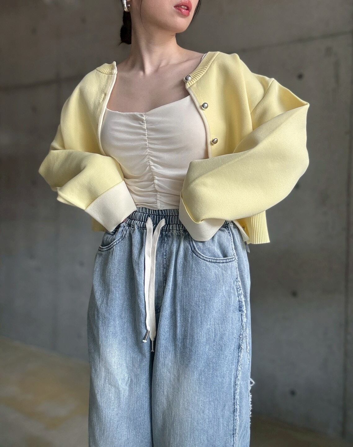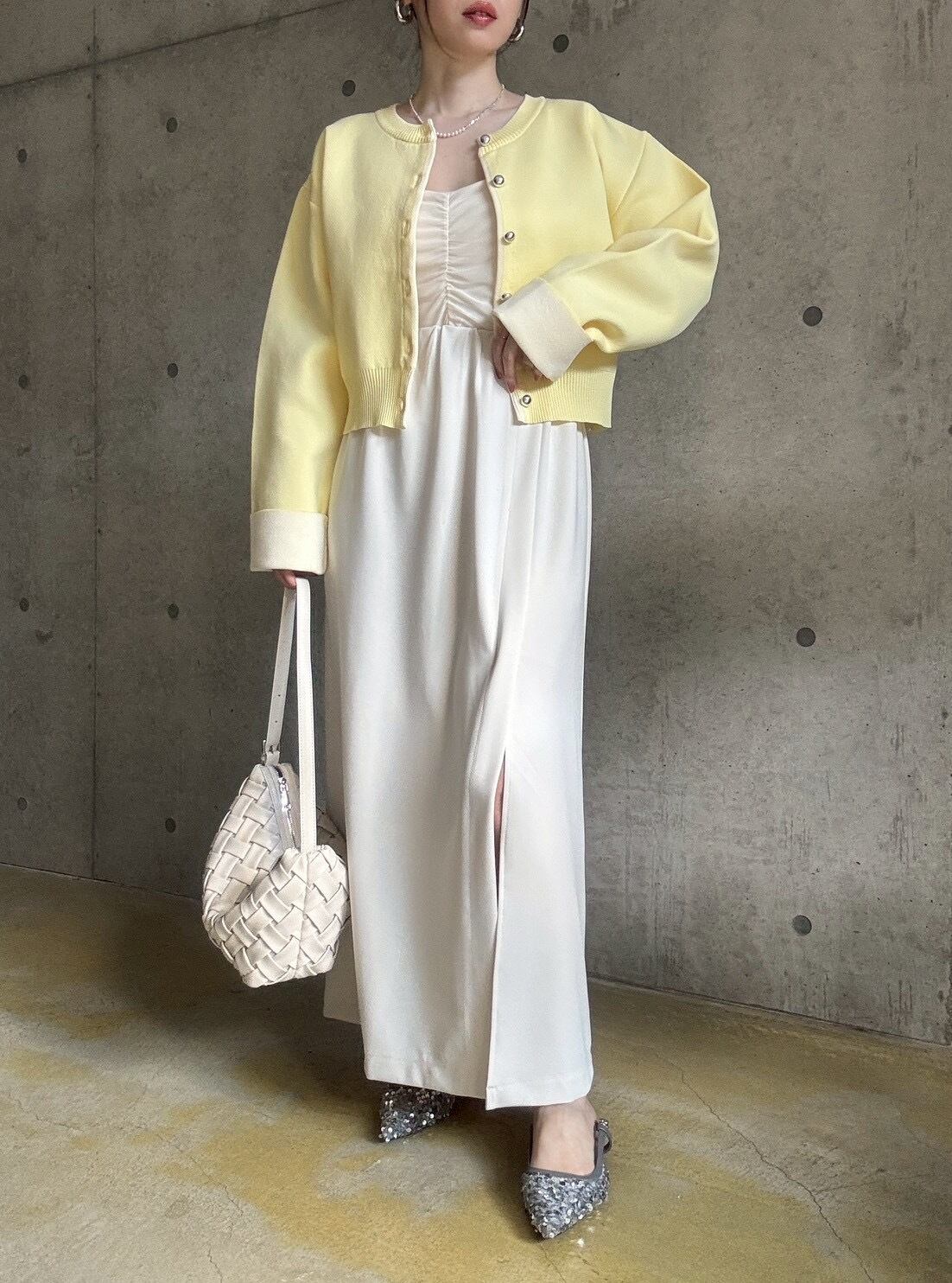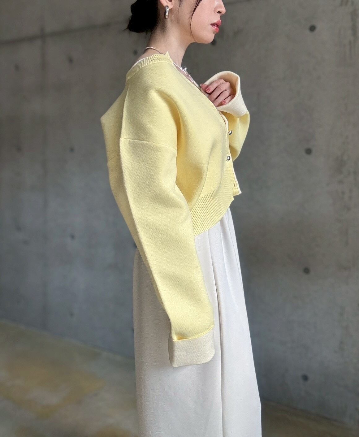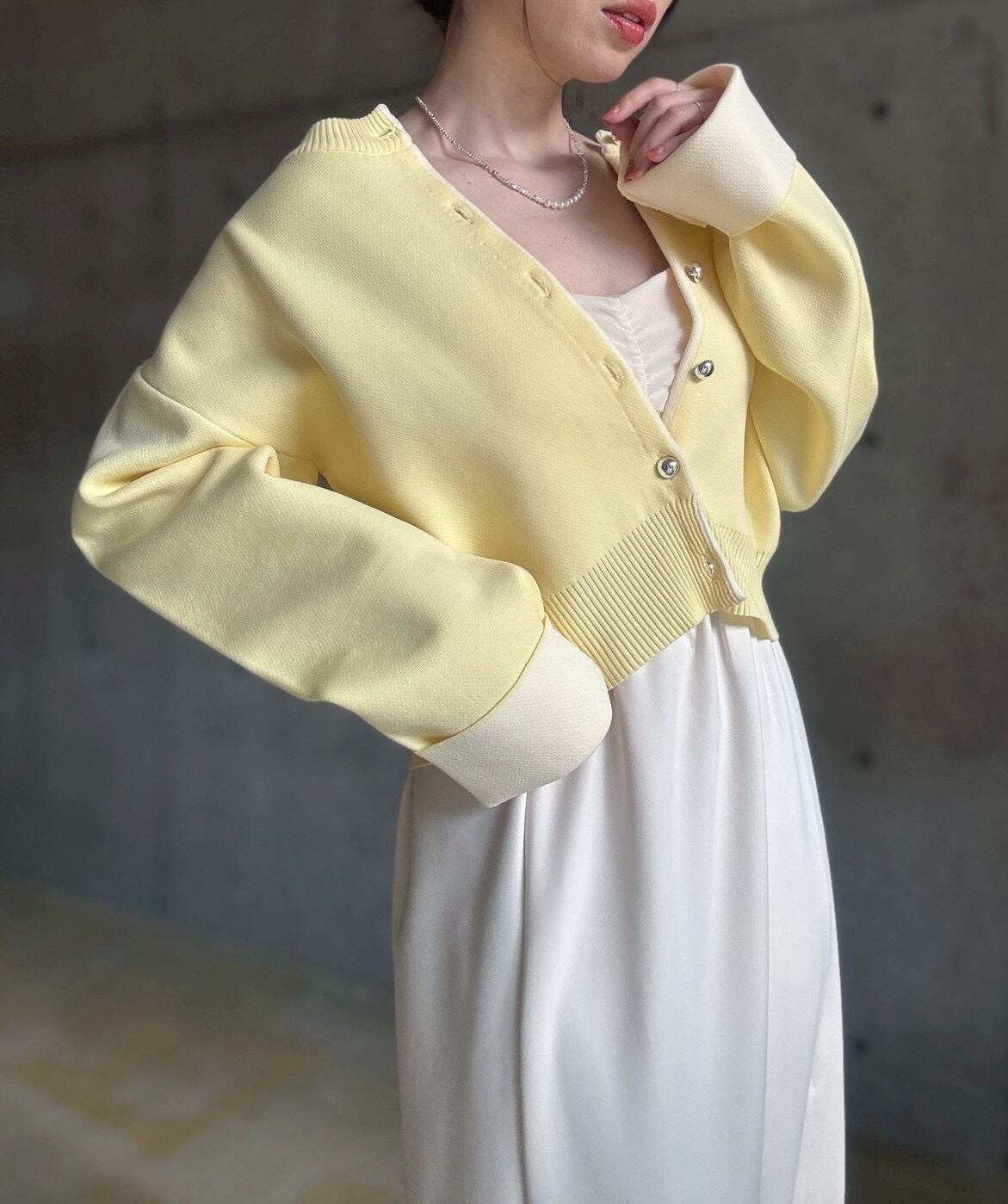 【4/11 21:00〜】シルバーボタン配色スポンジニットカーディガン【イエロー】