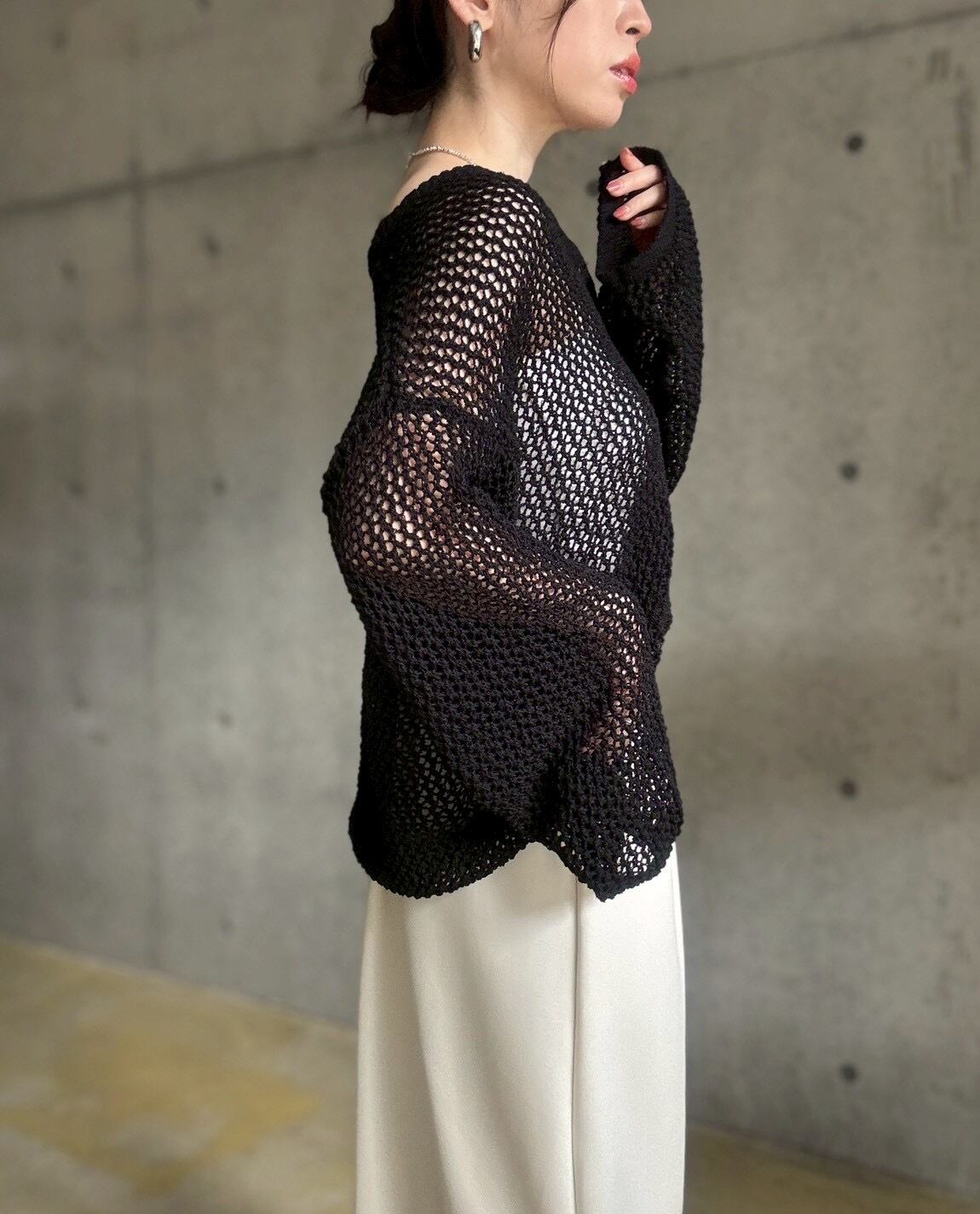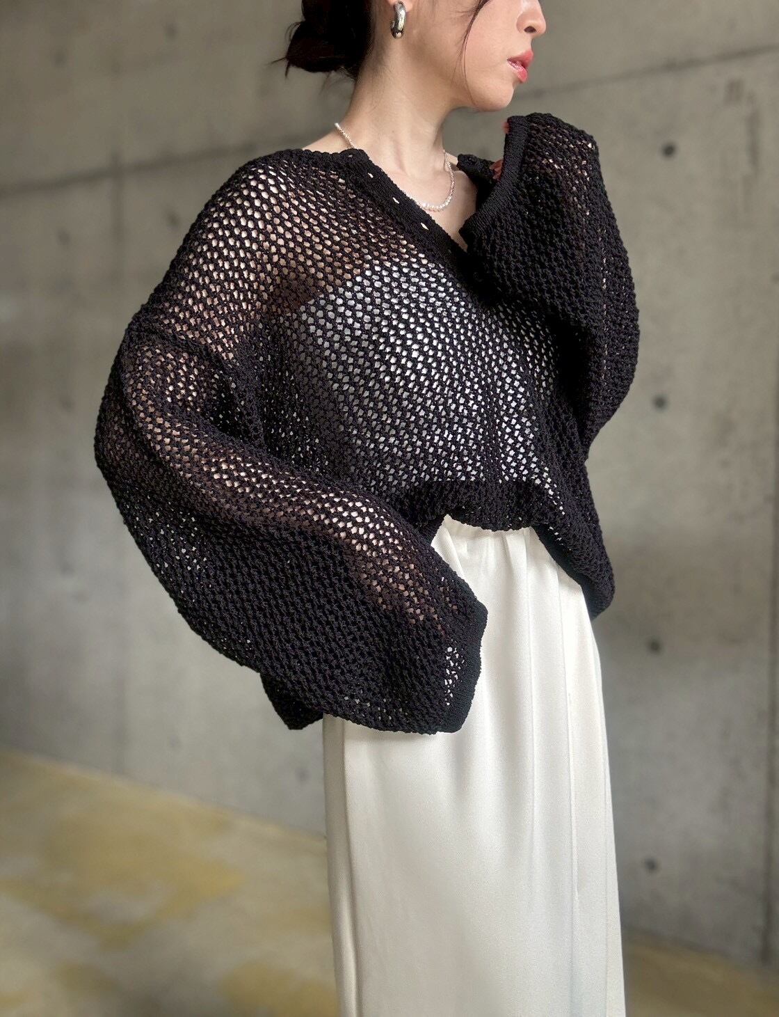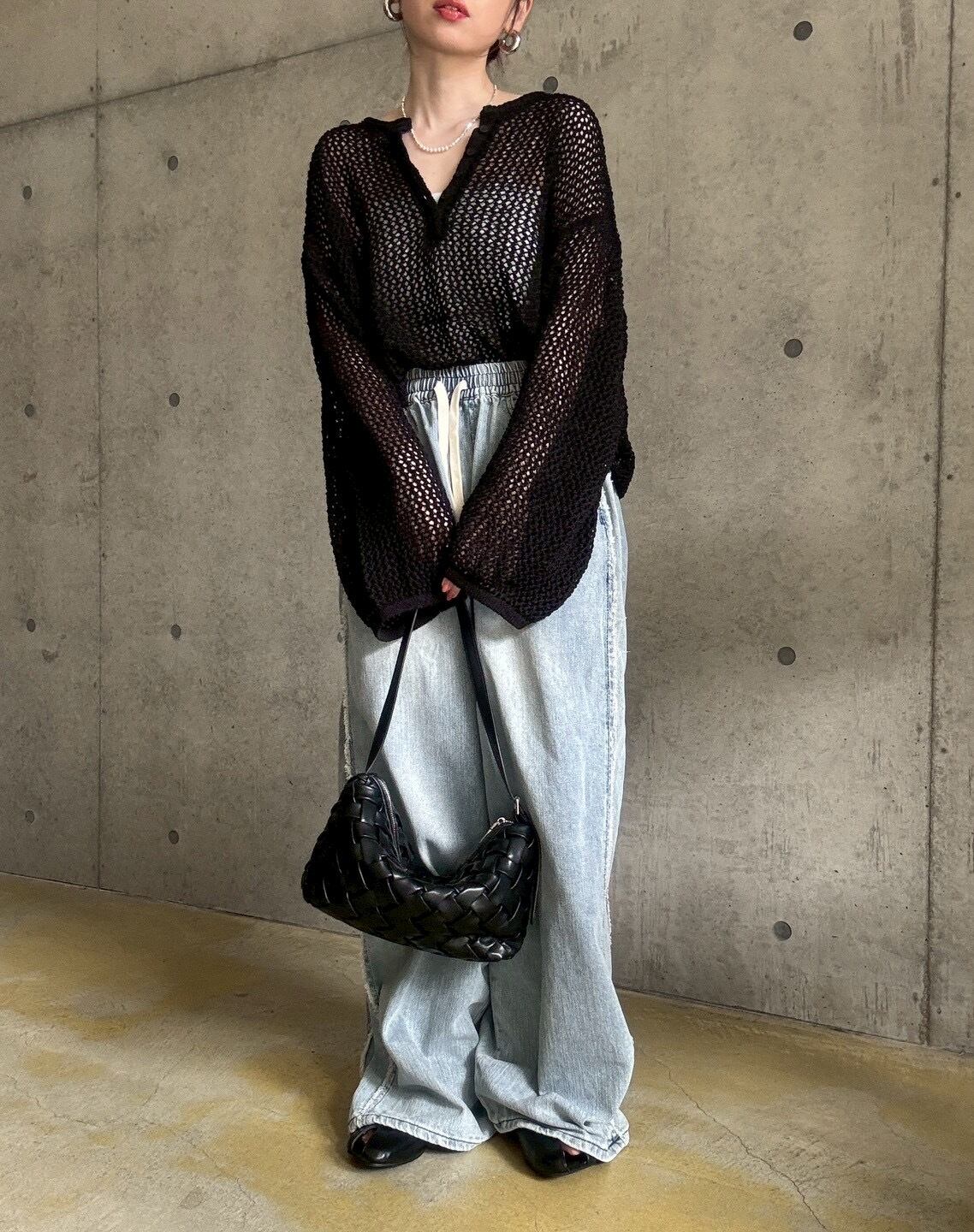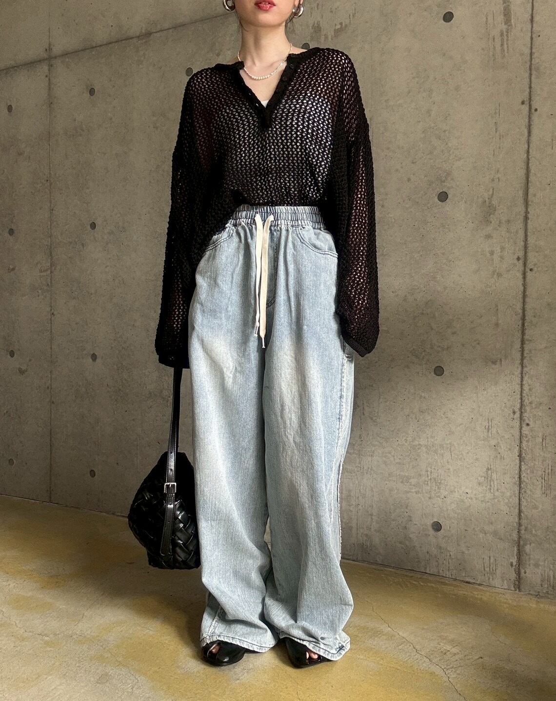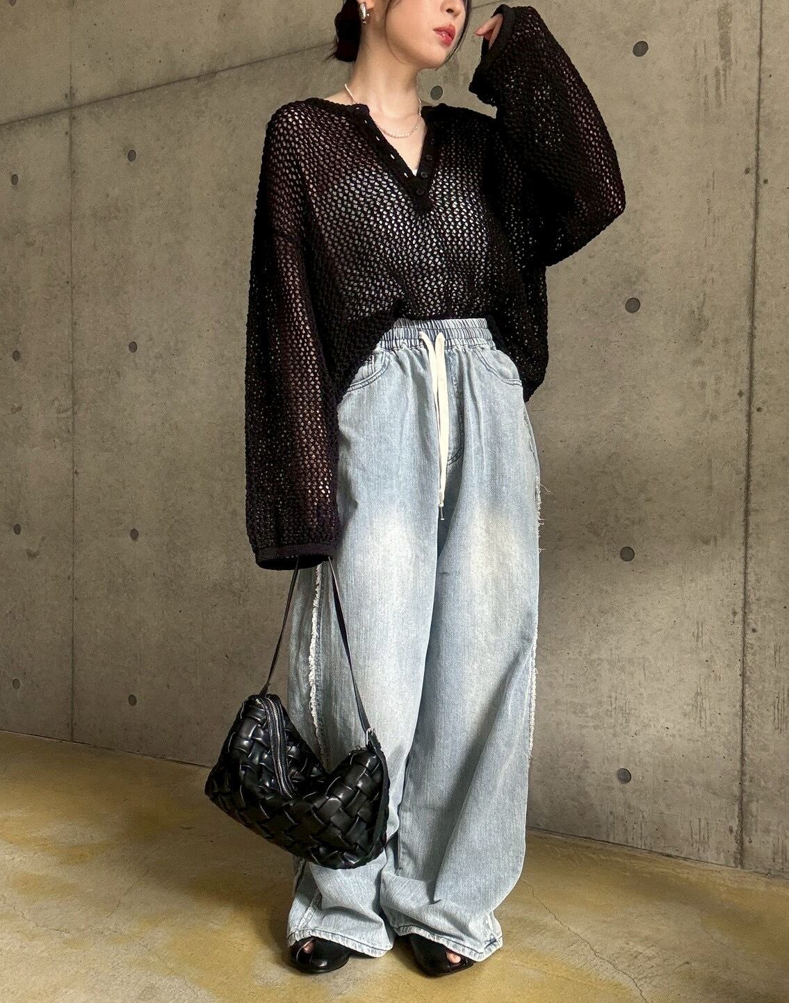 ヘンリーネックとメッシュ編みがトレンド感のある軽やかな印象に✨