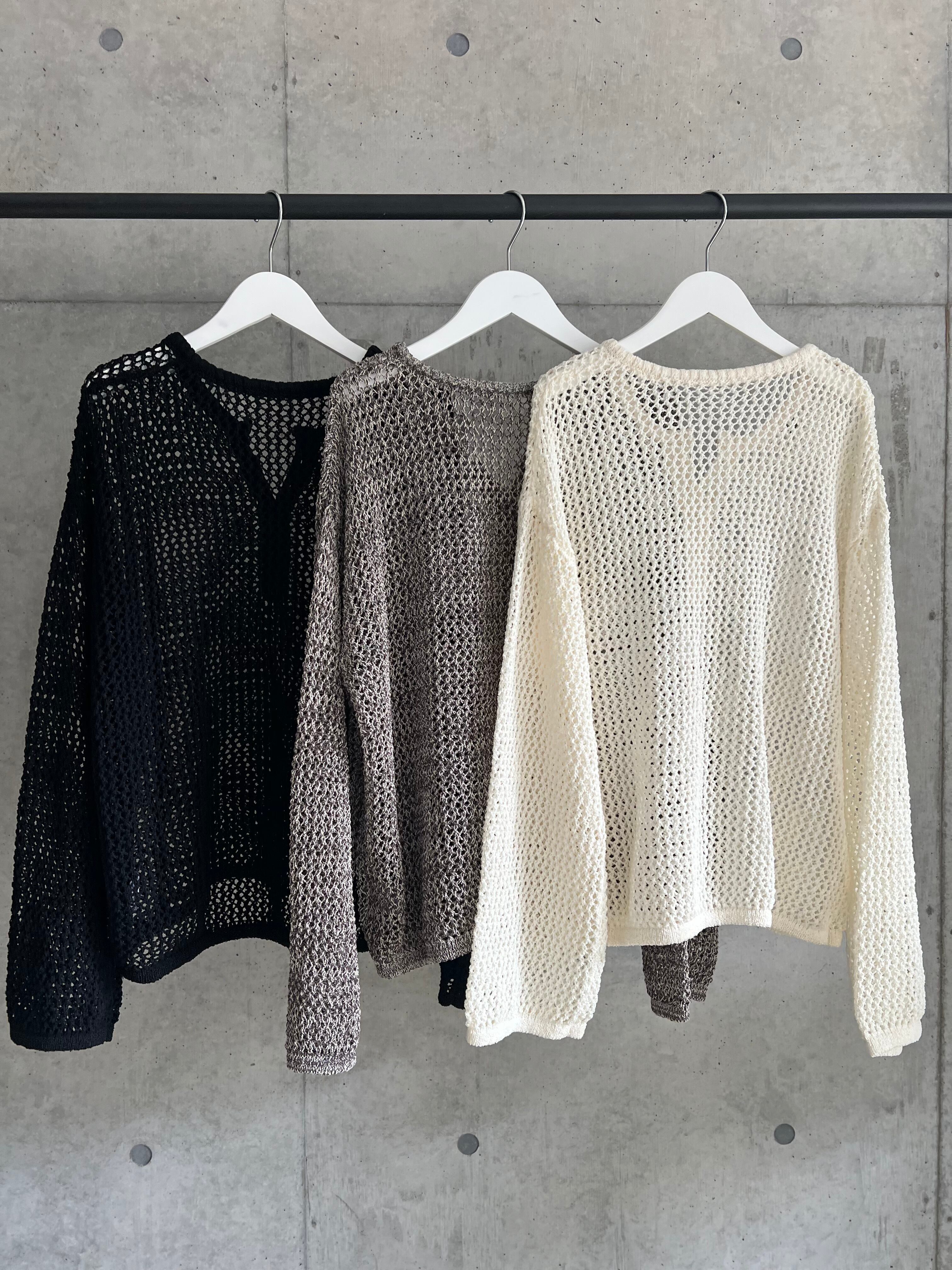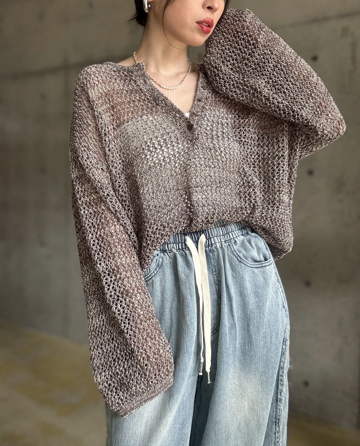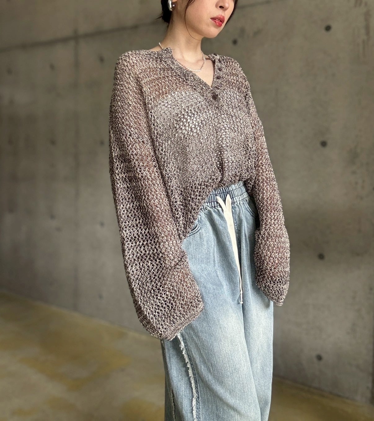 【4/11 21:00〜】メッシュ編みヘンリーネックプルオーバー【ブラウン】