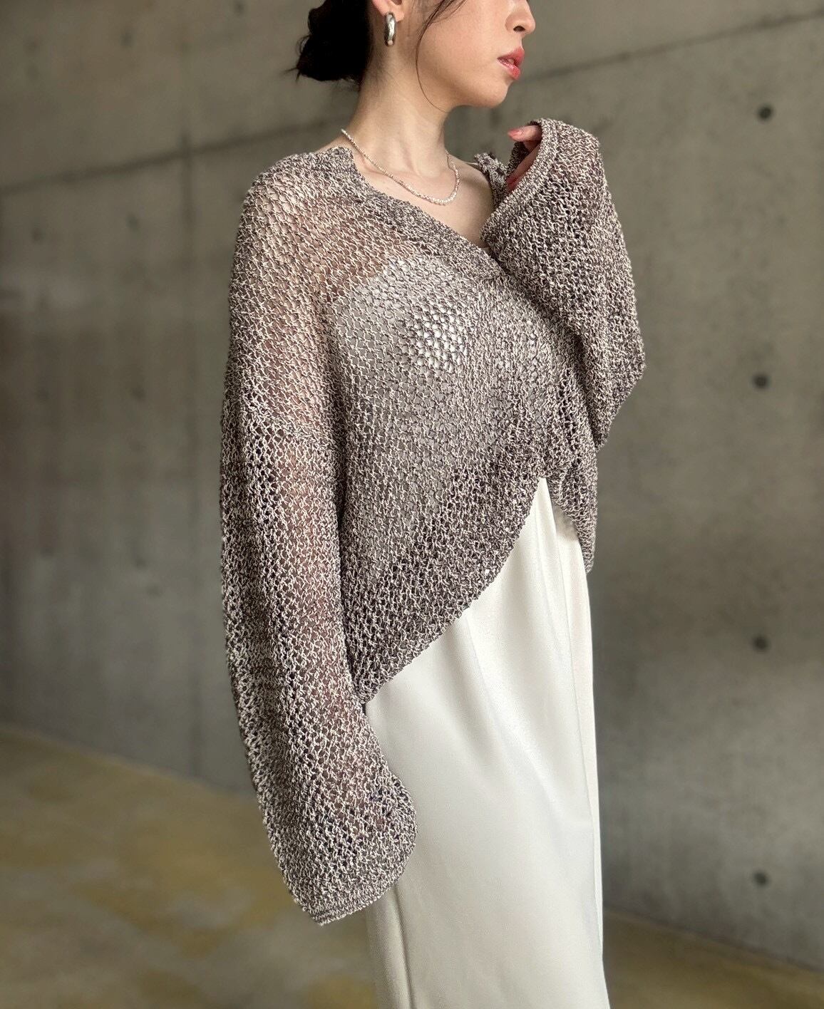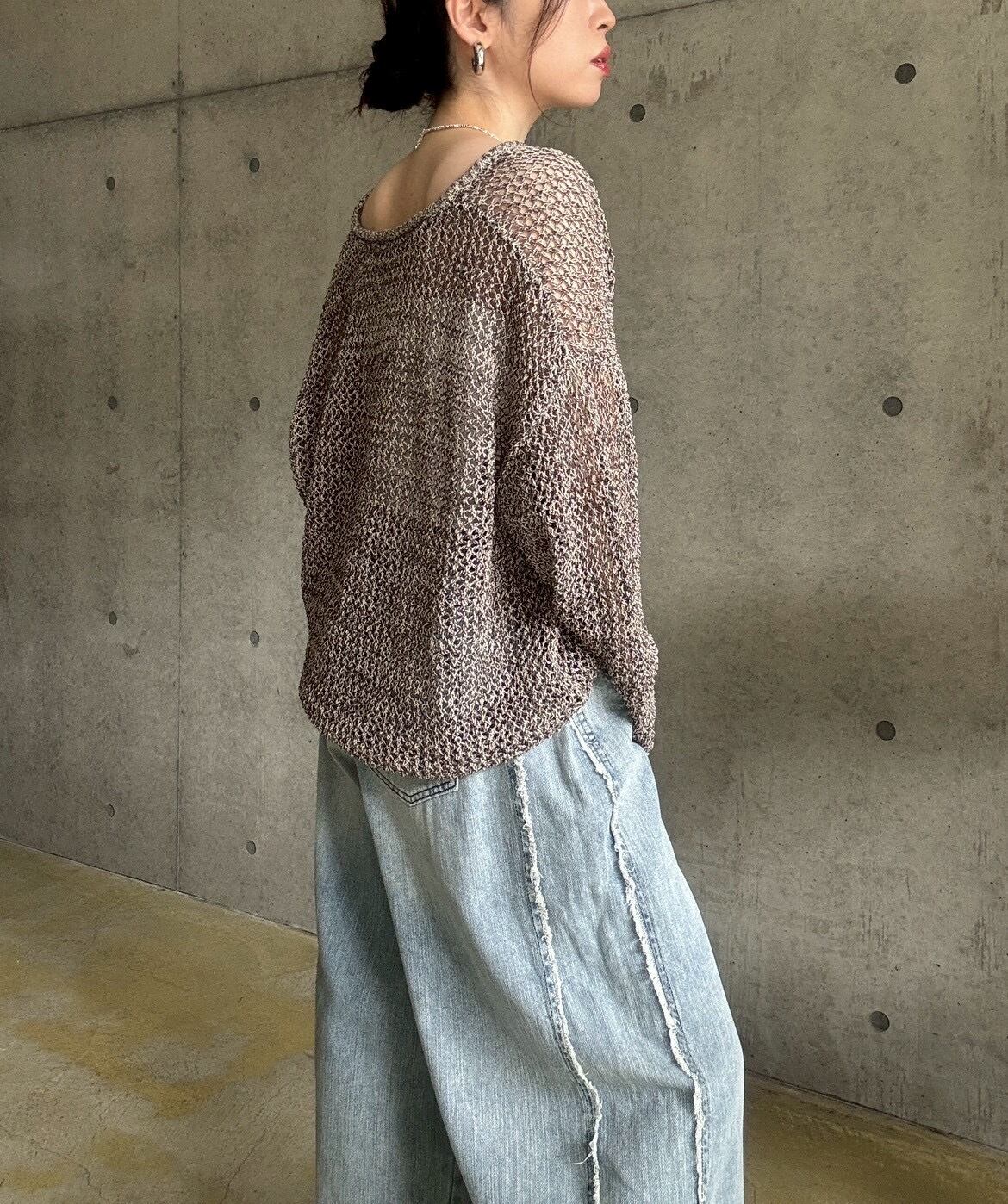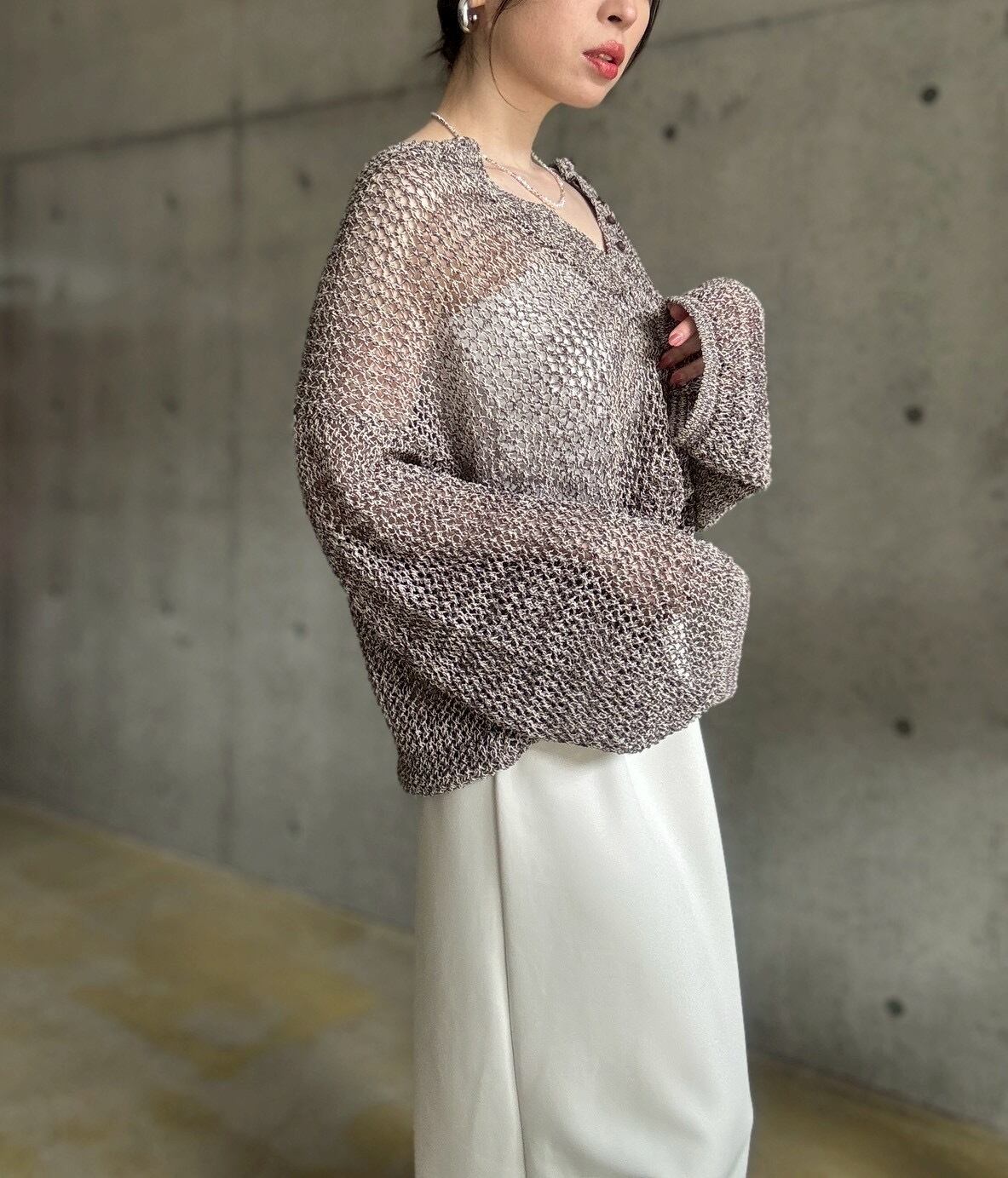 【4/11 21:00〜】メッシュ編みヘンリーネックプルオーバー【ブラウン】