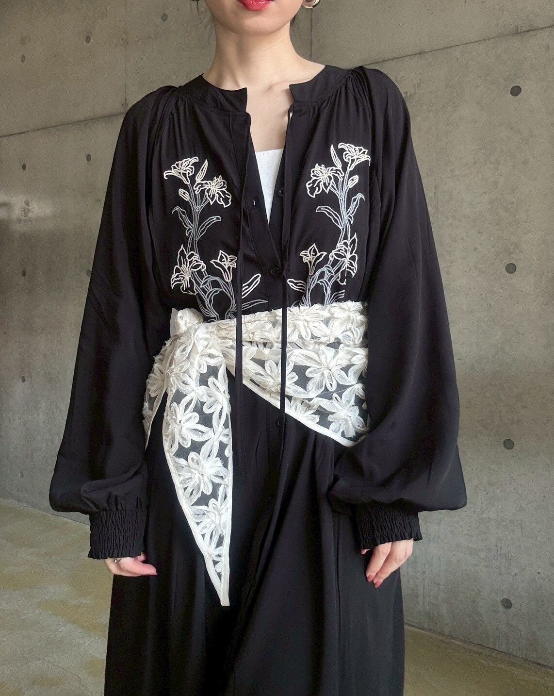 主張し過ぎない落ち着いた雰囲気のフラワー刺繍が、いつものスタイリングにさり気ないアクセントをプラス♪