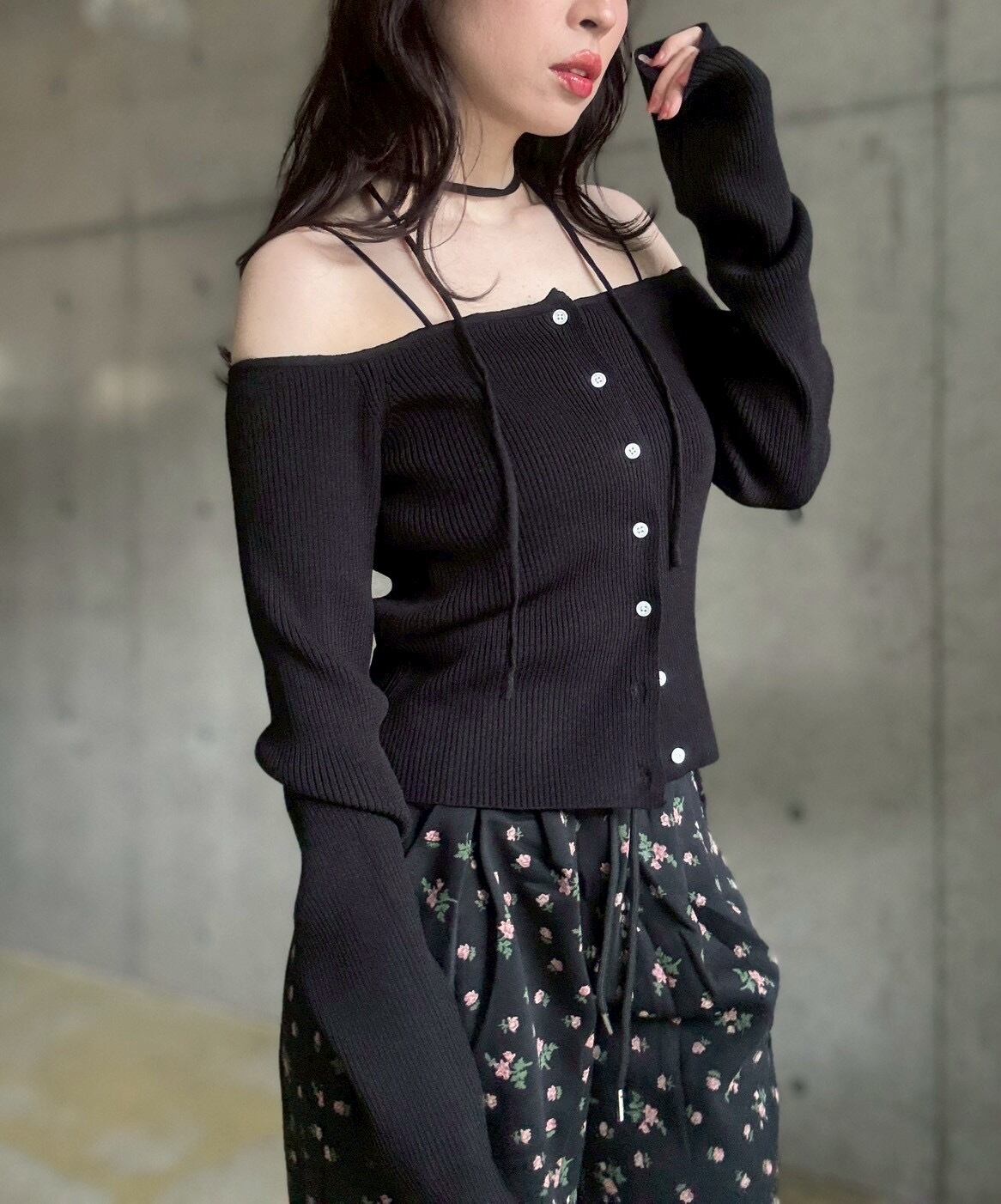 珍しいオフショルデザインで、カーディガンなのに羽織っぽくなく、女性らしいこなれ感のあるスタイリングが叶います✨