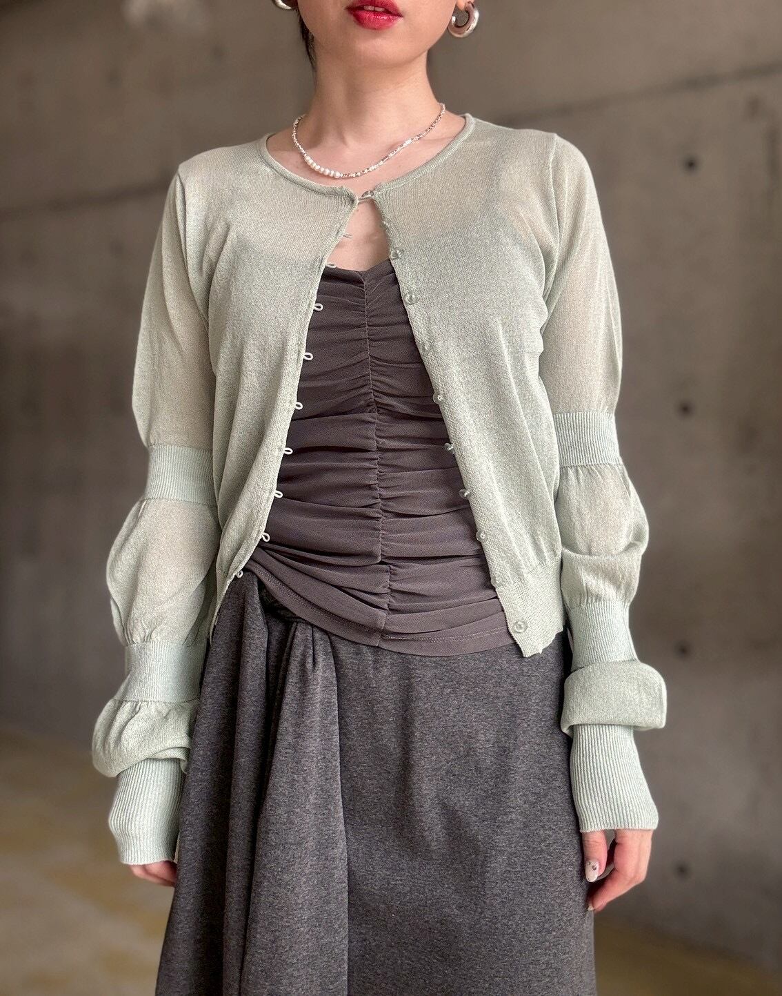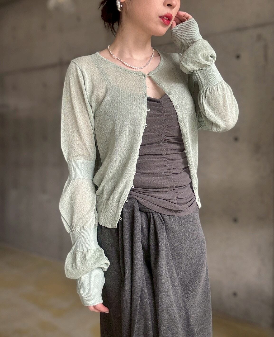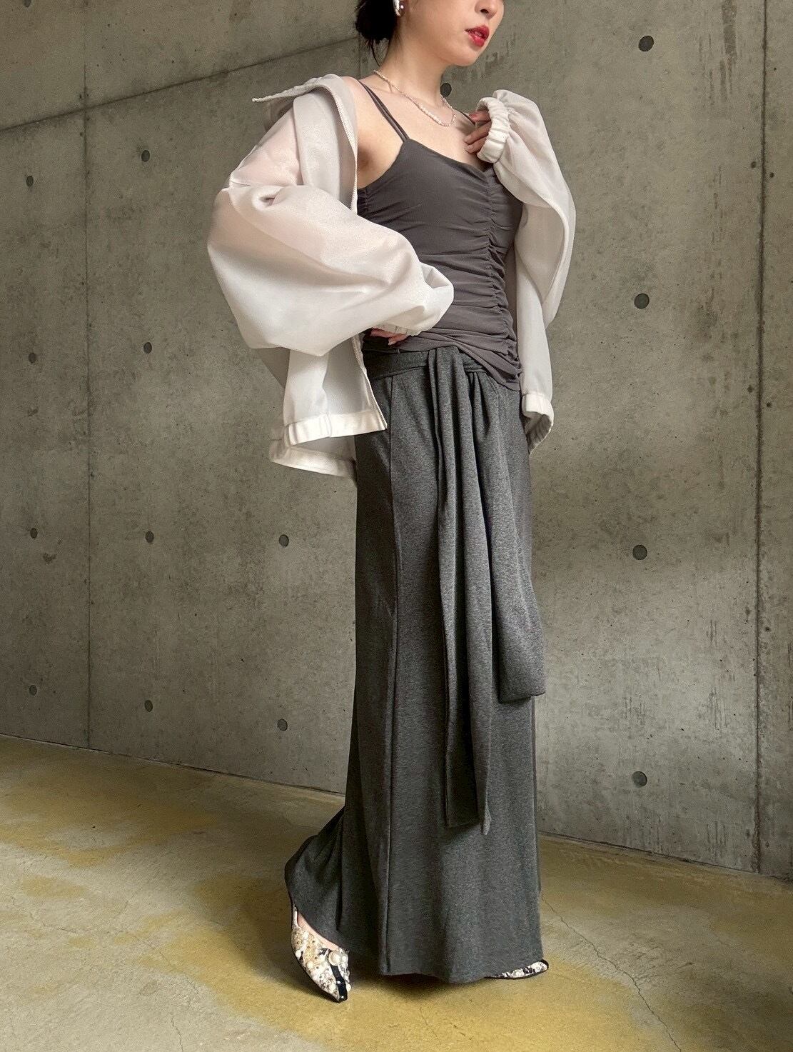 ジャケットやカーディガンのインナーに◎シャーリングの凹凸感が、マニッシュな装いに女性らしいエッセンスを添えてくれます✨
