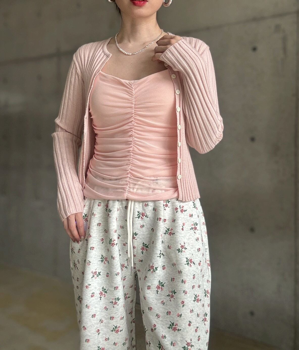 【4/25 21:00〜】カップ付きチュールレイヤードシャーリングキャミソール【ピンク】