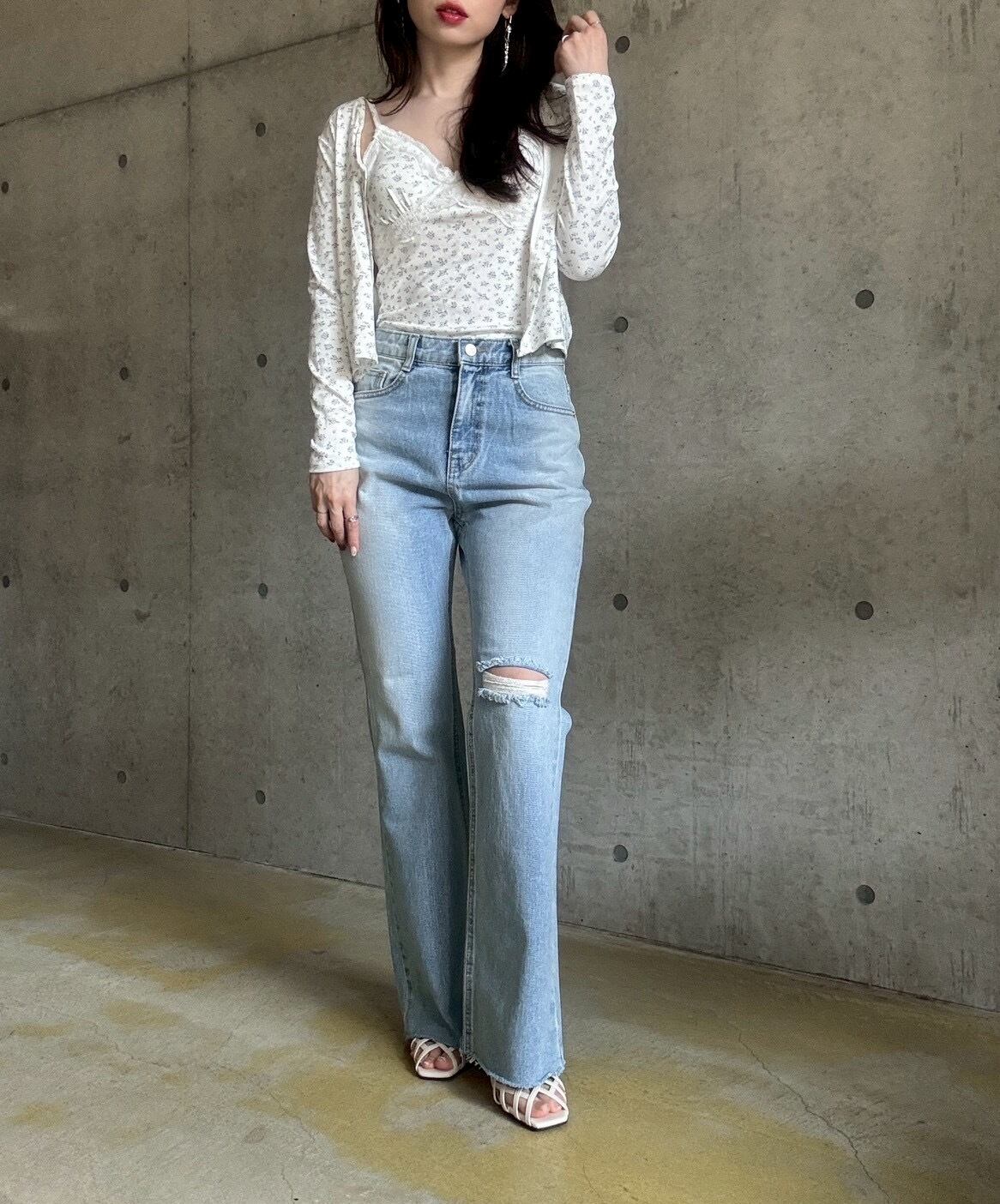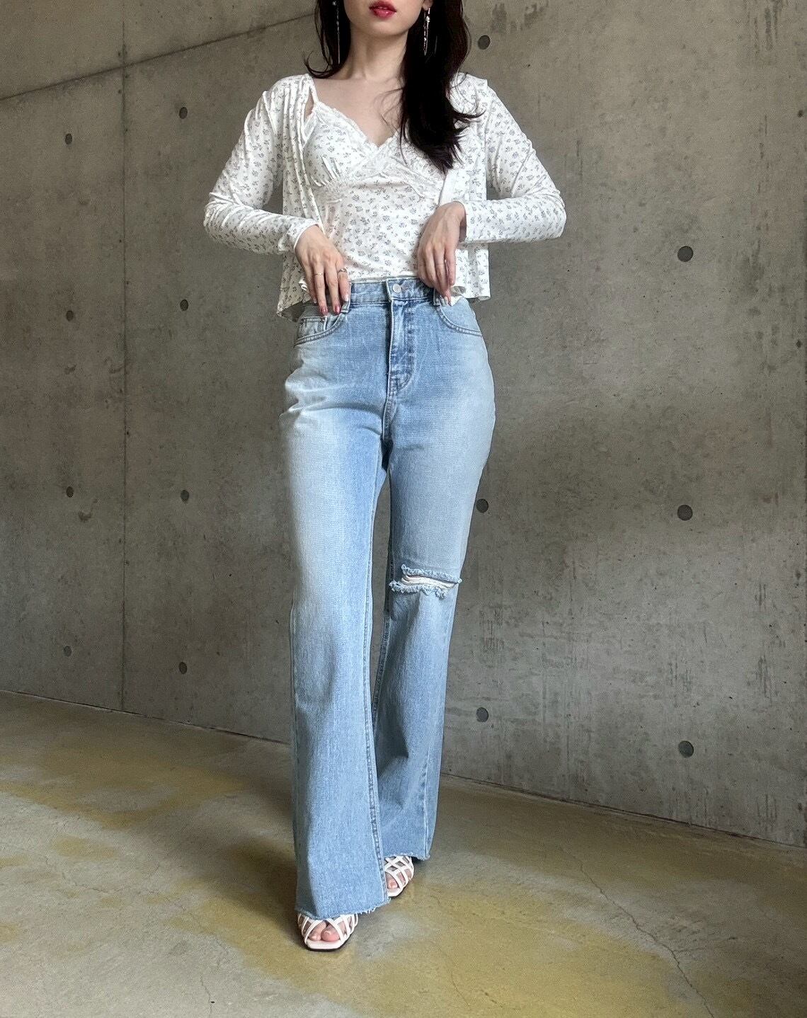 【4/25 21:00〜】カットソー小花柄キャミソール+カーディガンset【ホワイト】