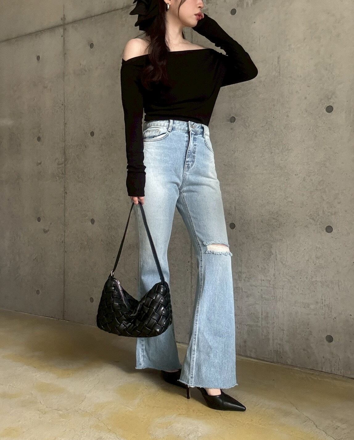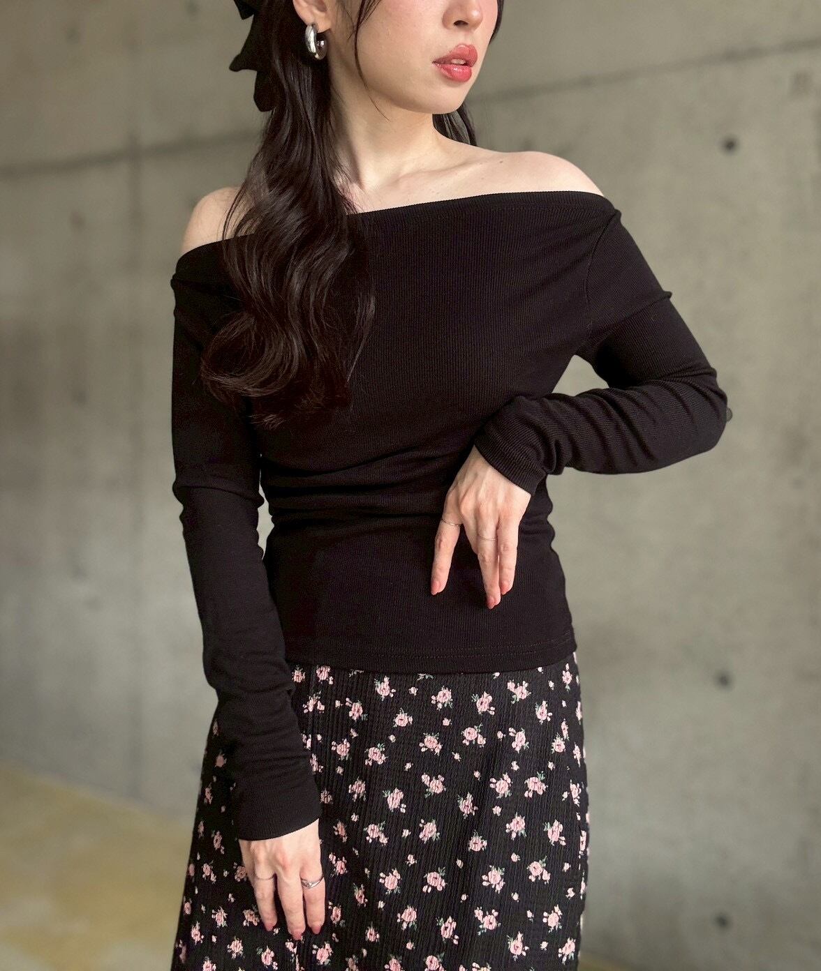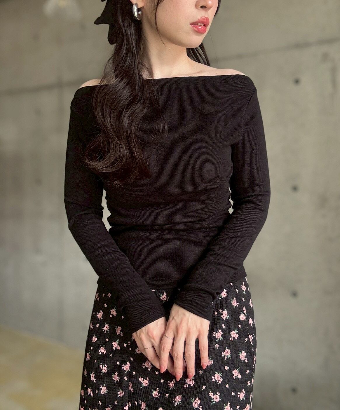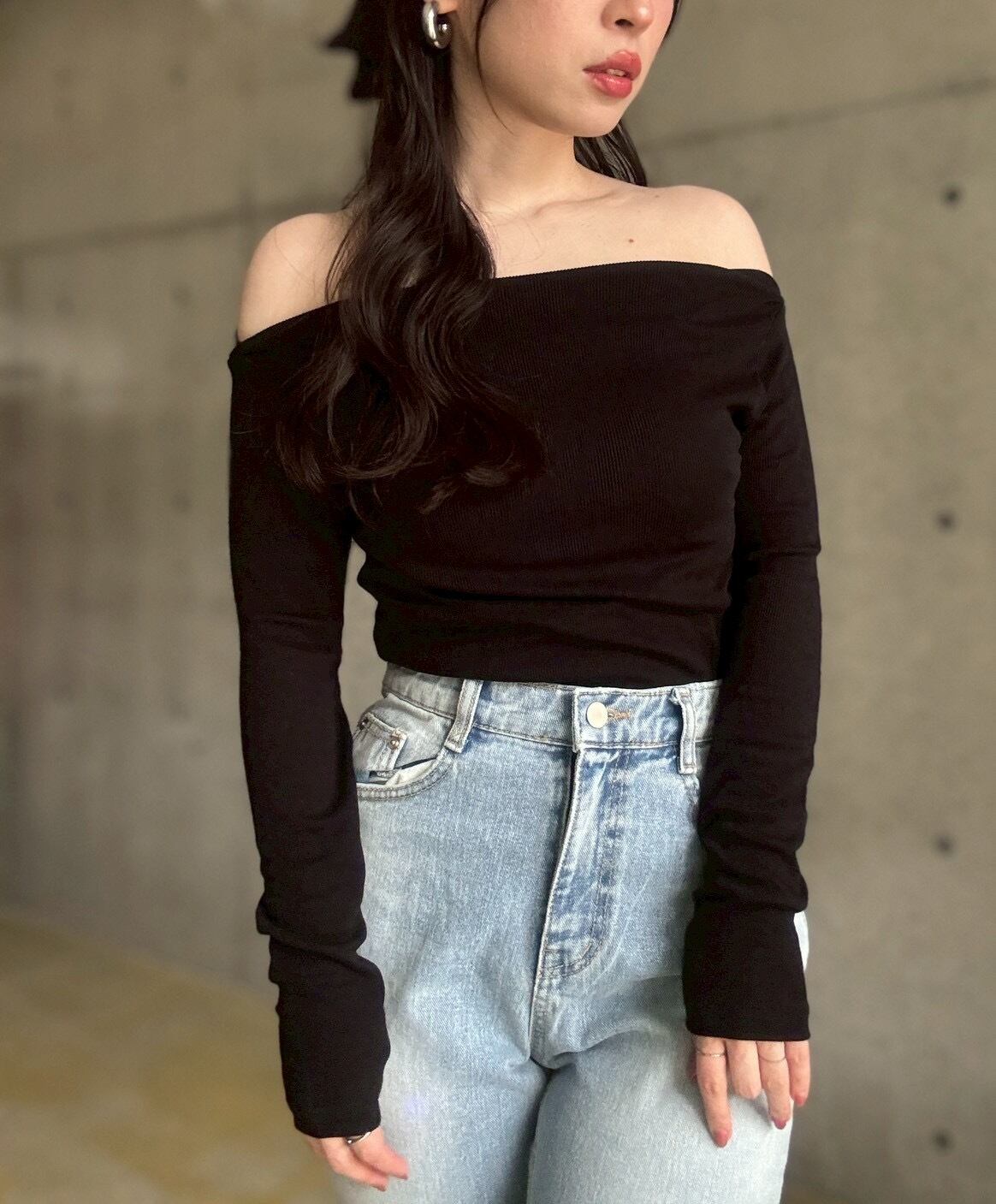 そのままボートネックとして、肩を落としてワンショル、オフショルとしても使える万能アイテム✨
