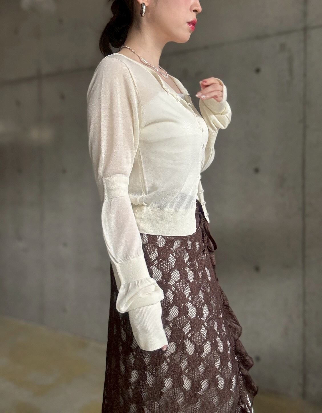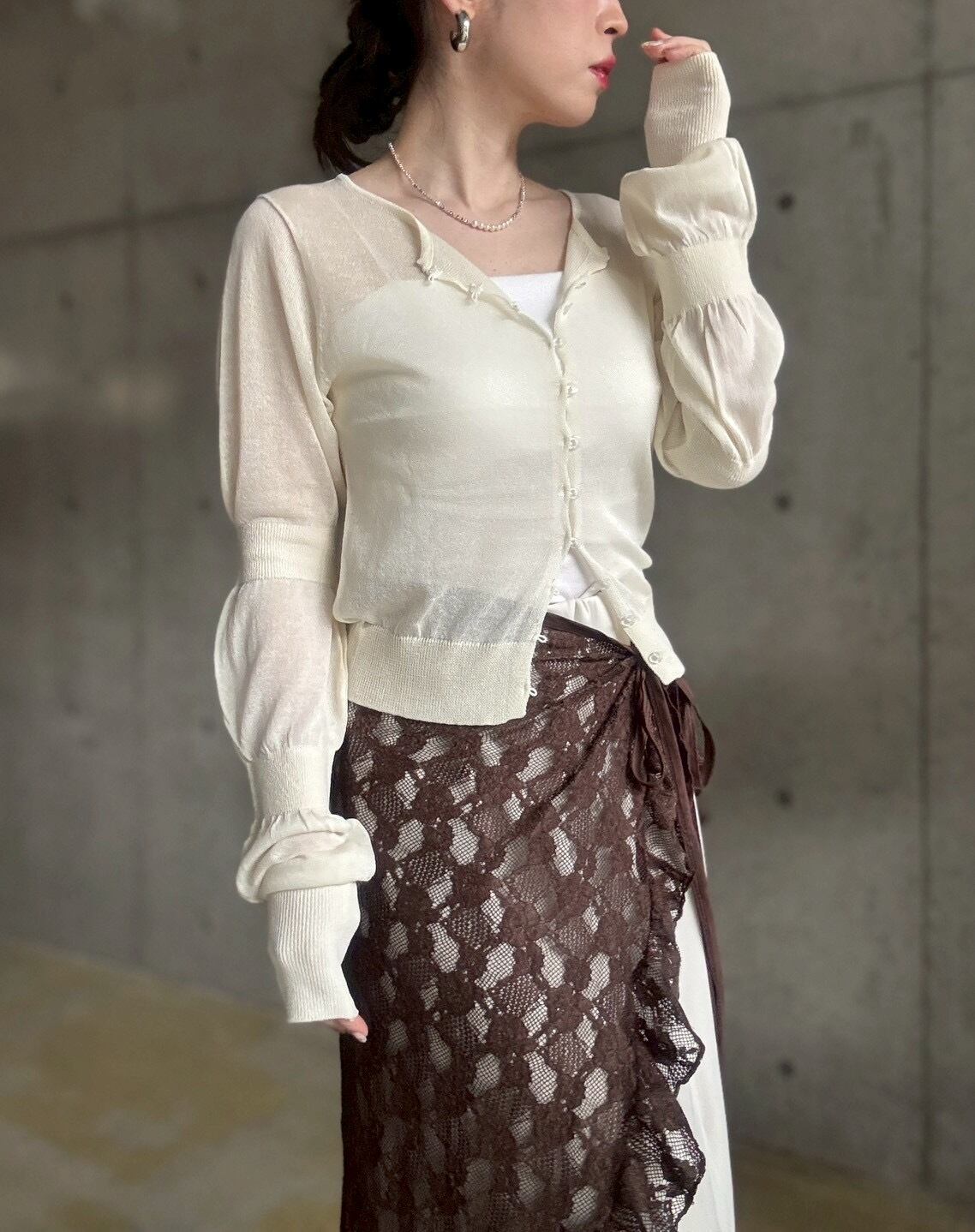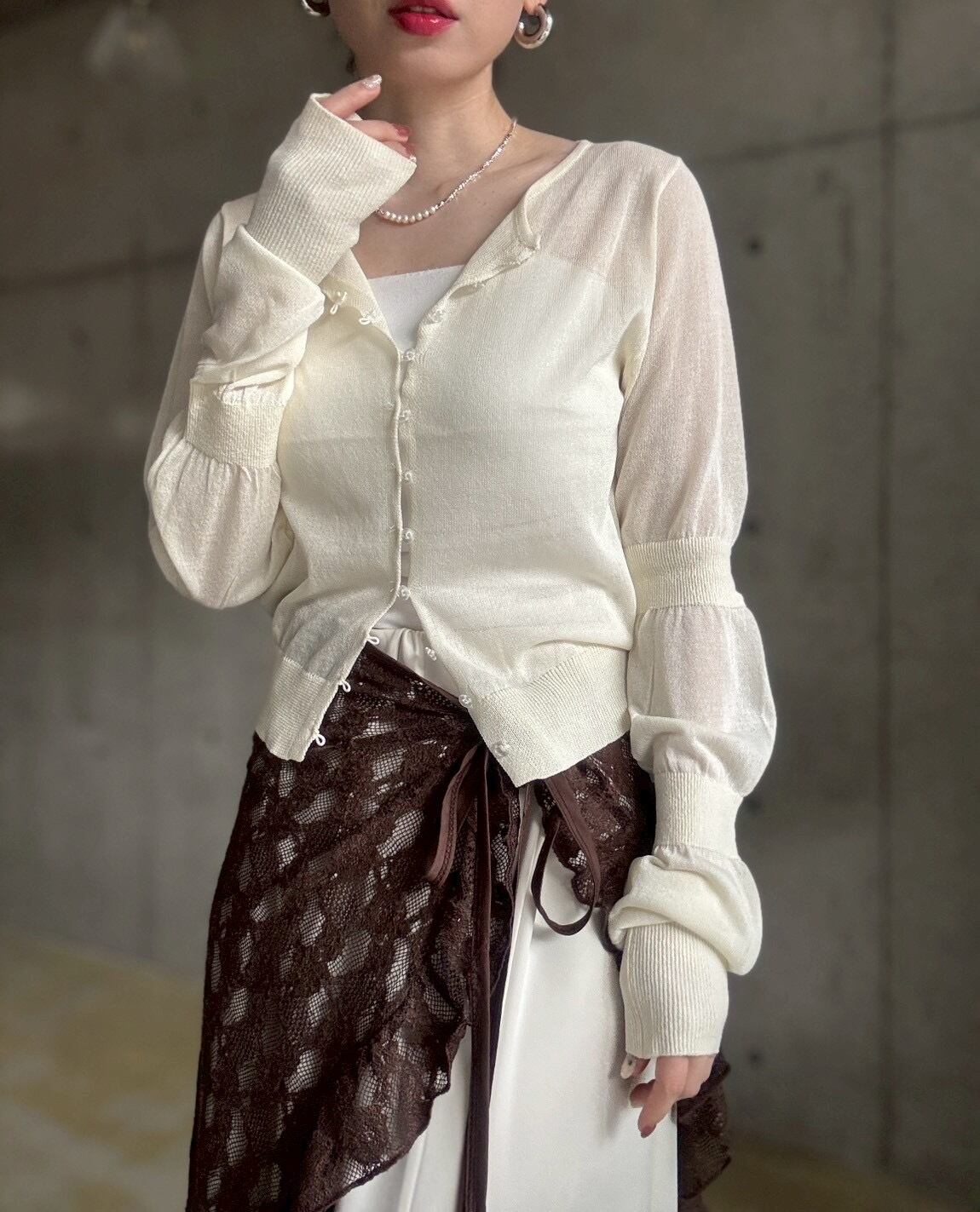 【4/25 21:00〜】ポコポコ袖シアーカーディガン【アイボリー】