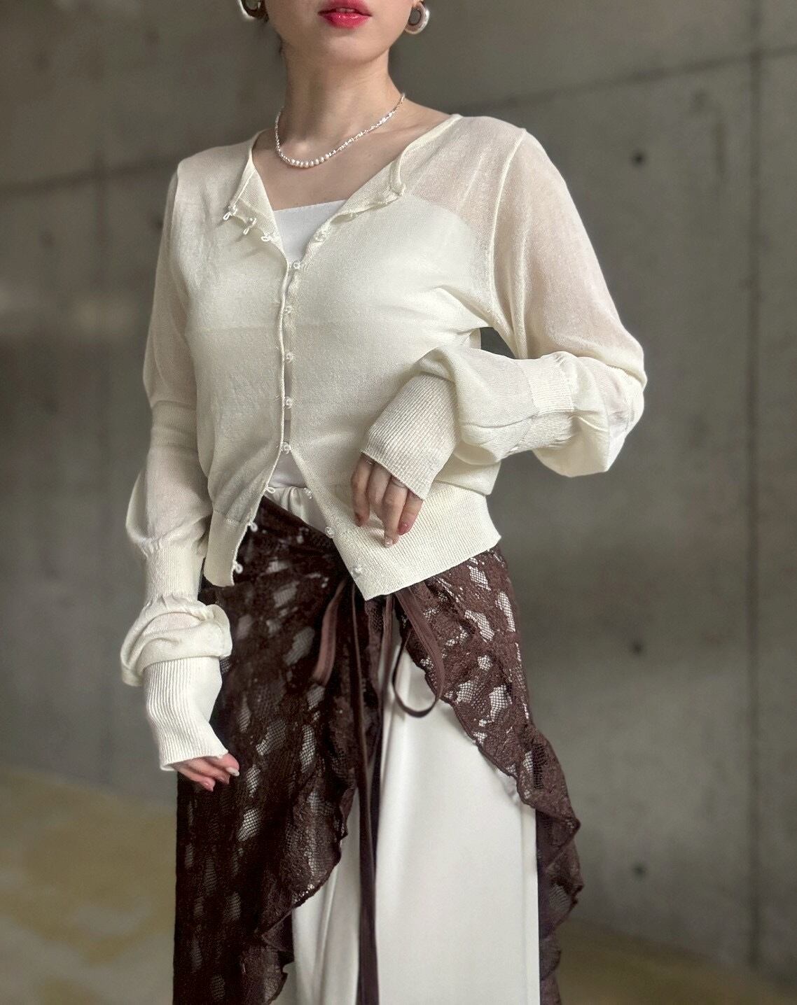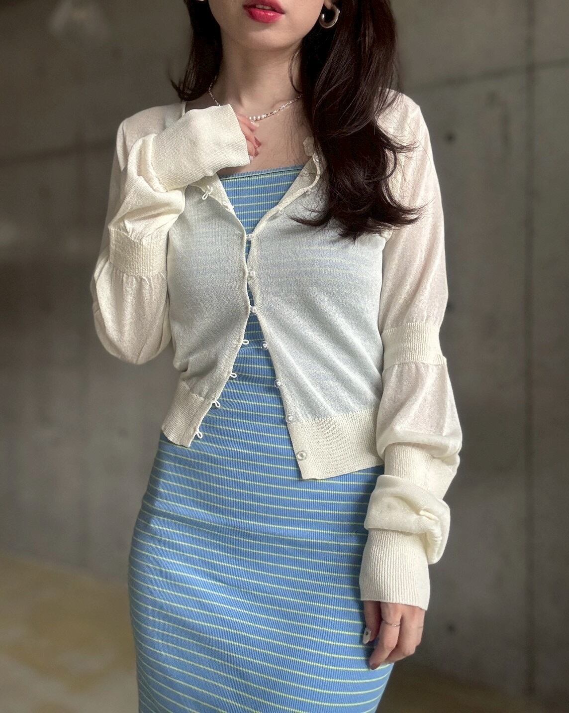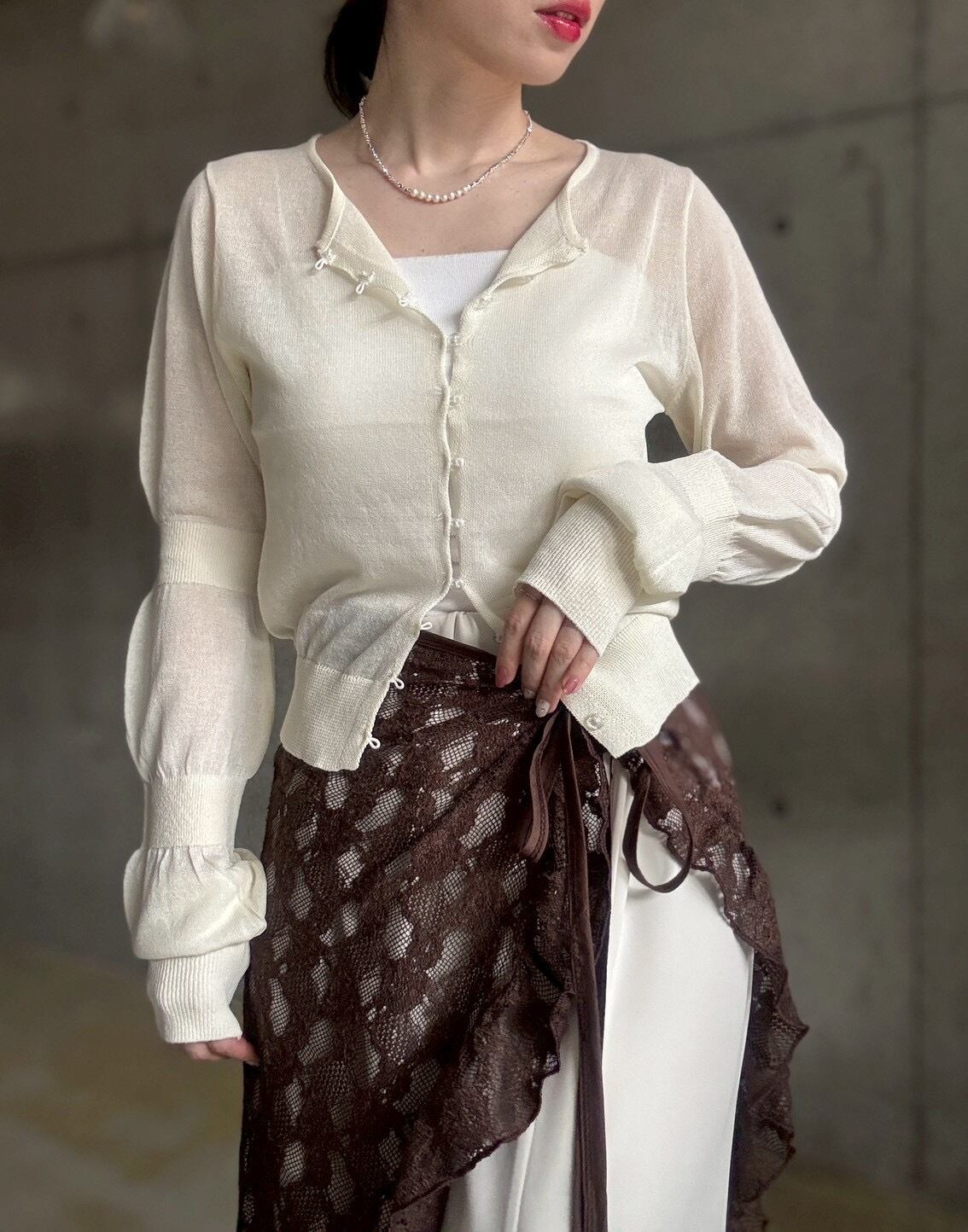 【4/25 21:00〜】ポコポコ袖シアーカーディガン【アイボリー】
