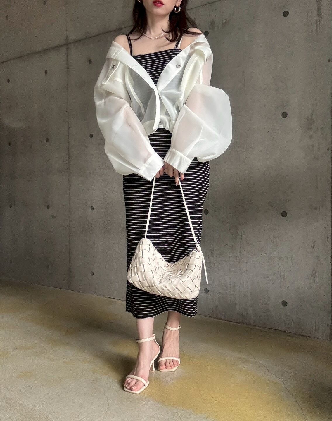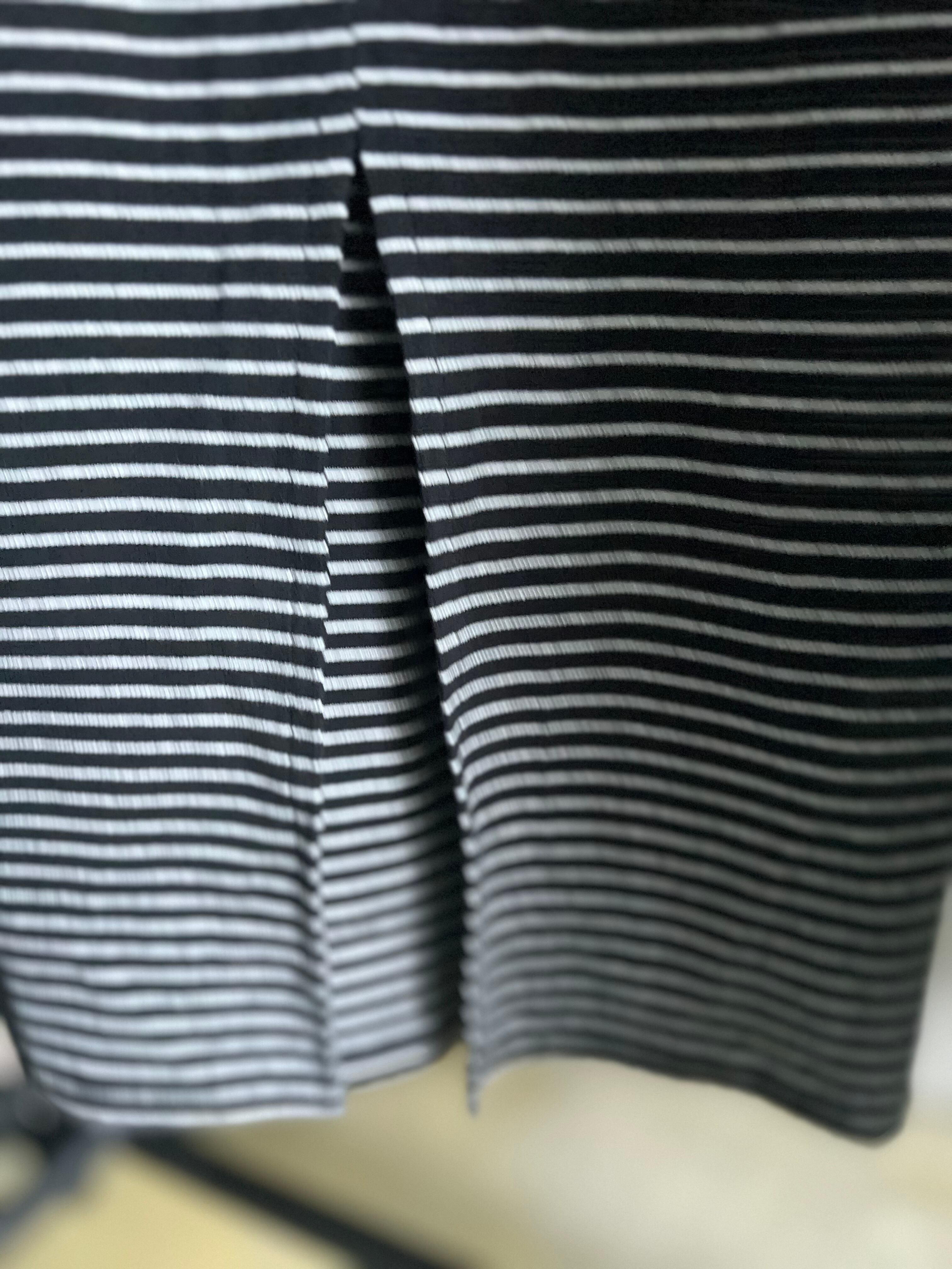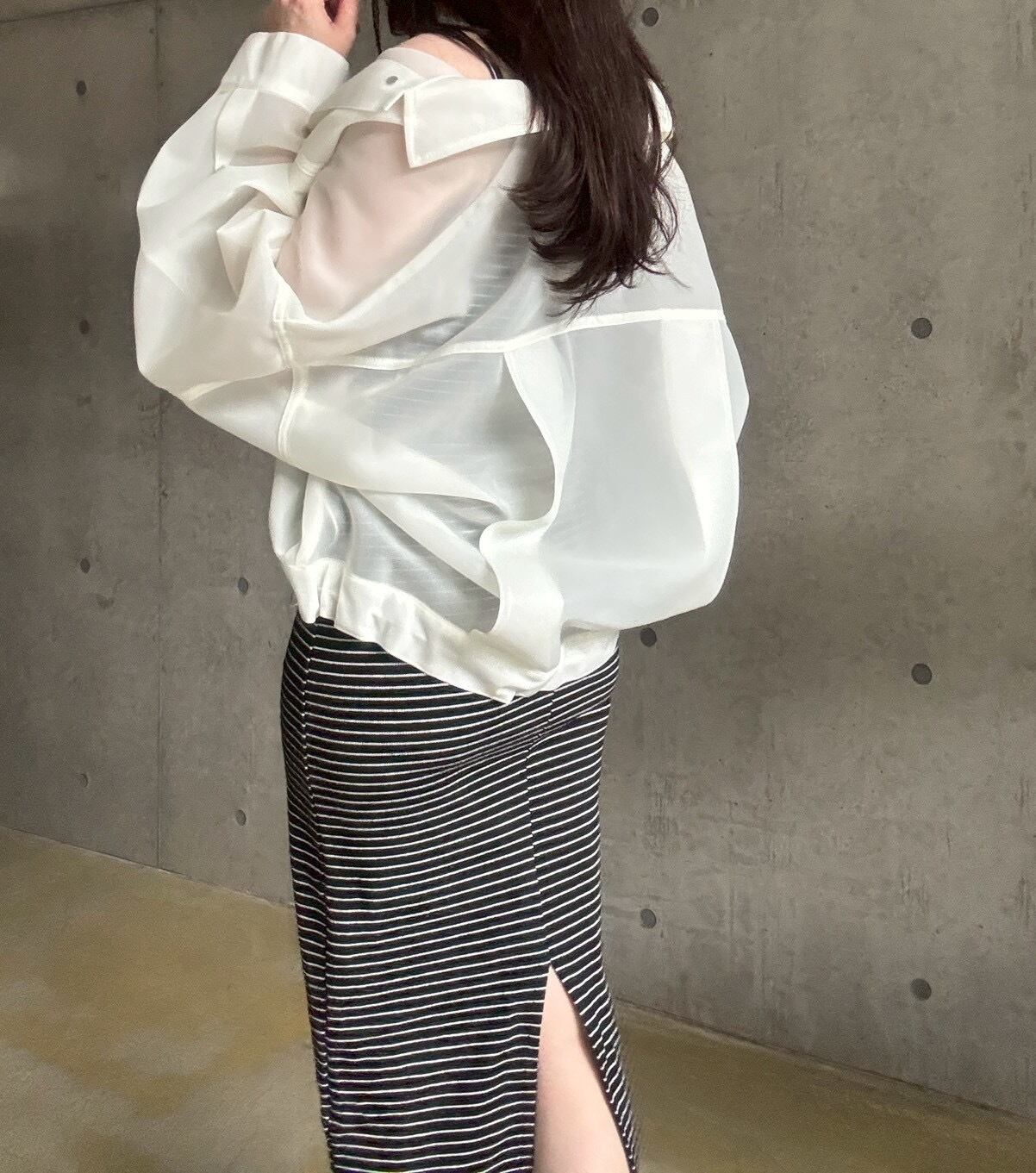 細めのボーダー柄がカジュアルになり過ぎず大人な雰囲気に✨