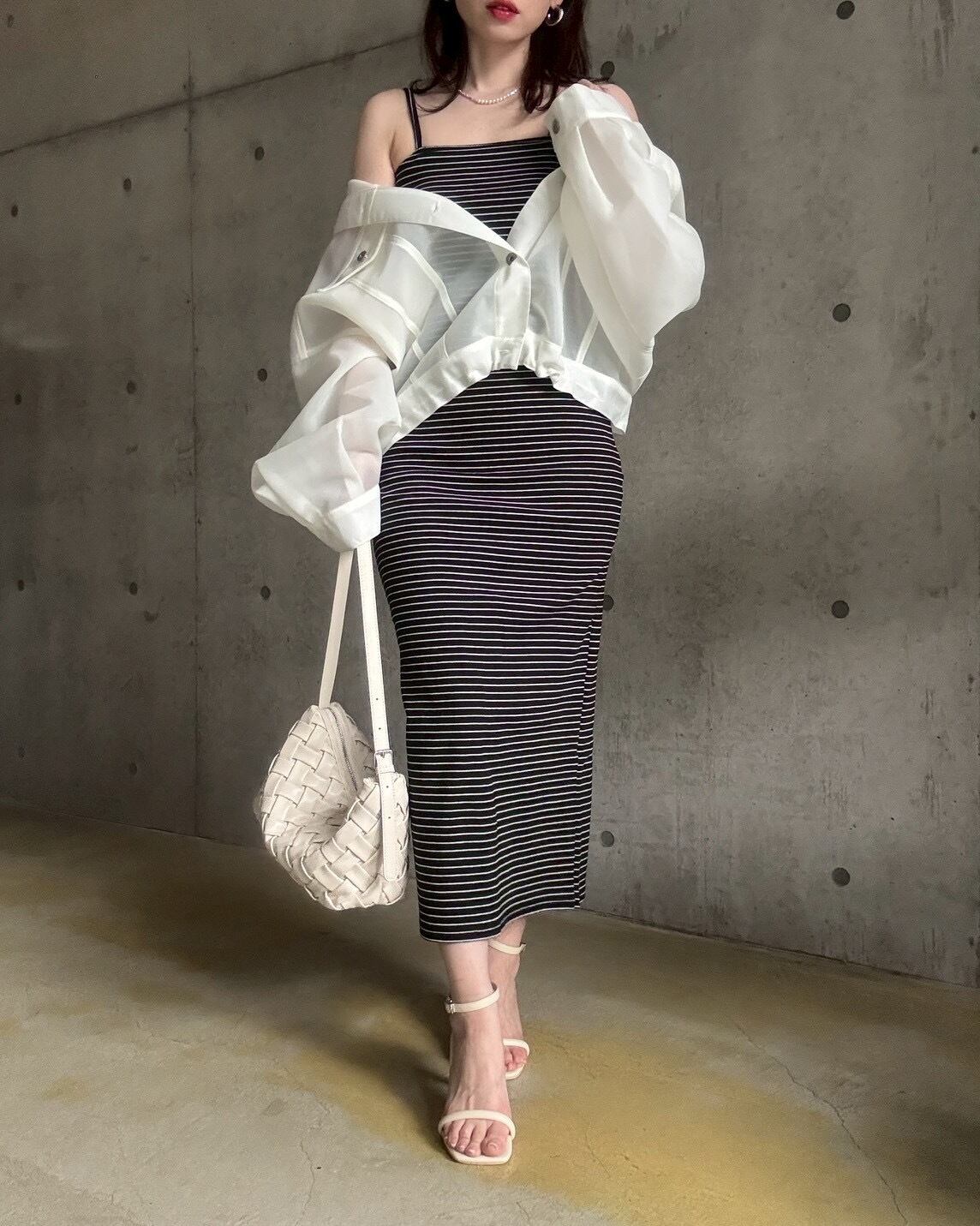 【4/25 21:00〜】細ボーダーIラインタイトキャミワンピース【ブラック】