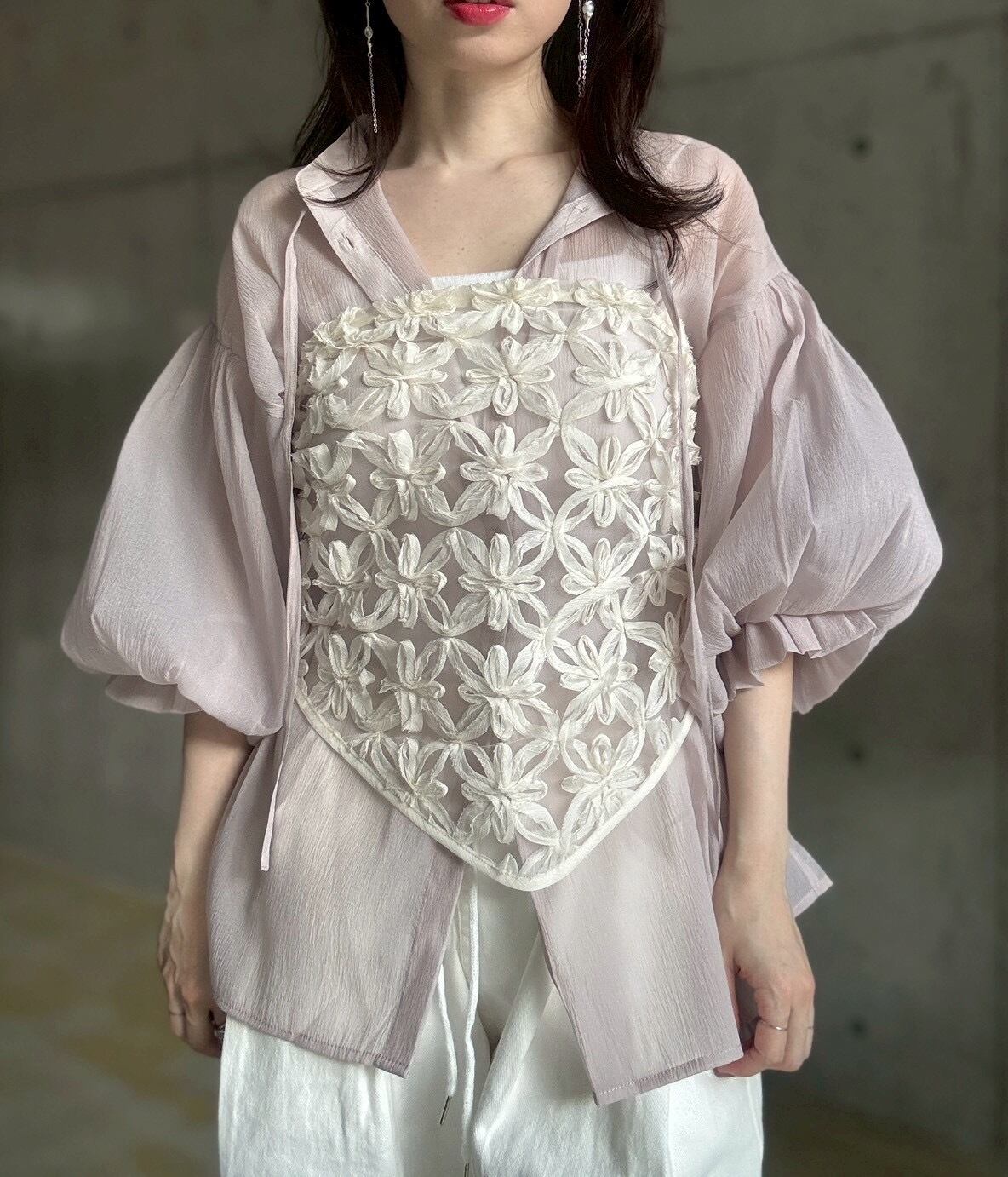 【4/25 21:00〜】パイピングレースシアー三角スカーフ【アイボリー】