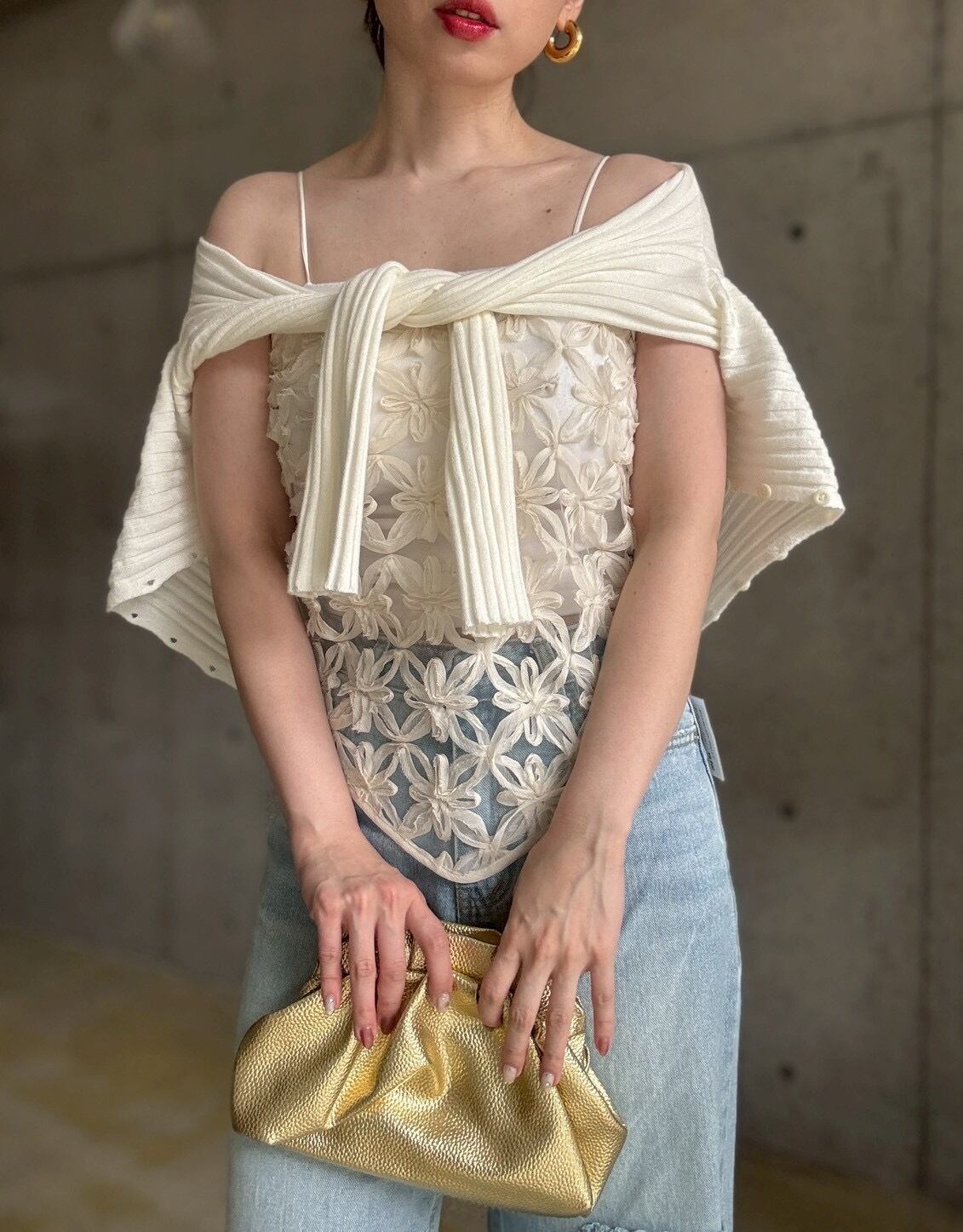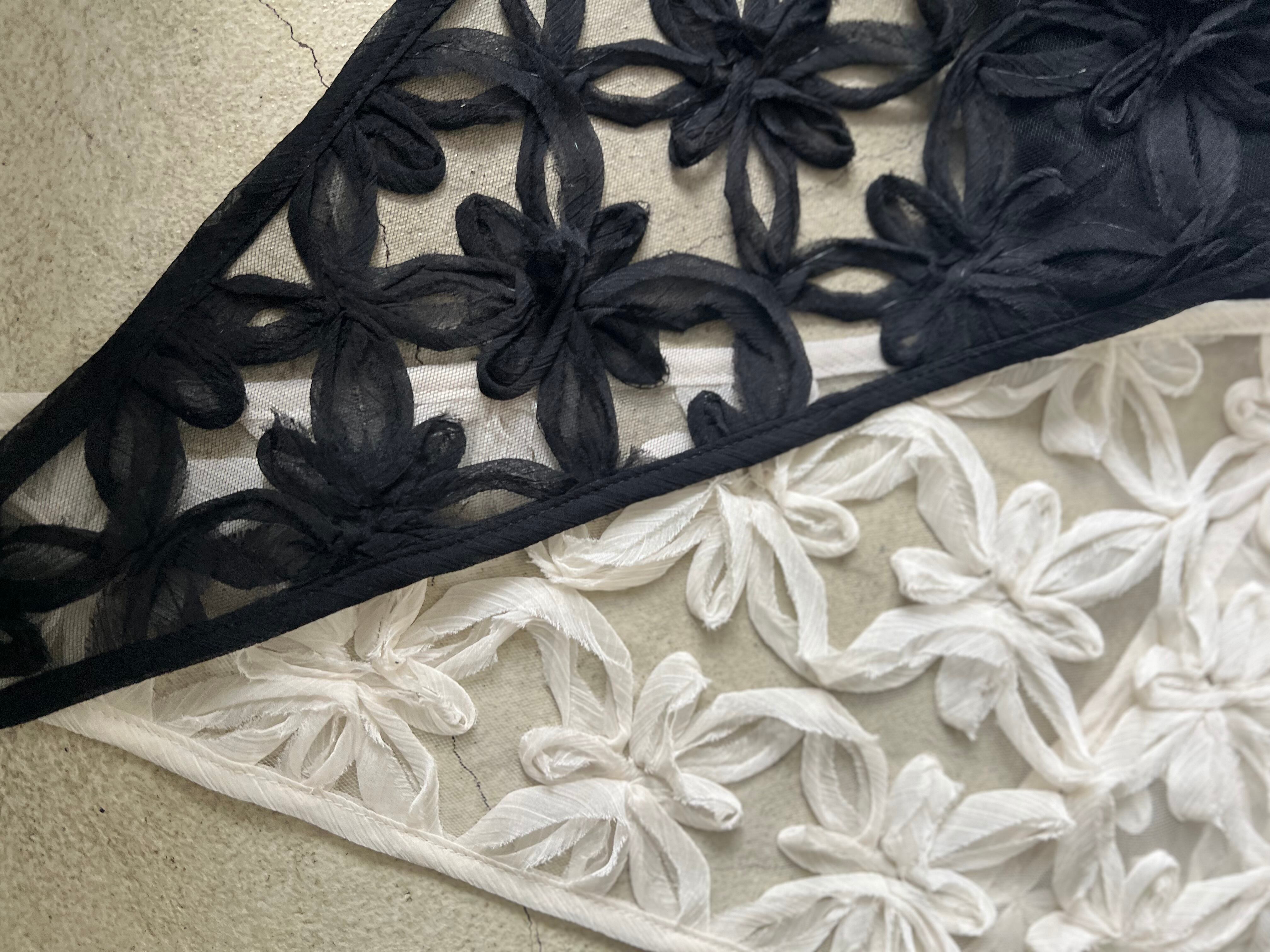 立体のフラワーパイピングレース高級感たっぷり♪サラッと巻くだけで目を惹くデザインスカーフ✨