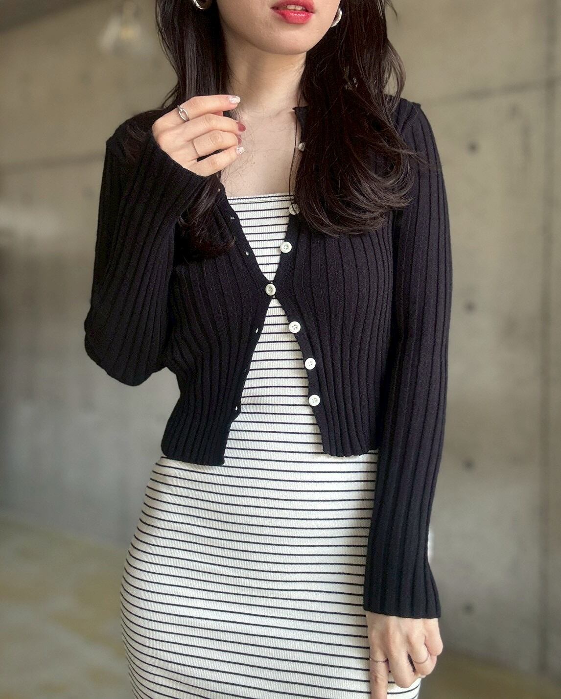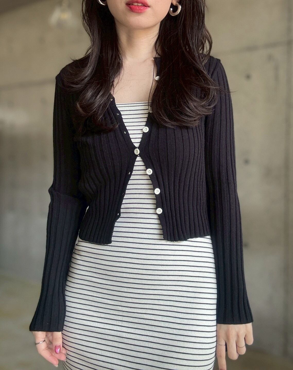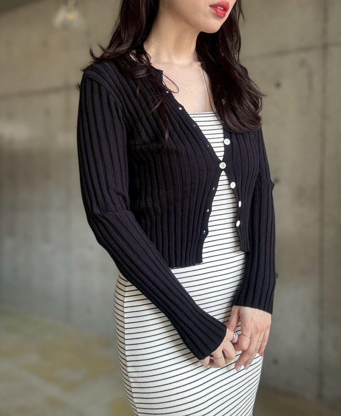 【4/25 21:00〜】Vネックスリムリブニットカーディガン【ブラック】