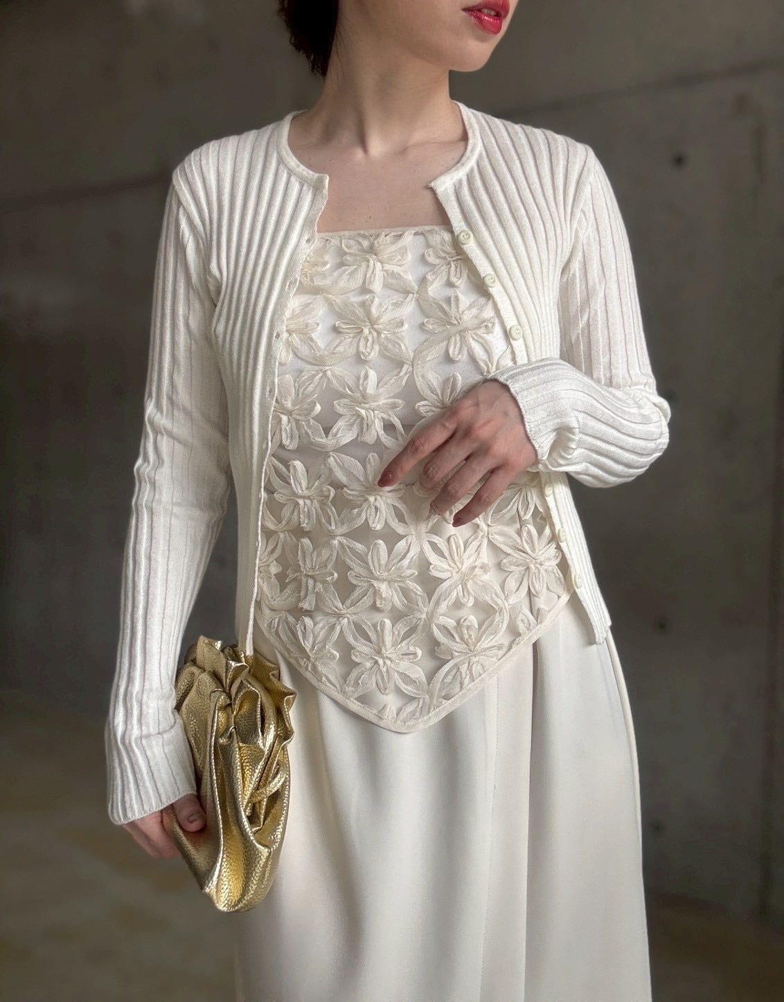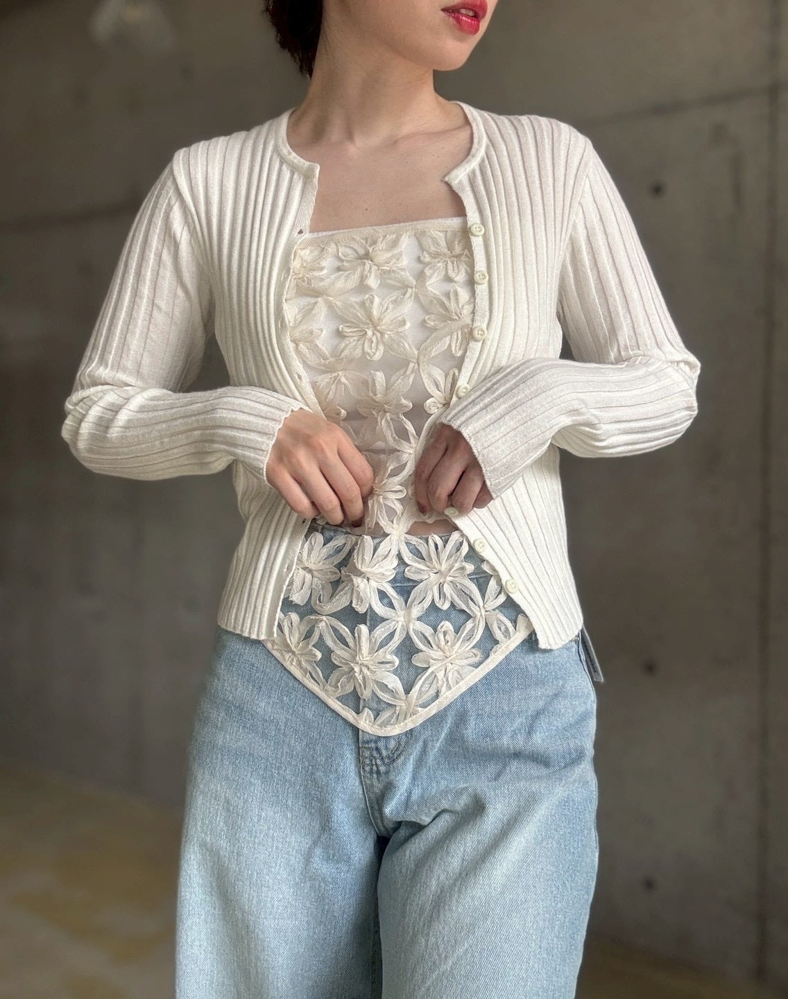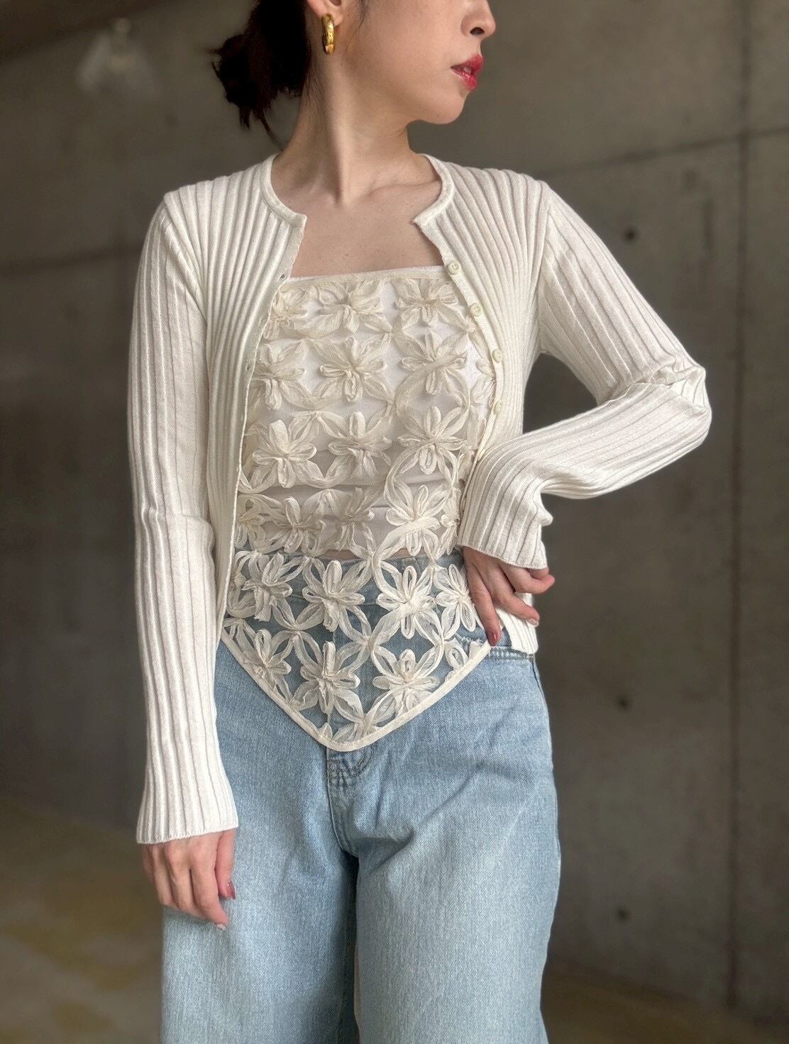 【4/25 21:00〜】Vネックスリムリブニットカーディガン【アイボリー】