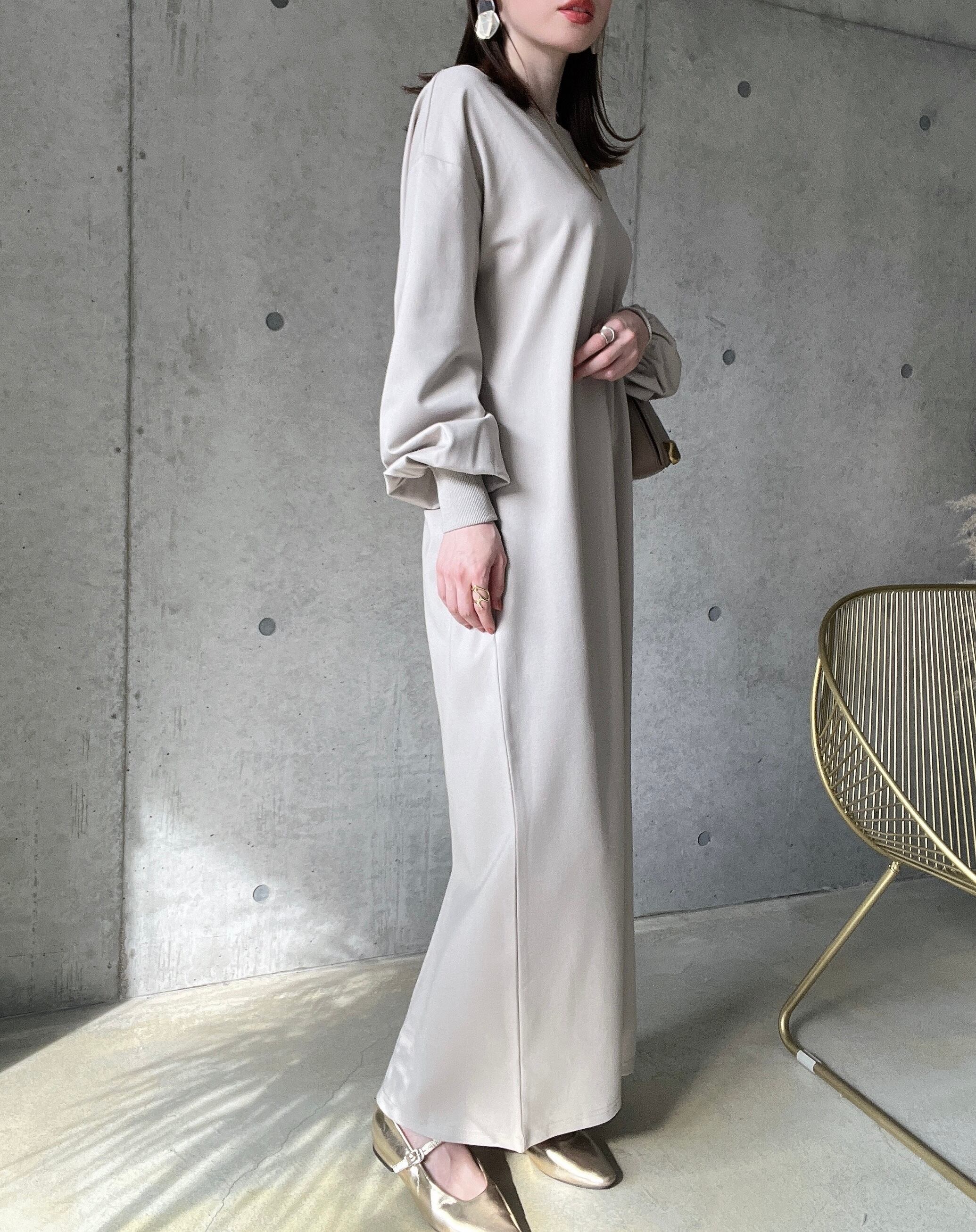 上品な表面感のもっちりしたポンチ素材が高見えなカットソーワンピース。