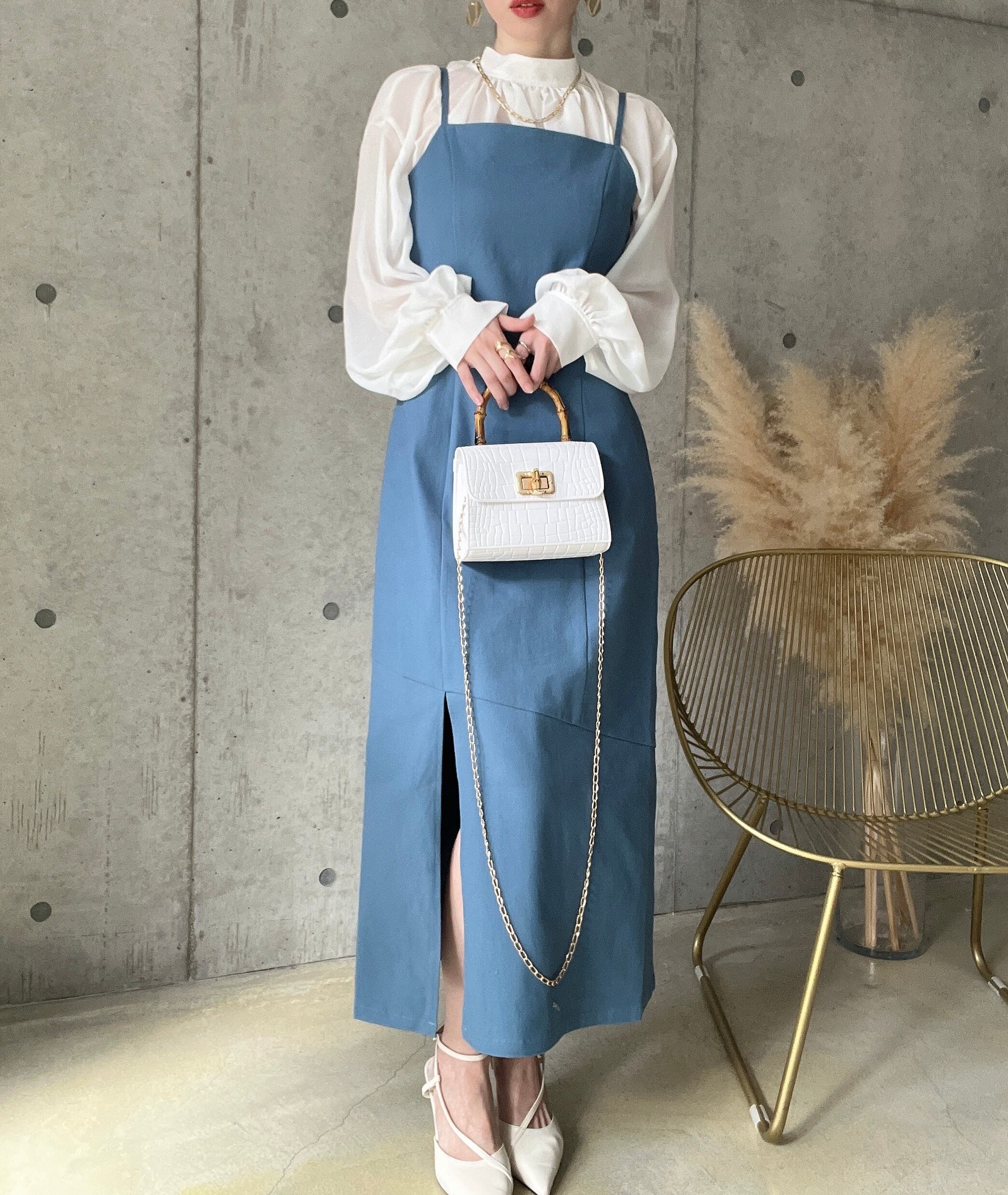 【即納】アシンメトリーキャミソールワンピース【ブルー】