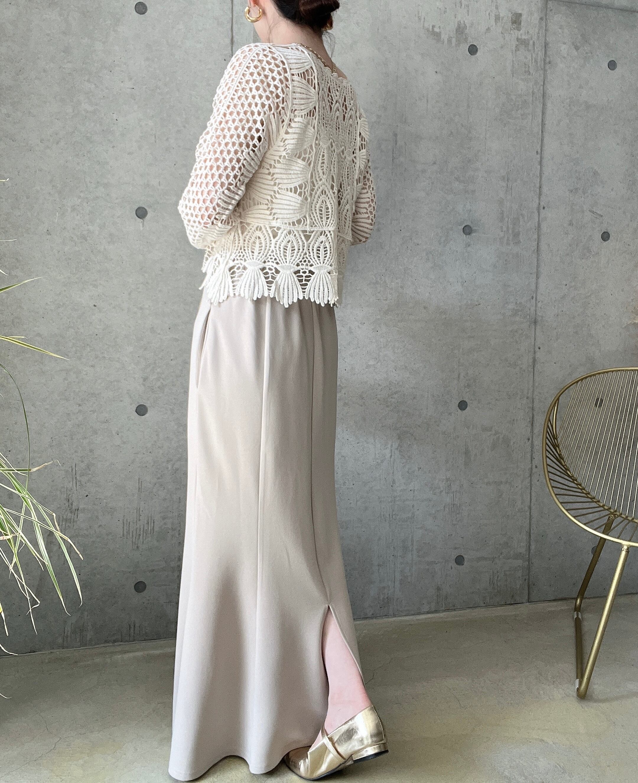 しなやかな落ち感と伸縮性があり、楽ちんなのに女性らしく美しいシルエットを演出してくれる1着です。