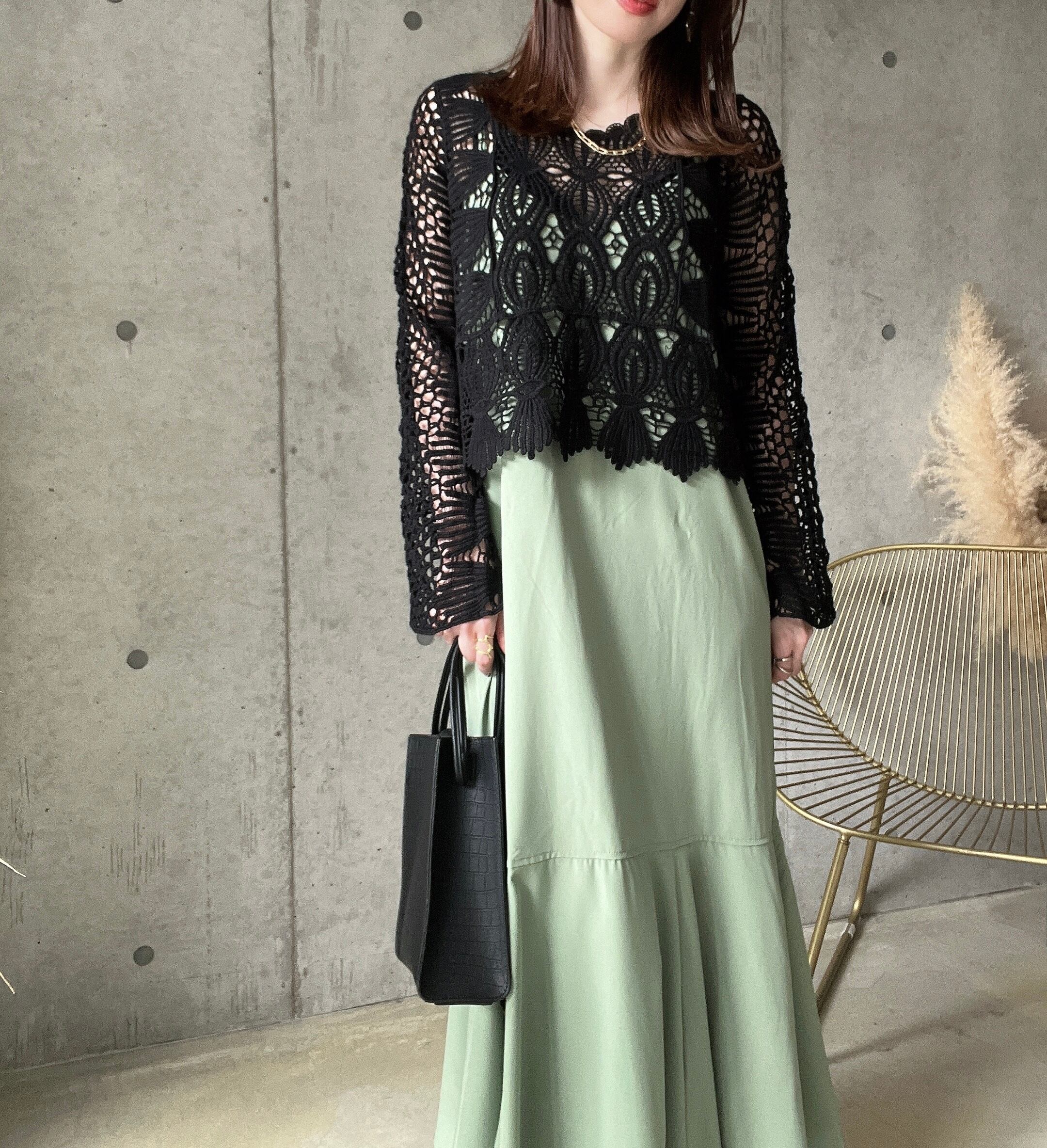 一見繊細なかぎ針デザインですが、しっかりとした綿素材を使用することで気兼ねなく着用していただける1着に。