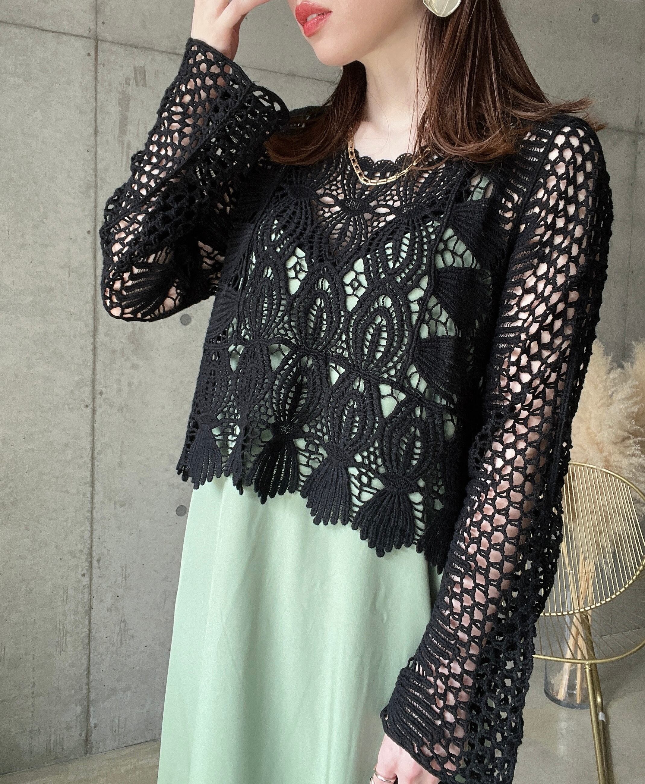 かぎ針デザインtops【ブラック】