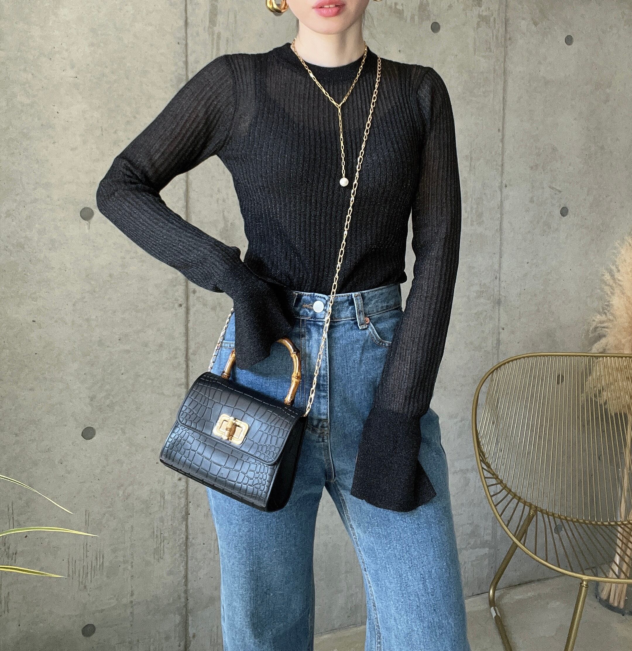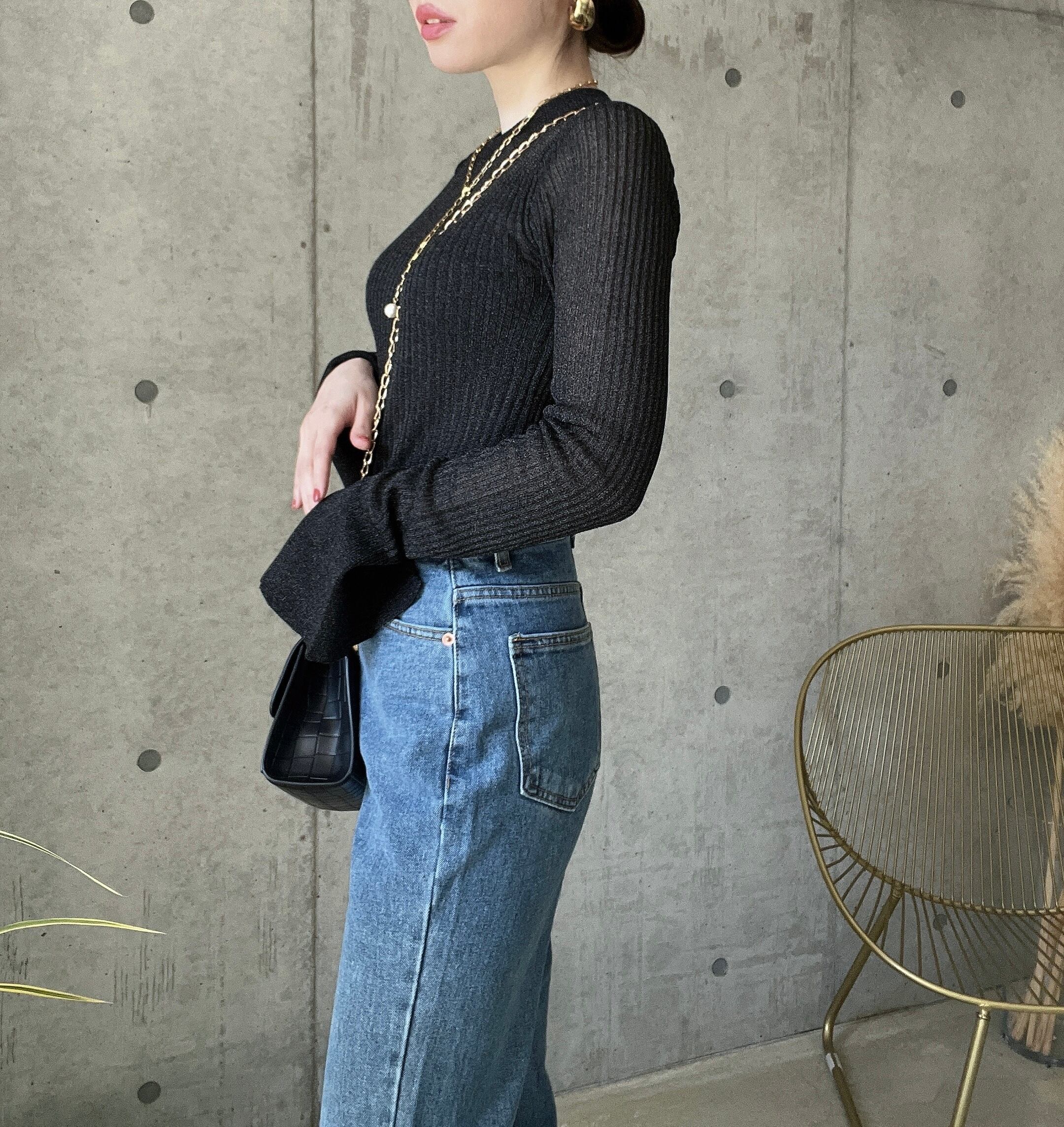 【即納】フレアスリーブラメサマーニット【ブラック】