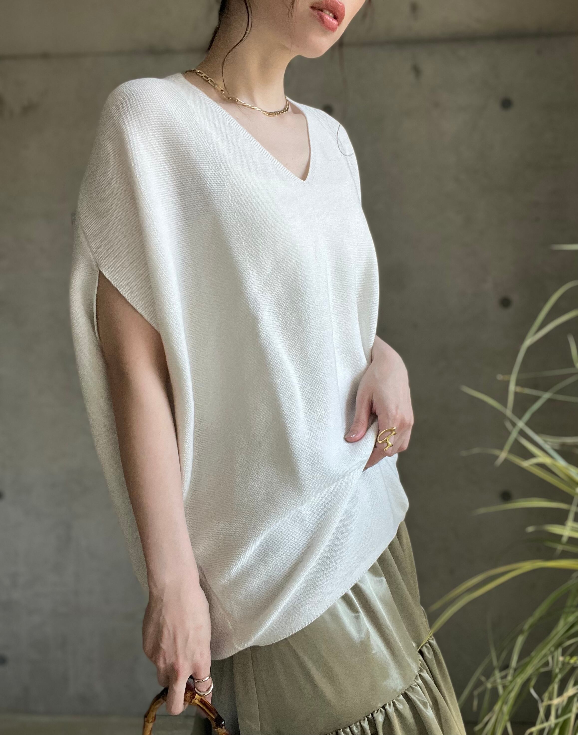 ゆったりとしたシルエットのVネックニットプルオーバー✨