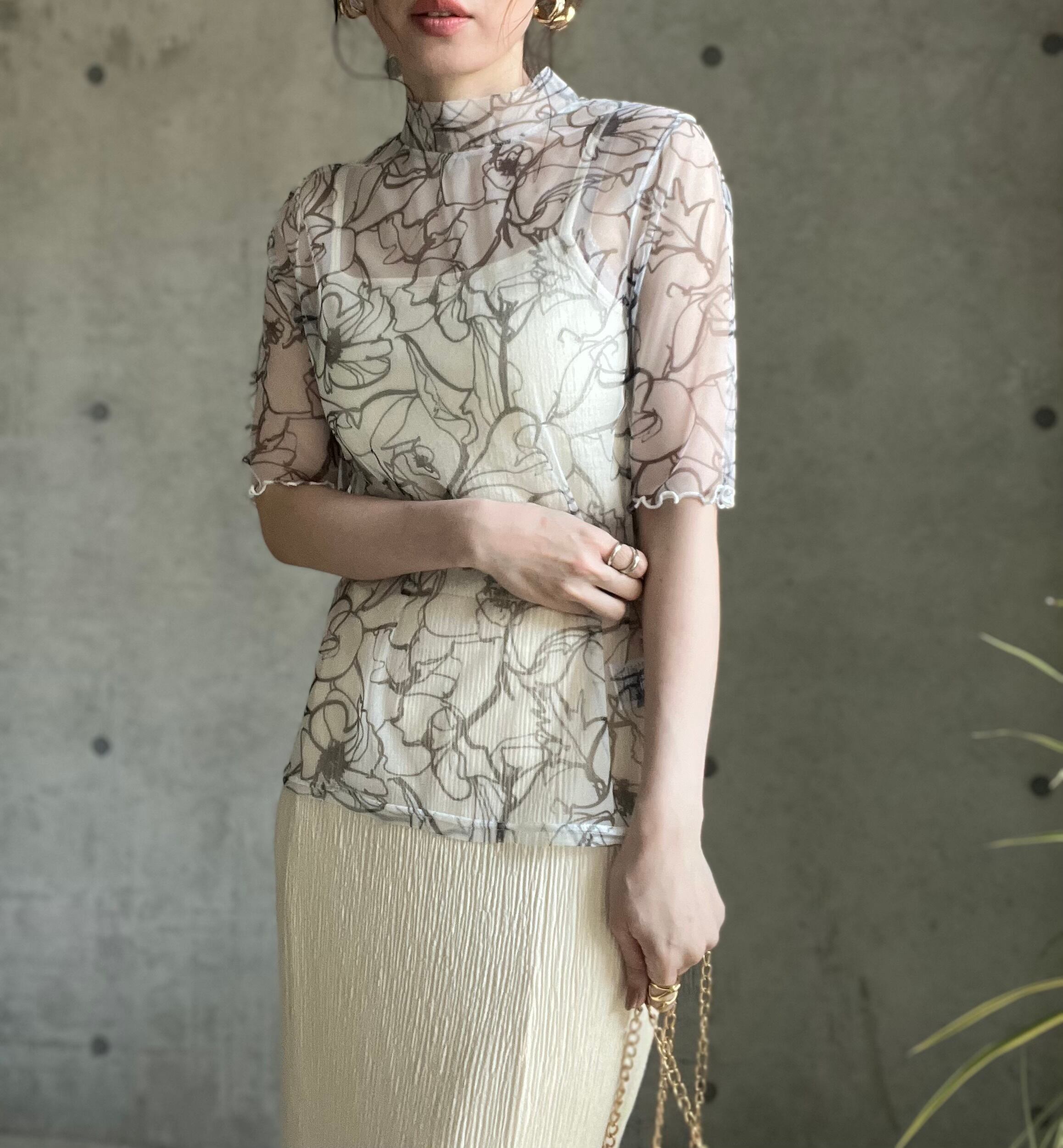 ラインアート風のフラワー柄がポイントのシアートップス✨