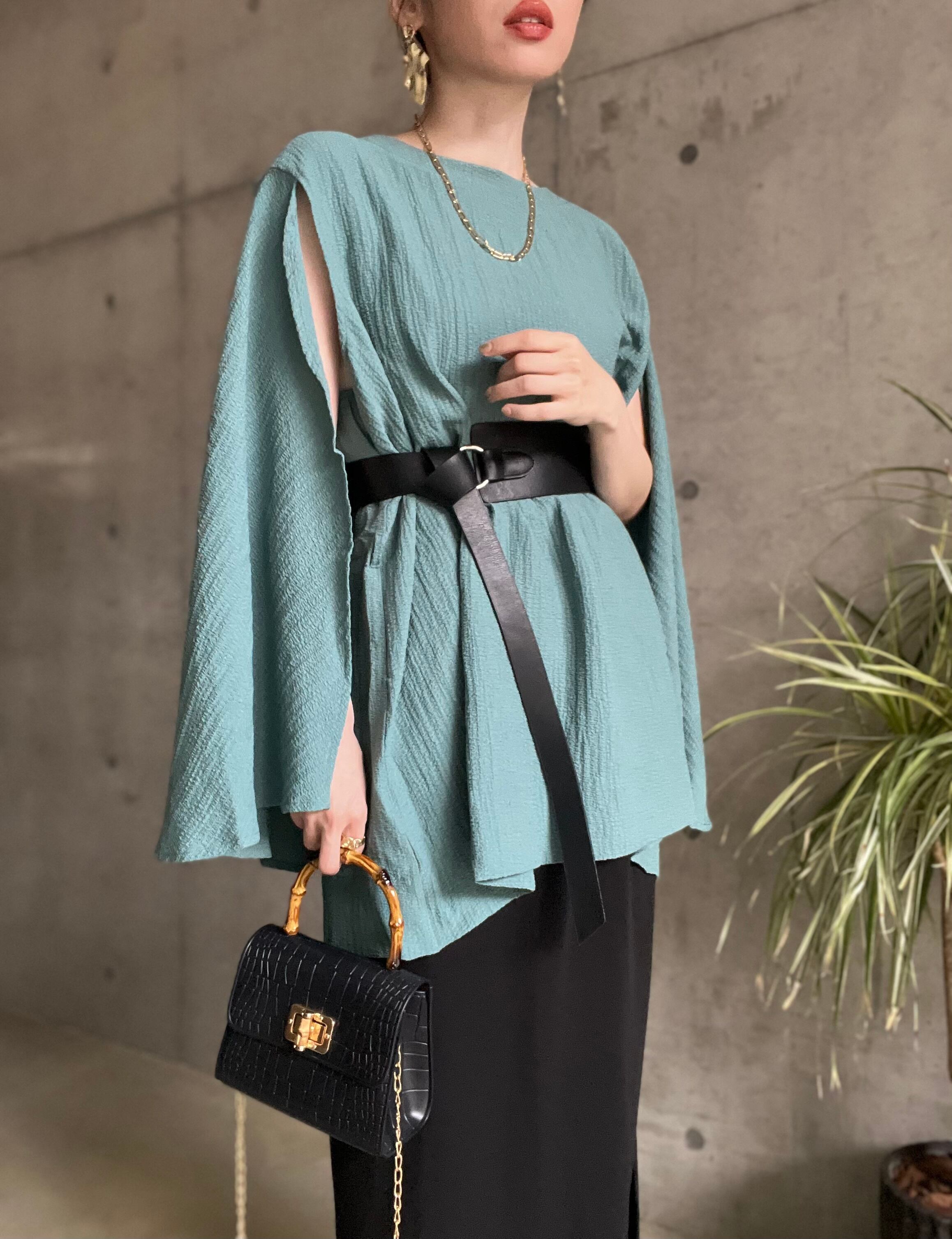 【即納】ケープ風スリットスリーブブラウス【ブルー】